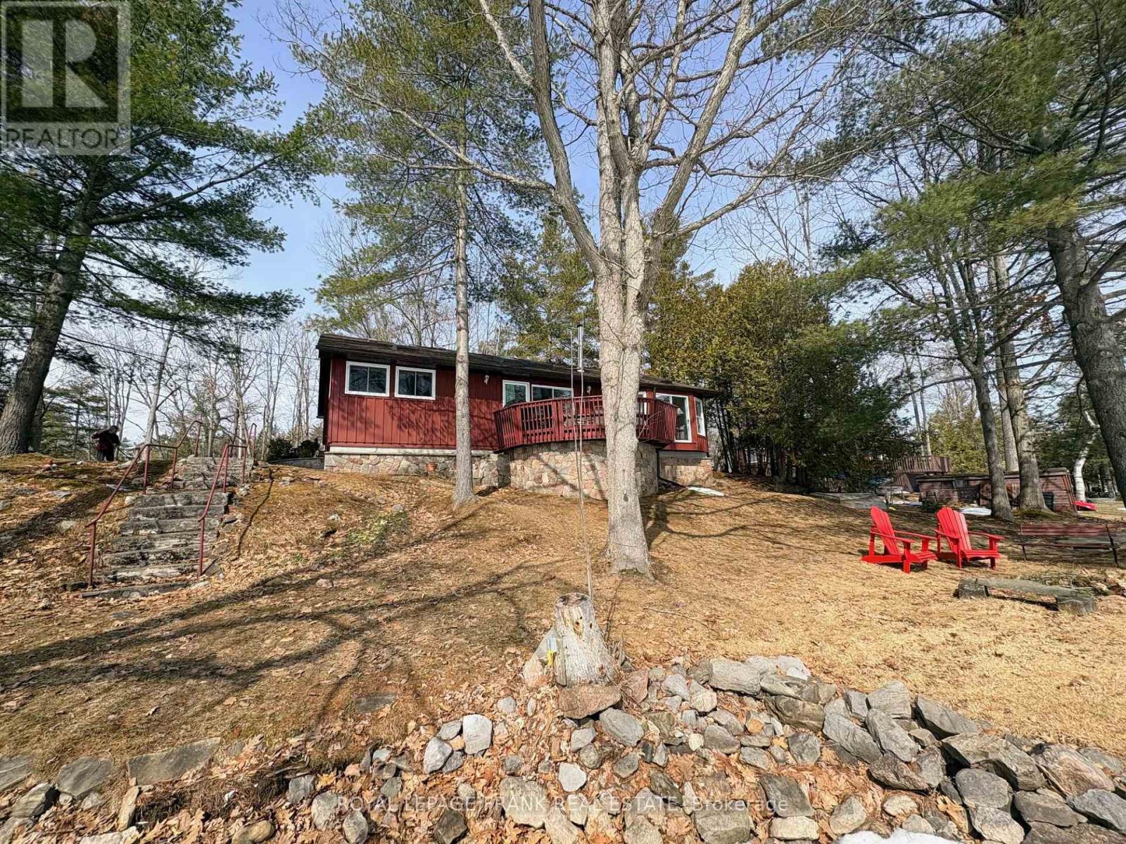 Stoney Lake. Year-round bungalow style lake house. Gorgeous open lake and island view with sunrise exposure. Good swimming frontage - level, gently sloping property with mature pine trees. This property also has frontage on a quiet back bay which is perfect for children or adults to explore. The home features 3 bedrooms, an open concept design with walkout to large lakeside deck, wood burning fireplace, 2 bathrooms, laundry - mud room, forced air heat and central air conditioning. Located on a privately maintained, year-round road - with both year-round and seasonal neighbours. Upper- Stoney location with a "Crown Land" island in sight and a short paddle away. Well maintained home. Enjoy all four seasons on beautiful Stoney Lake. (id:61423)