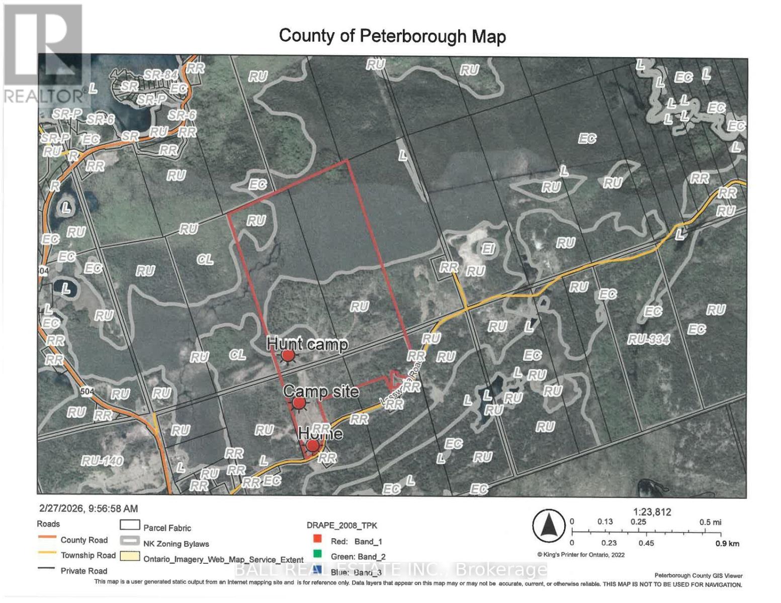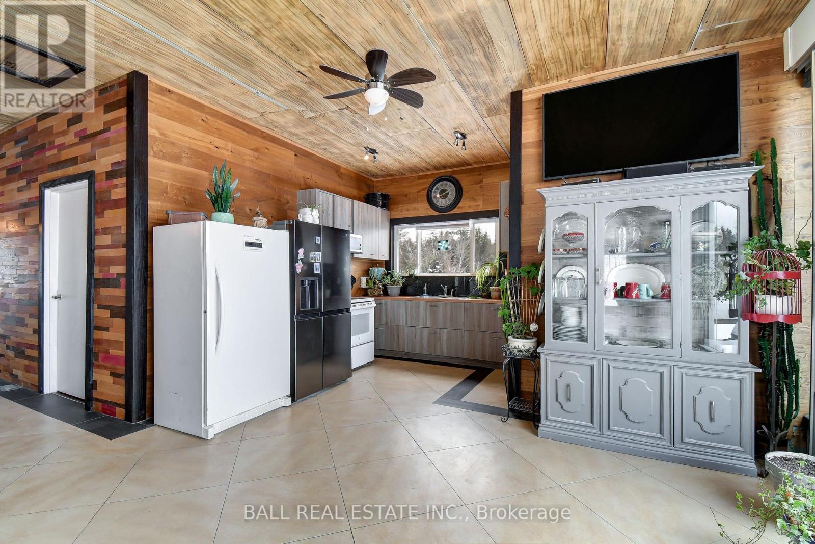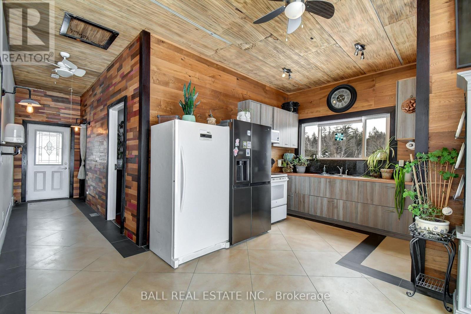 ROOM TO ROAM! With 278 acres of mixed forest and an additional 100 acres of adjacent crown land, you won't need more space. The land has several trails and some nice open meadow as well. The two bedroom raised bungalow is ready to move into, featuring main floor living and a full undeveloped walk-out basement. The 9'6" ceilings and the huge viewing window make it feel like you are living outdoors, with amazing views over your acreage. The open concept living area includes a four piece bathroom and a laundry/pantry room right off the kitchen. The exterior is completely maintenance free, featuring a metal roof and galvanized siding that will last forever. The owners have created a driving range to practice your swing too. No problem having your hunting buddies, there is a well equipped hunt camp in the bush that would also make a great airbnb for nature lovers. Other features include a new septic system in 2025, new propane furnace and a/c, 7' commercial eavestroughs, a nice she shed, a storage shed, a camper trailer and an RV (no motor). The home is also roughed in for in floor heating, it just needs the boiler. Close to the town of Apsley and minutes to "The Gut" Conservation area and several lakes with public access points. Whether you are relocating or investing in a lifestyle removed from the hustle and bustle, this place is a must see. (id:61423)