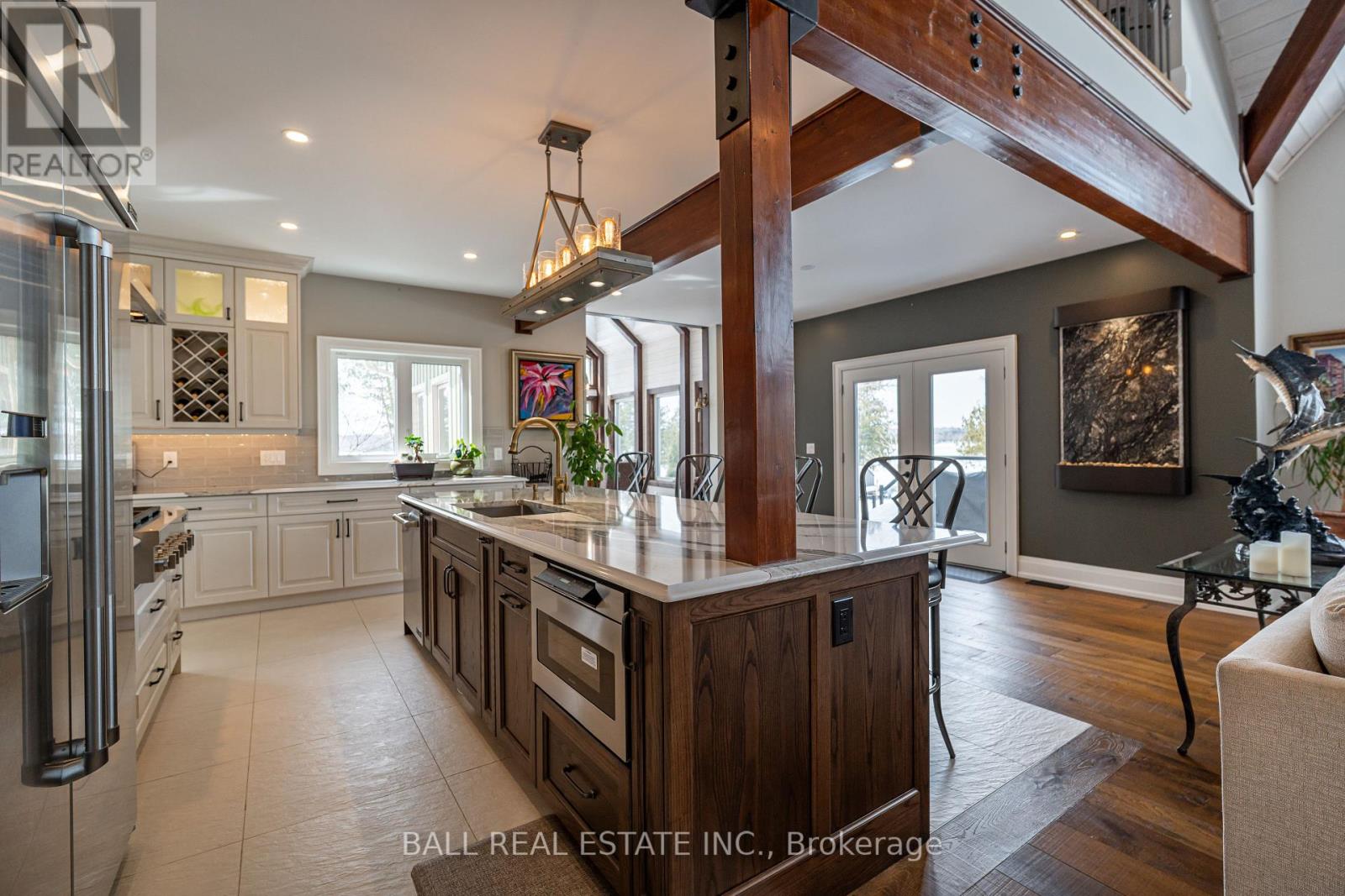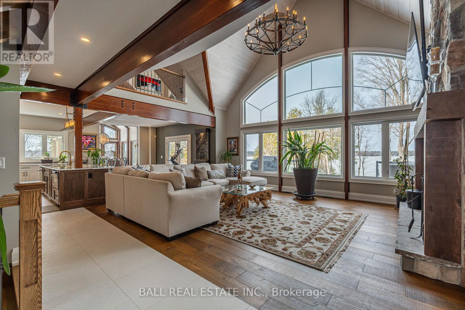 Welcome to this pristine waterfront property majestically located on beautiful Buckhorn Lake. This luxurious designed custom-built home is sure to impress all in every way! Be prepared to be in awe as soon as you enter this one-of-a-kind dream home! The wow factor: On the main floor with celestial windows leads to an incredible great room with soaring cathedral ceiling, wood burning stone fireplace & huge north/west facing windows with views of the sweeping lawn, beautiful gardens, mature trees & uninterrupted lake views. Breath taken contemporary Chefs kitchen with large centre island and butler pantry with walk out to a oversized triple car garage, large dining area with cathedral ceiling and 6 shy lights. Principal suite has lake views, stone fire place, large ensuite & walk in closet. Upper level has 2nd bedroom with 4pc en-suite & walk-in closet,3rd bedroom with walk in closet, games room, bar room and 3pc bathroom. Lower level has a large family room with wood burning fireplace, 2 more bedrooms, amazing stone wine cellar, 3pc bathroom, large laundry room and walk up to garage. This is a true dream/lifestyle property complete with your own armour stone waterfront, firepit, bar & all of the peace & serenity Lakefront living has to offer. Buckhorn Lake is part of the 5 Lakes without locks on the Trent Severn Waterway giving you endless swimming, boating, fishing and summer enjoyment. Please enjoy the virtual tour for a greater perspective. (id:61423)