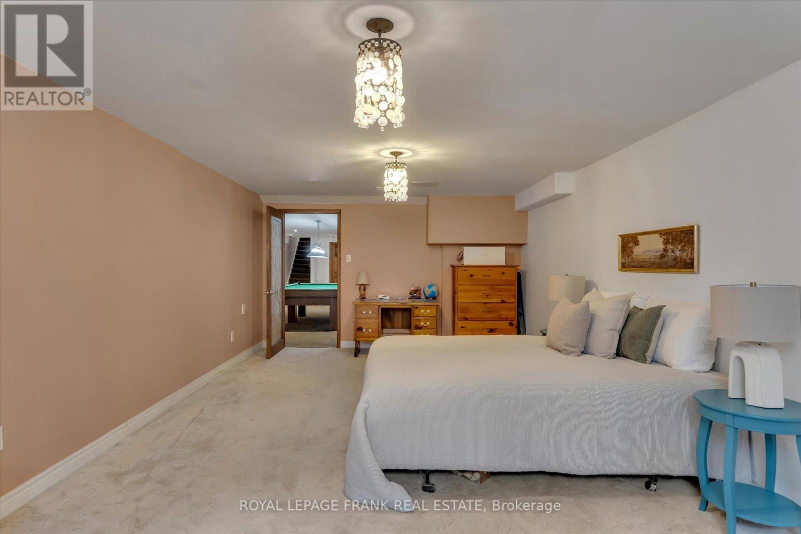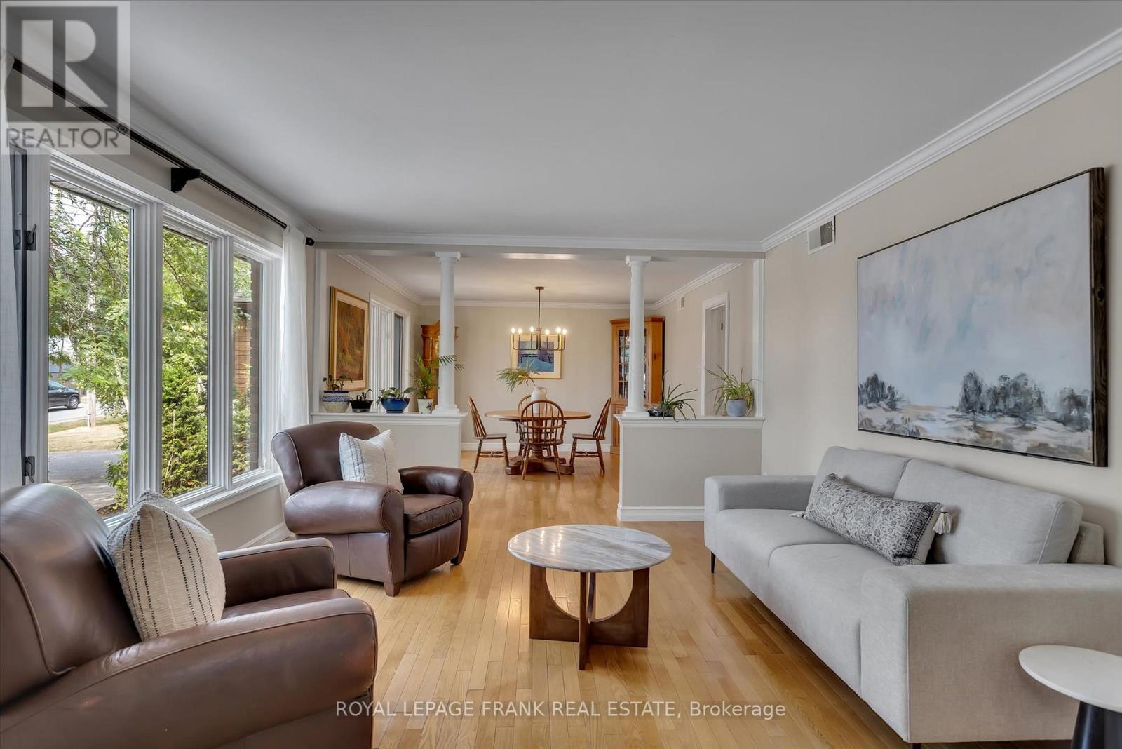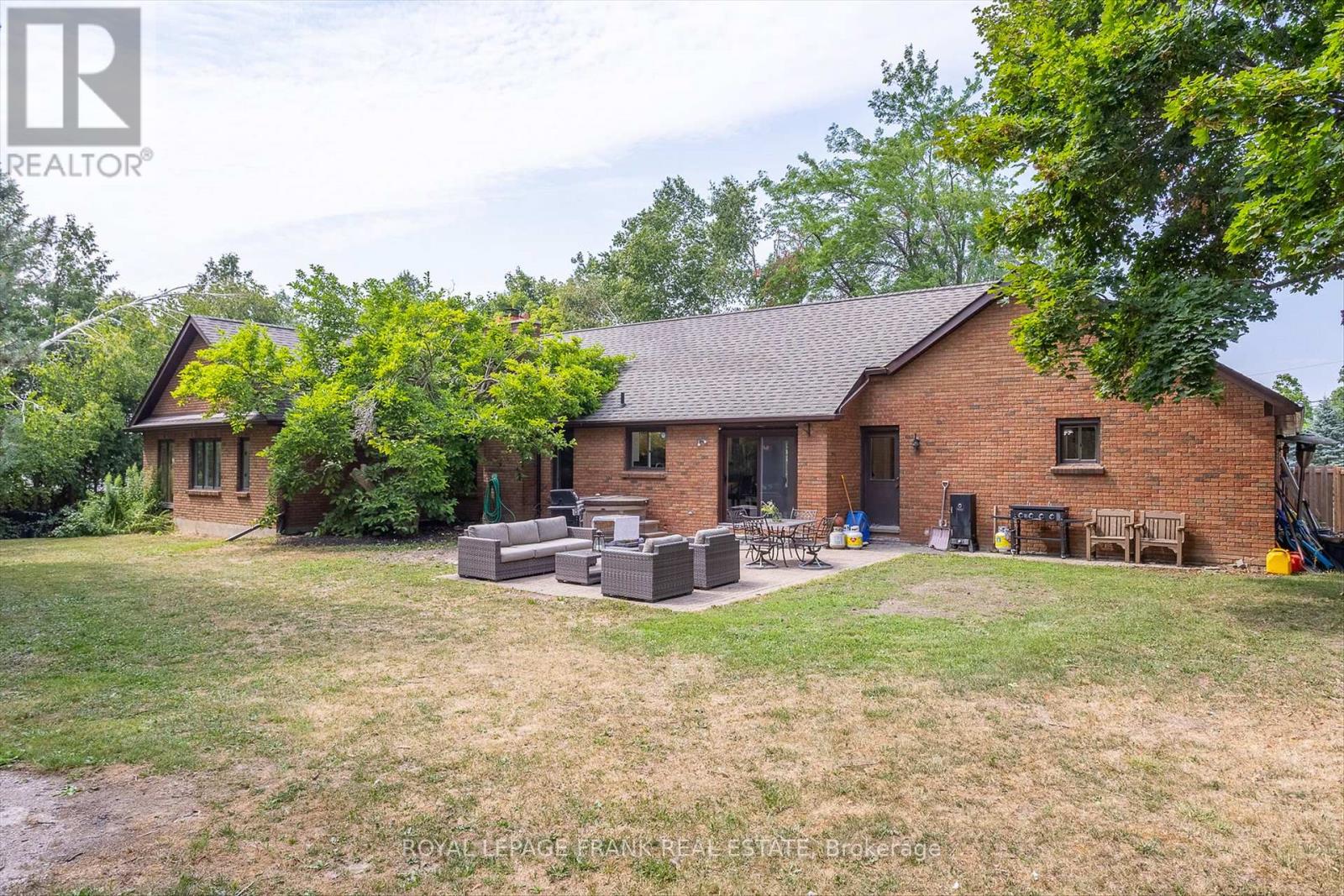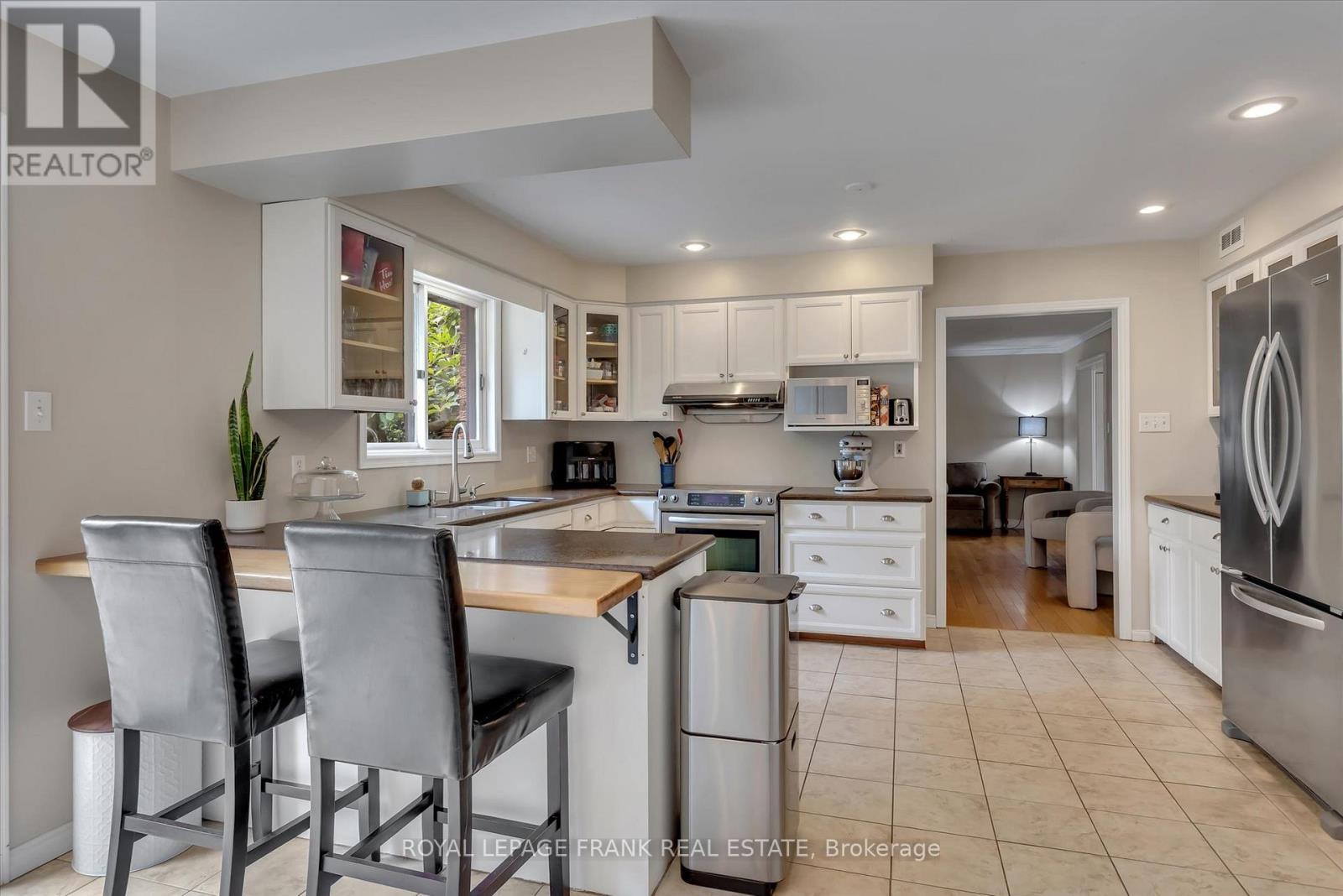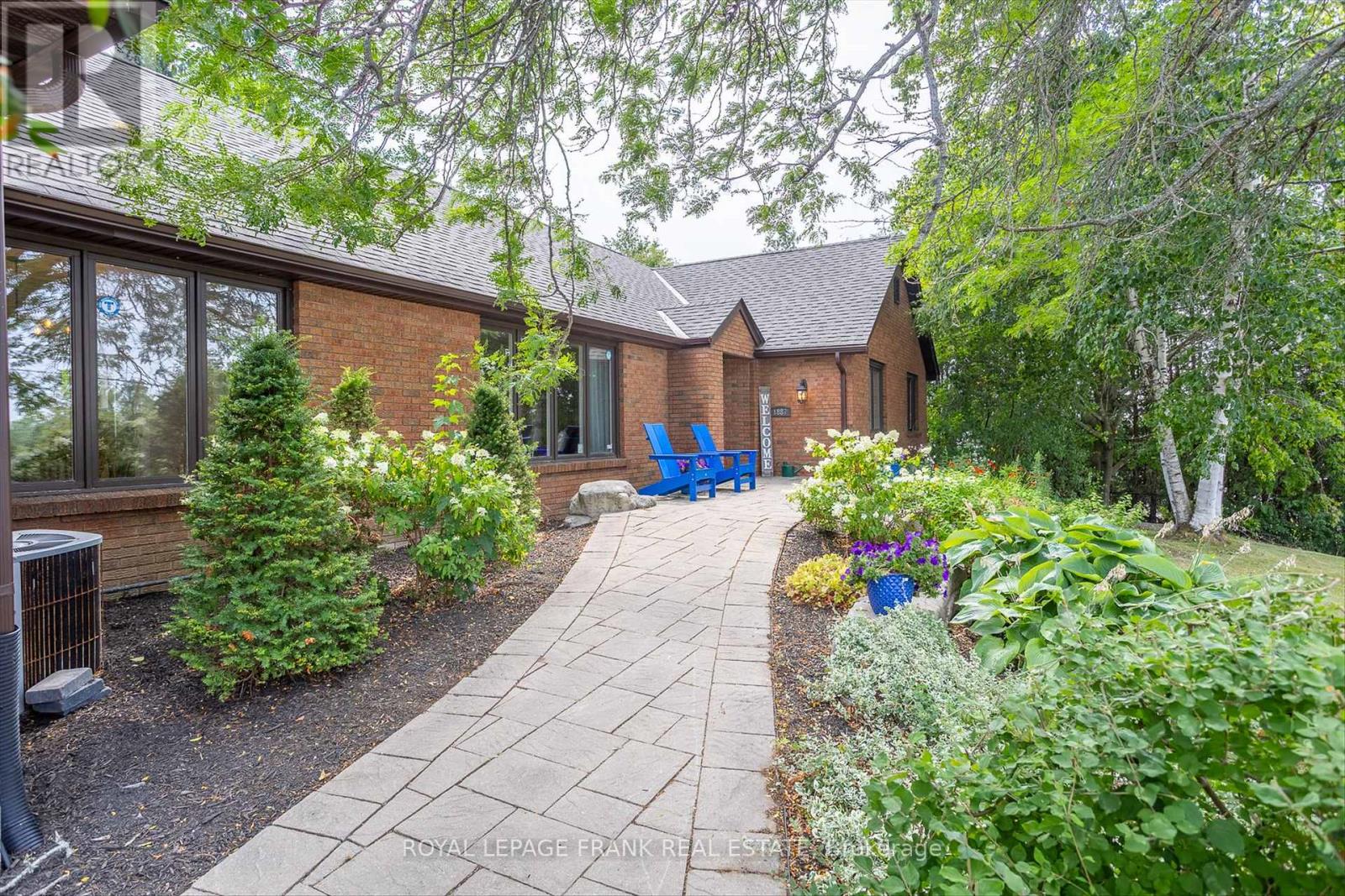 Welcome to 1887 Campbell Avenue, a sprawling 4+1 bed, 3.5 bath, brick bungalow set on a beautifully landscaped half-acre lot in a quiet enclave of estate homes on Peterborough's west edge. This meticulously maintained home offers space, privacy, and a layout ideal for both everyday living and entertaining. Manicured gardens and interlocking brick walkways lead to a bright and inviting interior. A spacious living room welcomes you in, with a formal dining room just beyond. The main-floor family room features a cozy wood-burning fireplace and flows into the refreshed eat-in kitchen with a large pantry and views of the backyard. The oversized double garage connects to a practical mudroom/laundry area with a handy 2-piece powder room. The main level features four bedrooms, including and an almost 600 square feet a generous primary retreat with walk-in closet and a newly renovated ensuite with double vanity, freestanding tub, and walk-in shower. The primary suite also includes a sunny four-season room ideal for morning coffee, reading, or yoga and a private den perfect for a home office. Down the hall, a 5-piece bathroom serves the remaining bedrooms. Downstairs, the fully finished basement offers outstanding extra living space. A massive family room on one side and a games area on the other provide plenty of room to unwind. A fifth large bedroom, full 4-piece bathroom, and three separate storage rooms make this level perfect for teens, guests, or hobbies. Step outside to a private backyard oasis featuring a large interlock patio, lush lawn, mature trees, fenced with large shed with potential as a studio, gym, or creative space. With 5 bedrooms, 3.5 bathrooms, and nearly every detail thoughtfully updated, this home is the perfect balance of country-style tranquility and city convenience just minutes to all amenities. A rare and spacious gem welcome home. (id:61423)