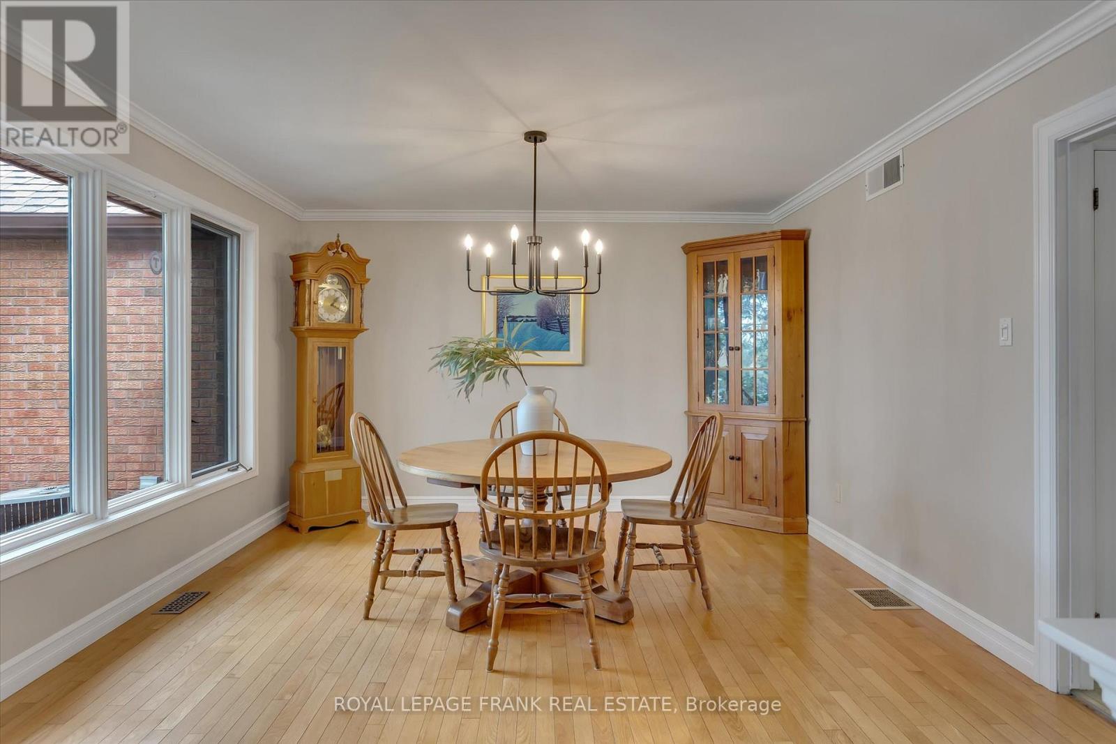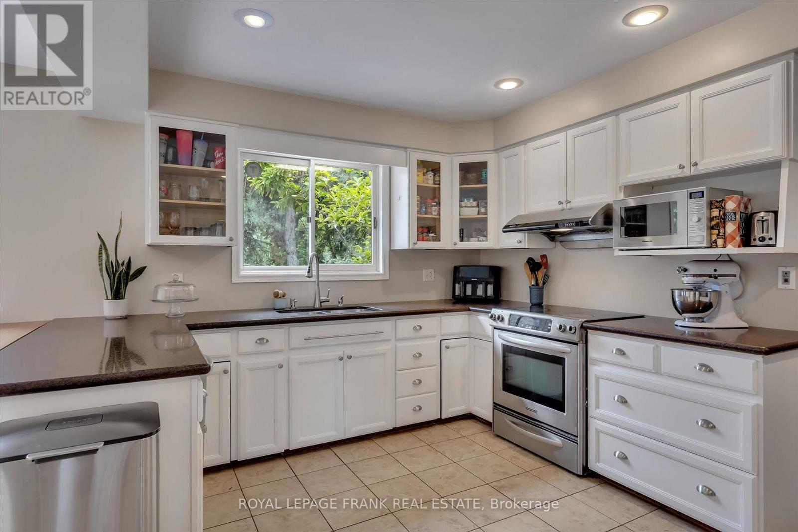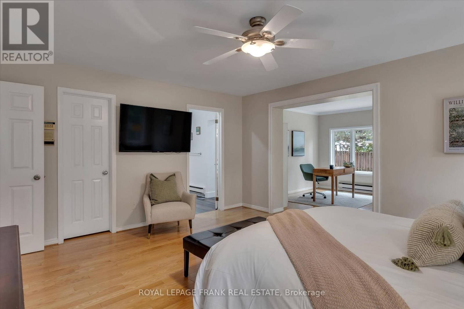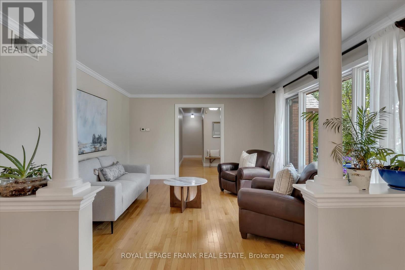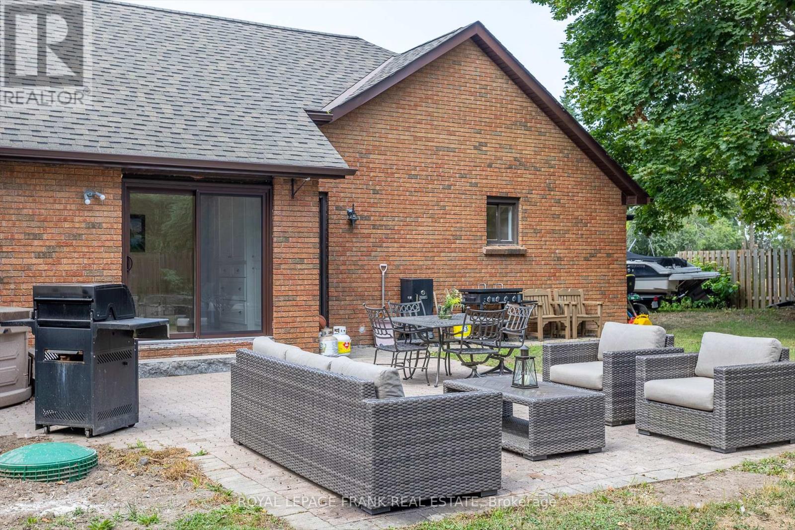 Welcome to 1887 Campbell Avenue, a sprawling 4+1 bed, 3.5 bath, brick bungalow set on a beautifully landscaped half-acre lot in a quiet enclave of estate homes on Peterborough's west edge. This meticulously maintained home offers space, privacy, and a layout ideal for both everyday living and entertaining. Manicured gardens and interlocking brick walkways lead to a bright and inviting interior. A spacious living room welcomes you in, with a formal dining room just beyond. The main-floor family room features a cozy wood-burning fireplace and flows into the refreshed eat-in kitchen with a large pantry and views of the backyard. The oversized double garage connects to a practical mudroom/laundry area with a handy 2-piece powder room. The main level features four bedrooms, including and an almost 600 square feet a generous primary retreat with walk-in closet and a newly renovated ensuite with double vanity, freestanding tub, and walk-in shower. The primary suite also includes a sunny four-season room ideal for morning coffee, reading, or yoga and a private den perfect for a home office. Down the hall, a 5-piece bathroom serves the remaining bedrooms. Downstairs, the fully finished basement offers outstanding extra living space. A massive family room on one side and a games area on the other provide plenty of room to unwind. A fifth large bedroom, full 4-piece bathroom, and three separate storage rooms make this level perfect for teens, guests, or hobbies. Step outside to a private backyard oasis featuring a large interlock patio, lush lawn, mature trees, fenced with large shed with potential as a studio, gym, or creative space. With 5 bedrooms, 3.5 bathrooms, and nearly every detail thoughtfully updated, this home is the perfect balance of country-style tranquility and city convenience just minutes to all amenities. A rare and spacious gem welcome home. (id:61423)