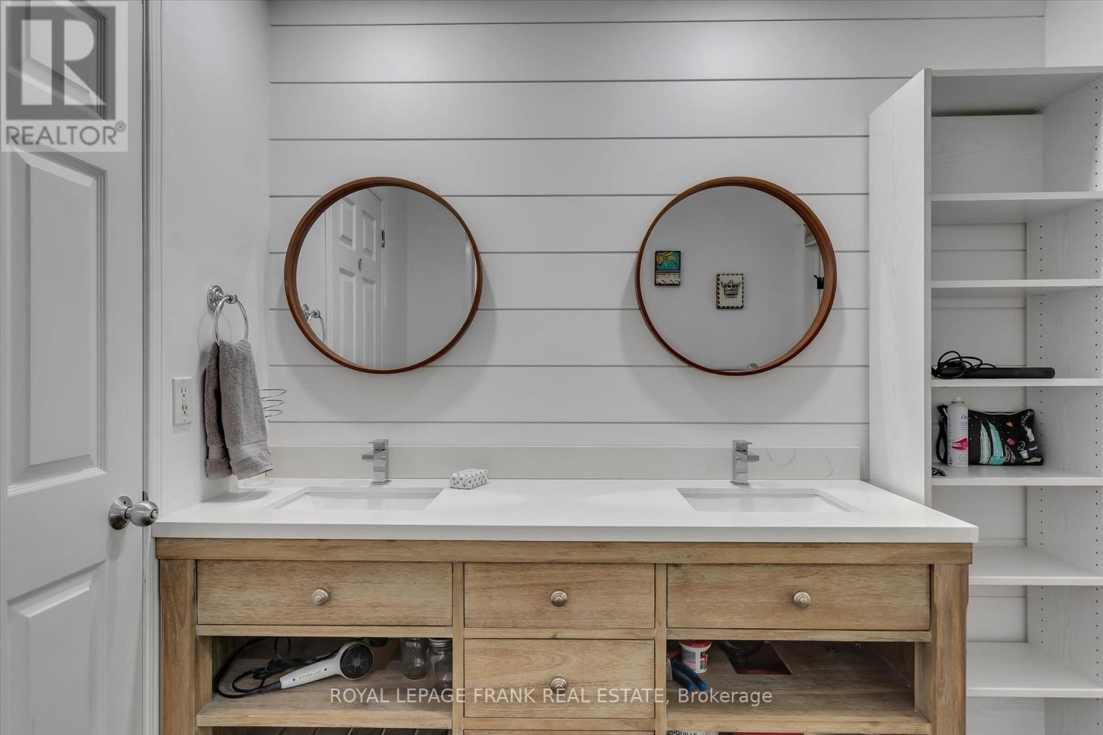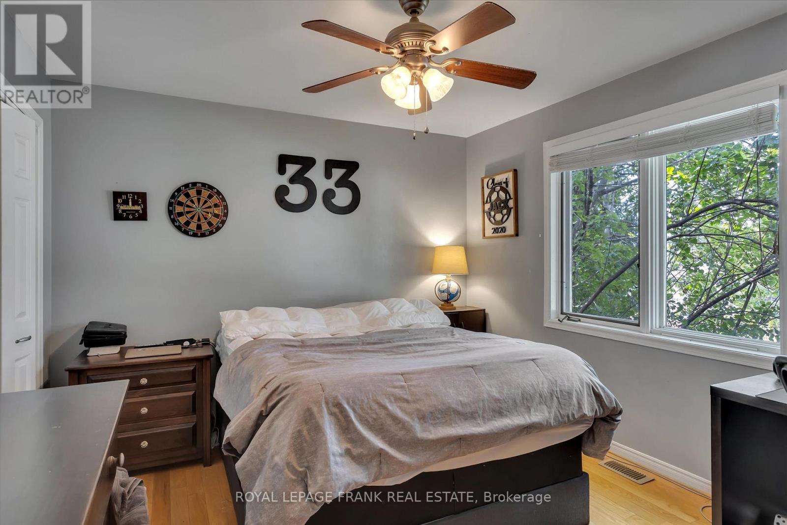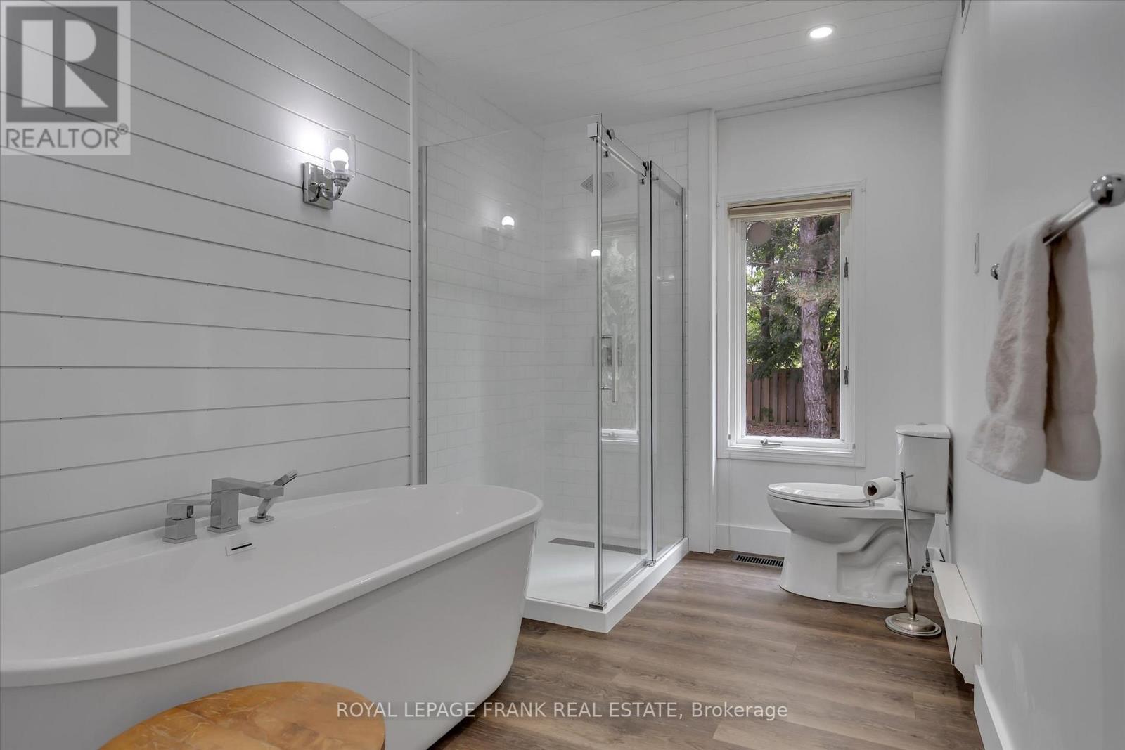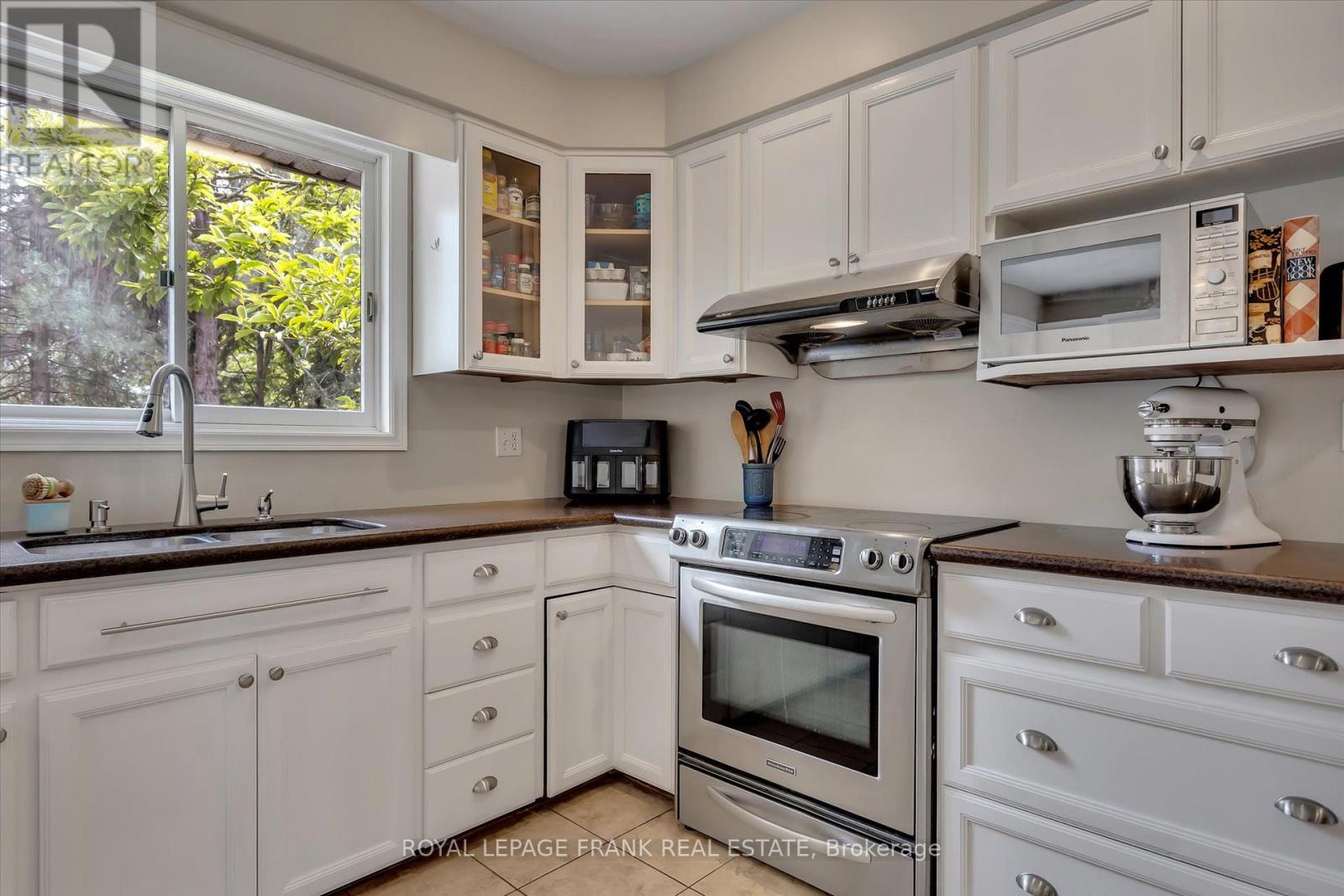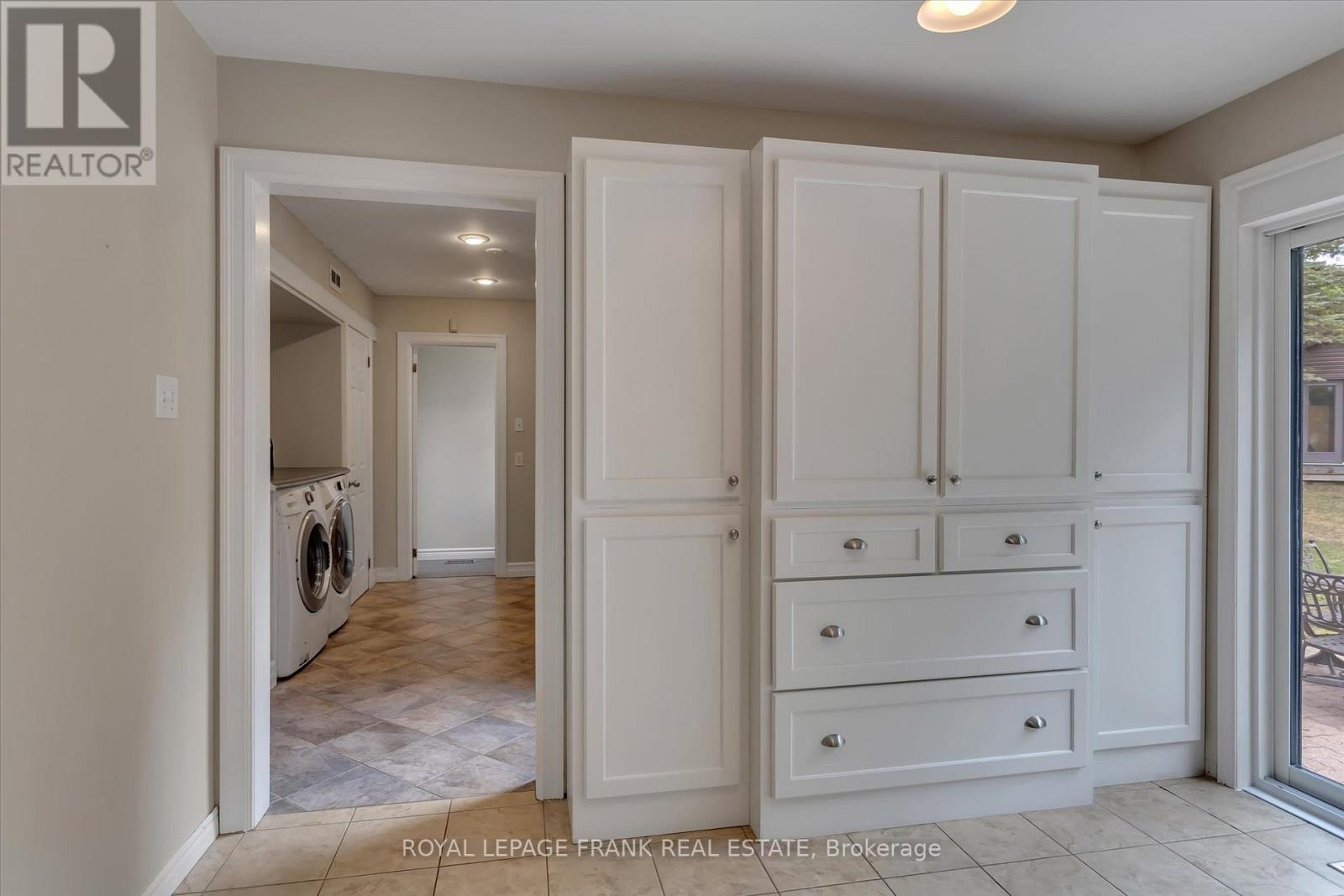 Welcome to 1887 Campbell Avenue, a sprawling 4+1 bed, 3.5 bath, brick bungalow set on a beautifully landscaped half-acre lot in a quiet enclave of estate homes on Peterborough's west edge. This meticulously maintained home offers space, privacy, and a layout ideal for both everyday living and entertaining. Manicured gardens and interlocking brick walkways lead to a bright and inviting interior. A spacious living room welcomes you in, with a formal dining room just beyond. The main-floor family room features a cozy wood-burning fireplace and flows into the refreshed eat-in kitchen with a large pantry and views of the backyard. The oversized double garage connects to a practical mudroom/laundry area with a handy 2-piece powder room. The main level features four bedrooms, including and an almost 600 square feet a generous primary retreat with walk-in closet and a newly renovated ensuite with double vanity, freestanding tub, and walk-in shower. The primary suite also includes a sunny four-season room ideal for morning coffee, reading, or yoga and a private den perfect for a home office. Down the hall, a 5-piece bathroom serves the remaining bedrooms. Downstairs, the fully finished basement offers outstanding extra living space. A massive family room on one side and a games area on the other provide plenty of room to unwind. A fifth large bedroom, full 4-piece bathroom, and three separate storage rooms make this level perfect for teens, guests, or hobbies. Step outside to a private backyard oasis featuring a large interlock patio, lush lawn, mature trees, fenced with large shed with potential as a studio, gym, or creative space. With 5 bedrooms, 3.5 bathrooms, and nearly every detail thoughtfully updated, this home is the perfect balance of country-style tranquility and city convenience just minutes to all amenities. A rare and spacious gem welcome home. (id:61423)
