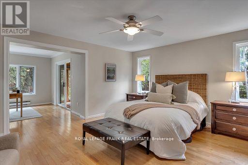 Welcome to 1887 Campbell Avenue, a beautifully maintained brick bungalow set on a landscaped half-acre lot in a quiet enclave of estate homes on Peterborough's west edge. Offering 4+1 bedrooms and 3.5 bathrooms, this spacious home is thoughtfully designed for both everyday living and effortless entertaining. Manicured gardens and interlocking walkways lead to a bright interior featuring a welcoming living room and formal dining space. The main-floor family room, complete with a cozy wood-burning fireplace, flows into a refreshed eat-in kitchen with a large pantry and backyard views. The oversized double garage connects to a functional mudroom and laundry area with a convenient powder room. The main level includes four bedrooms, highlighted by an impressive nearly 600 sq. ft. primary retreat with walk-in closet and newly renovated ensuite featuring a double vanity, freestanding tub, and walk-in shower. The primary suite also offers a sun-filled four-season room and a private den, ideal for a home office. A 5-piece bath serves the remaining bedrooms. The fully finished basement adds exceptional living space with a large family room, games area, fifth bedroom, full bathroom, and multiple storage rooms-perfect for guests, teens, or hobbies. Outside, enjoy a private backyard oasis with interlock patio, mature trees, lush lawn, and a large shed with potential as a studio, gym, or creative space. Offering space & privacy, this exceptional home delivers estate-style tranquility with city convenience, just minutes to all amenities. (id:61423)