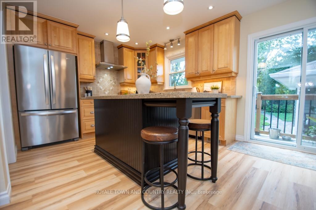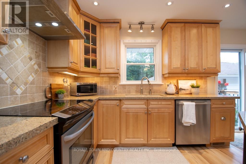 Welcome! This beautifully maintained custom brick bungalow offering timeless charm and modern comforts. 3-bedroom, 2-bath home is situated on a large, private, mature lot in one of the areas most desirable neighbourhoods, close to schools, the hospital, farmers market, mall, restaurants, and other amenities.The bright, open layout features a custom kitchen with Silestone quartz countertops, birch cabinetry, stainless steel appliances, centre island, and breakfast bar. Formal living and dining rooms include hardwood floors and a cozy gas fireplace. The main bath has been updated with a walk-in shower, jet tub, and heated floors .. the soaker tub is the focal point - what a wonderful setting to relax. The spacious primary bedroom offers a walk-in closet (there's even laundry hook up if you wanted to have a separate space from the lower level!) Walk out to a beautifully landscaped, fenced backyard with perennial gardens, mature trees, a 30' x 12' deck, and covered porch from the garage that is perfect for relaxing or entertaining with a little music (speaker set up outside as well) wine and company of course! .The separate side entrance leads to a finished lower level with in-law suite potential, featuring a rec. room with second gas fireplace, third bedroom, 3-piece bath, laundry, and ample storage space. Or perhaps working from home is in your future - already set up with comfort and dressed in style. Additional updates include windows, furnace, flooring, sliding door, deck, and gas BBQ hookup, pot lights, 1.5-car garage with workbench and storage plus paved driveway parking for up to five+ vehicles. Move-in ready and full of character. (id:61423)