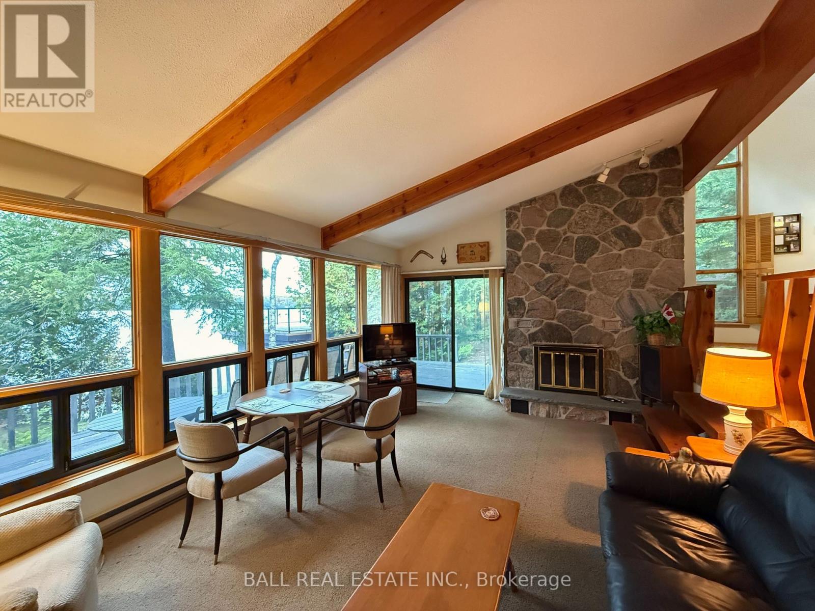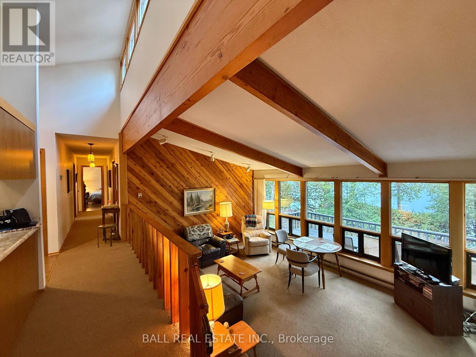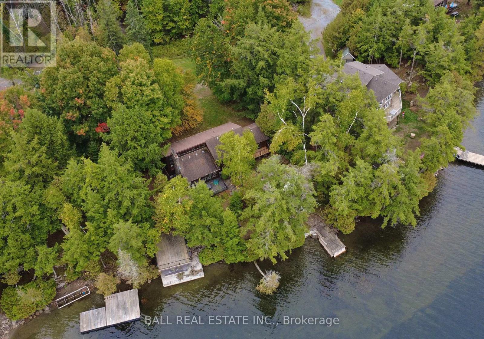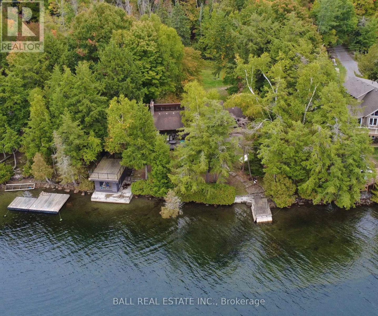 A rare offering on Maple Lane: This 4 season lakehouse on Chandos Lake features 108ft of clean, sandy waterfront and nearly an acre of land with epic sunset views off the boathouse rooftop patio. Tucked at the water's edge, this bungalow offers 1500sqft of living space, 4 bedrooms, 2 full bathrooms and a full basement. The open concept layout is filled with bright windows and walkouts to lakeside decks that are just steps to the level-entry boathouse rooftop patio, hosting outstanding sunset views, with 19'x11' of dry space below. Enjoy excellent treed privacy along the shoreline and roadside, with private wooded driveway off a year-round road, just 15 mins to the amenities of Apsley. Experience the beauty of Chandos Lake year- round from lovely 190 Maple Lane (id:61423)