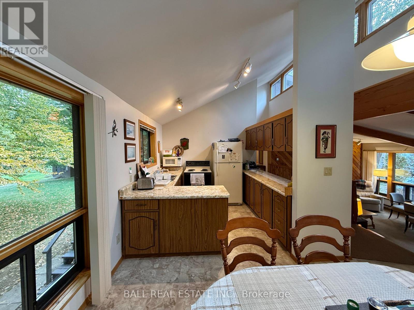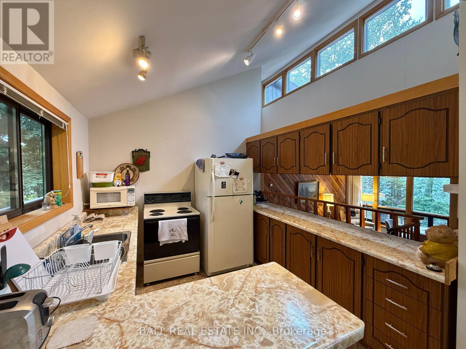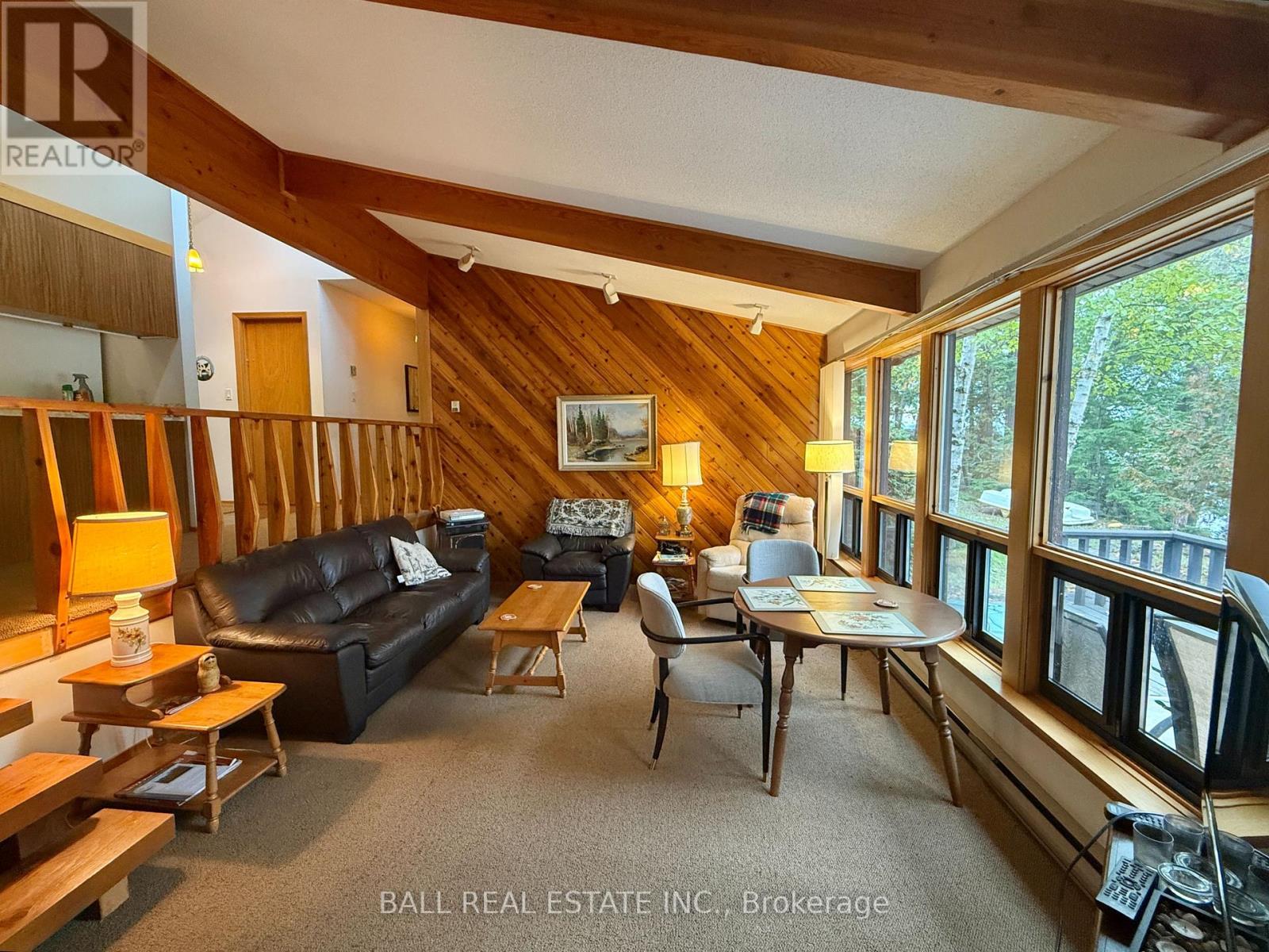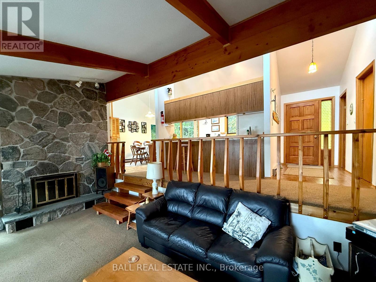 A rare offering on Maple Lane: This 4 season lakehouse on Chandos Lake features 108ft of clean, sandy waterfront and nearly an acre of land with epic sunset views off the boathouse rooftop patio. Tucked at the water's edge, this bungalow offers 1500sqft of living space, 4 bedrooms, 2 full bathrooms and a full basement. The open concept layout is filled with bright windows and walkouts to lakeside decks that are just steps to the level-entry boathouse rooftop patio, hosting outstanding sunset views, with 19'x11' of dry space below. Enjoy excellent treed privacy along the shoreline and roadside, with private wooded driveway off a year-round road, just 15 mins to the amenities of Apsley. Experience the beauty of Chandos Lake year- round from lovely 190 Maple Lane (id:61423)