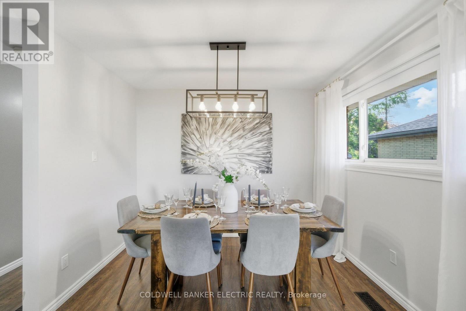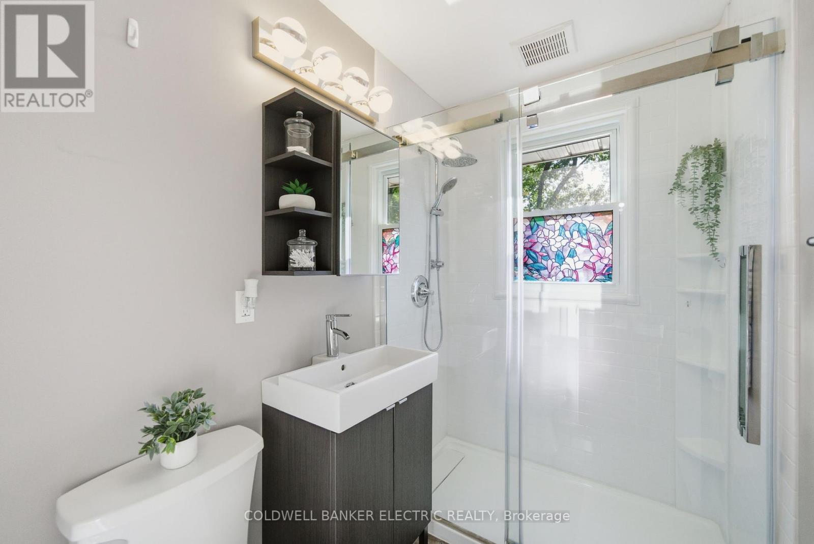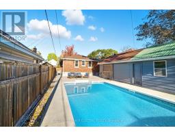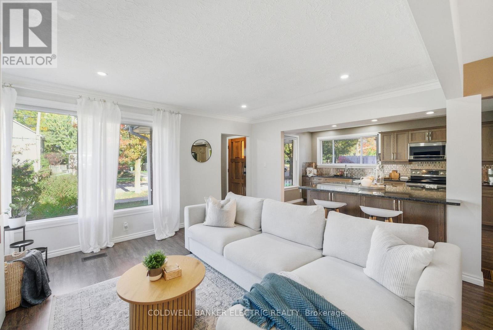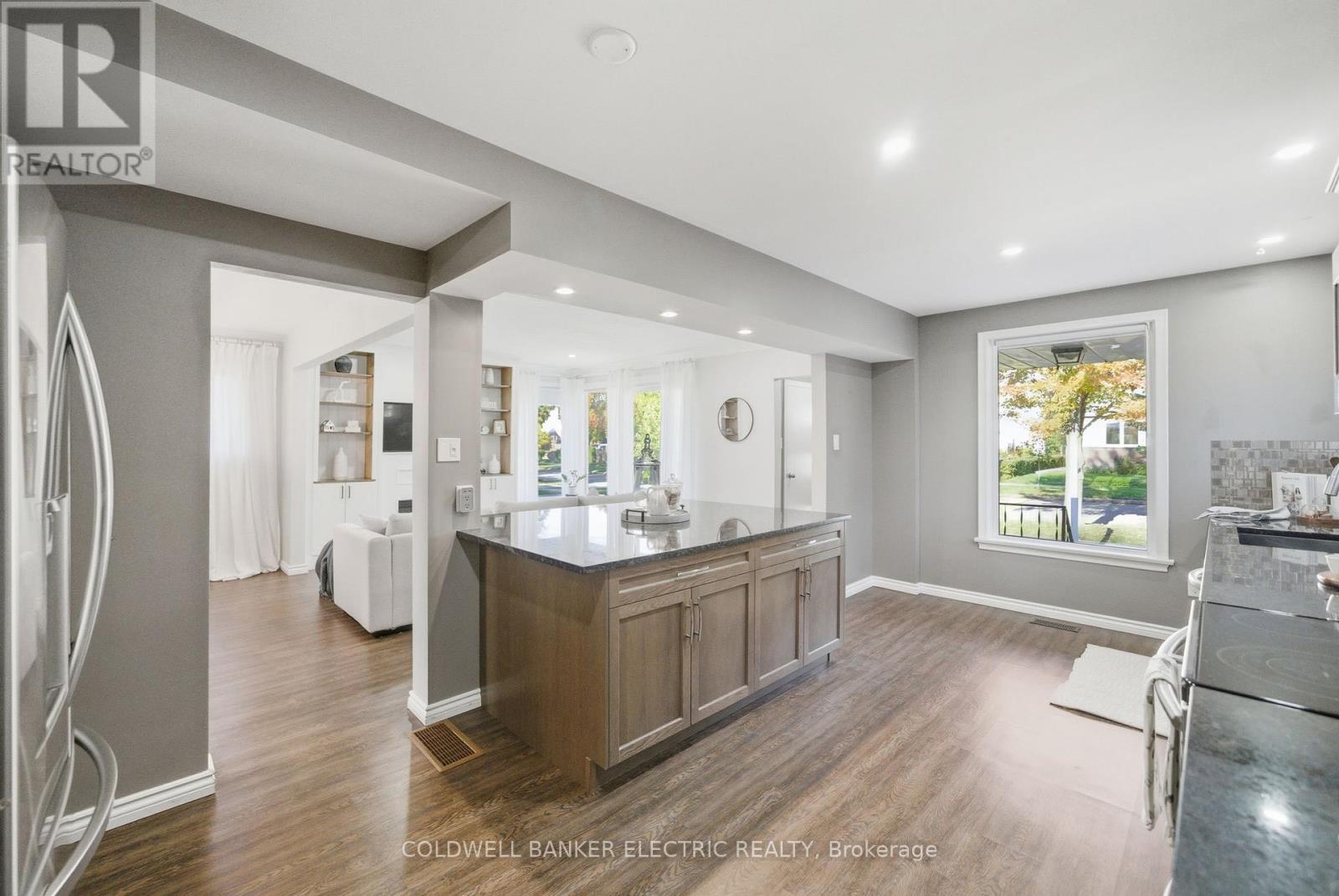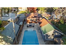 Step inside and be greeted by a stunning renovated kitchen featuring a massive island with breakfast bar, granite countertops, modern light fixtures, and an abundance of cabinetry-- good luck filling them all! The open-concept layout seamlessly connects the bright dining area and cozy living room, complete with custom-built bookshelves that add both charm and character.The main floor bathroom has been tastefully updated with a sleek modern vanity and fixtures. You'll love the updated flooring and beautiful neutral paint palette that carries throughout the main floor and into both bedrooms, creating a warm and cohesive flow.Downstairs, the finished lower level offers even more space featuring a generously sized additional bedroom, a 3-piece bathroom, a large rec room, laundry room, cold cellar, and plenty of storage. With its separate entrance, this level offers excellent in-law potential for the future.Step outside to your own backyard retreat a 33' x 15' detached garage with a large barn-style door opening to a covered porch area, perfect for a poolside bar or change room. Overlooking the 32' x 15' heated inground pool with stamped concrete surround, this backyard is designed for entertaining and relaxation. The back of the garage includes a workshop space that every hobbyist will appreciate.Situated on a quiet, tree-lined street within walking distance to schools, parks, and amenities, this home truly has it all. With its modern upgrades, functional layout, and inviting outdoor space, you can't help but want to call this your next home. EXTRAS: Inground Pool (2017) Pool Heater (2022) Central Air (2019) Furnace (2025) Hot Water Tank (2025) Custom Built-Ins (2024) (id:61423)