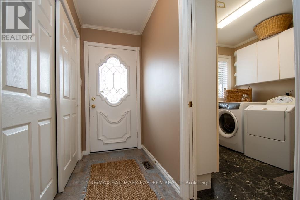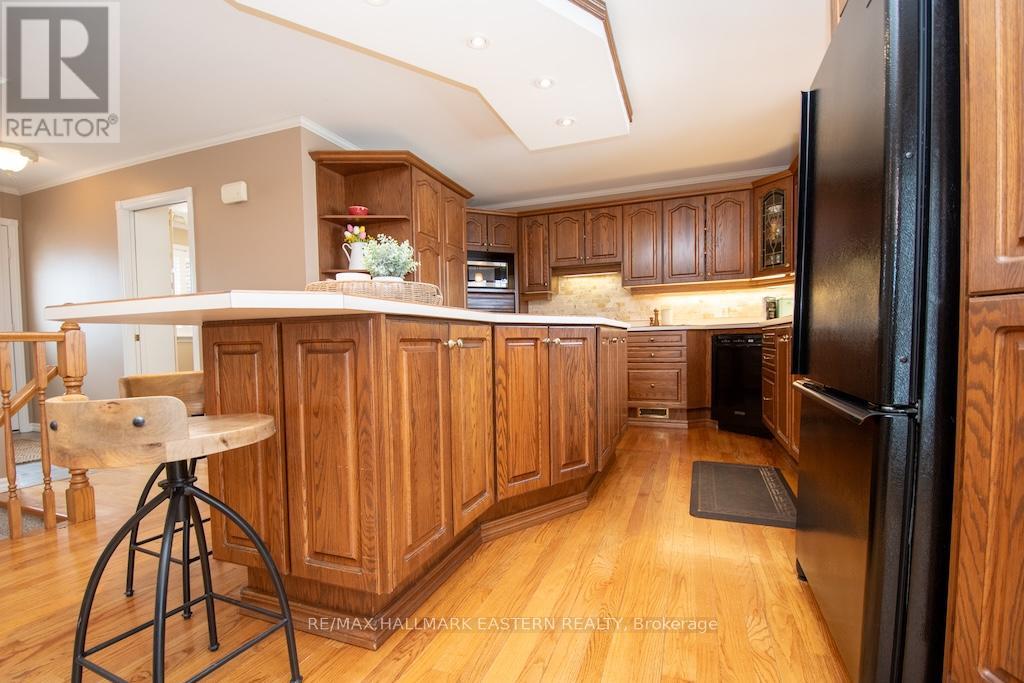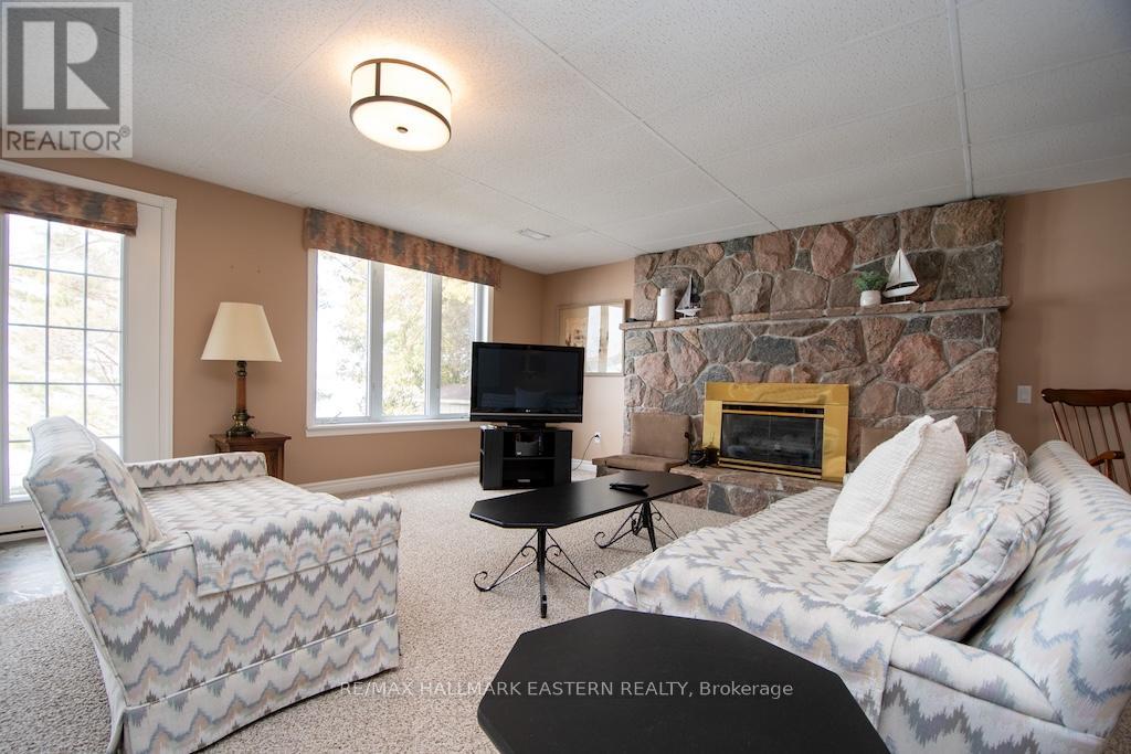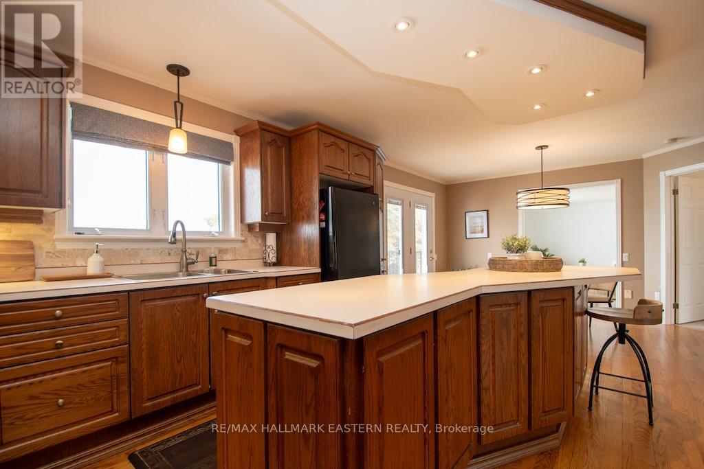 Beautiful all brick waterfront bungalow on Chemong Lake, featuring 3 bedrooms & 3 bathrooms. Lovely hardwood flooring through out offering 2,300 Sq Ft living space. The spacious kitchen features a large island with an eating bar with ample storage. The home has a large primary bedroom with a generous size walk-in closet along with an ensuite. It has a main floor laundry room with plenty of cupboards. The main floor features a walk-out to a newly built 351 sq ft deck overlooking the lake. The lower level is fully finished with a walk-out to a larger stone patio. This offers a welcoming wet bar giving the home in-law suite potential. It includes a floor to ceiling stone fireplace for a cozy feel. This also incudes a paved circular driveway with 6 spaces and attached 1+1 car garage for additional storage, having the upper level with 1 parking space and lower level providing additional storage space for water toys. This property features a large level back lot with potential to build garage/workshop. The shoreline gives you an opportunity to walk into the water or the ability to dive off the dock into lake. The waterfront has an exquisite armour stone shoreline that pairs well with hard sand bottom. This charming home has western exposure allowing you to enjoy epic sunset views all year long. (id:61423)