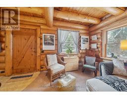 Situated in the village of Burnt River, while still being tucked away from the everyday, this 2.5-storey Scandinavian-style log home feels like stepping into your own private world - quiet, natural, and the perfect mix of manicured landscaping and untouched forest. With 1.5 acres of open yard space and the rest of your 27 acres being forested trails, it's a haven for nature lovers, gardeners, and anyone craving room to grow and explore, or just breathe. Inside, a floor-to-ceiling stone fireplace anchors the kitchen and living area with instant warmth and rustic charm.The main floor also includes a flexible bedroom/office, a 3-piece bath, and a bright 3-season sunroom that feels like a fairy tale whether it's raining or the sunniest day on earth! From here you can head outside and down enchanting stone steps into your own greenery sanctuary. Upstairs offers three bedrooms, including a spacious primary with a bonus room currently used as an incredible walk-in closet, easily repurposed as an office or private retreat. Another full bathroom completes this level. The third-floor loft adds a playful touch, ideal for reading, relaxing, or a kids' hideaway.The finished walkout basement expands your living space and features a wood stove, which is a pleasant touch on those colder days. Outside, you'll find a triple-car garage (with 100amp service) with 1,000 sq. ft. of finished loft space above for guests, work, or hobbies, plus an 8x2 garden shed and an 10x24 drive shed for your tractor and toys. This is more than a home, it's a lifestyle. Mornings with birdsong, afternoons on wooded trails, evenings by the fire. Rustic charm and modern comfort meet here. Conveniently located near small-town essentials: Kinmount (14 minutes), Fenelon Falls (15 minutes), Bobcaygeon and Minden (~30 minutes), and direct access to the Victoria Rail Trail (ATV/snowmobile trails) a boat launch at the end of Hillside drive, and close proximity to Four Mile Lake and Crystal Lake. (id:61423)
