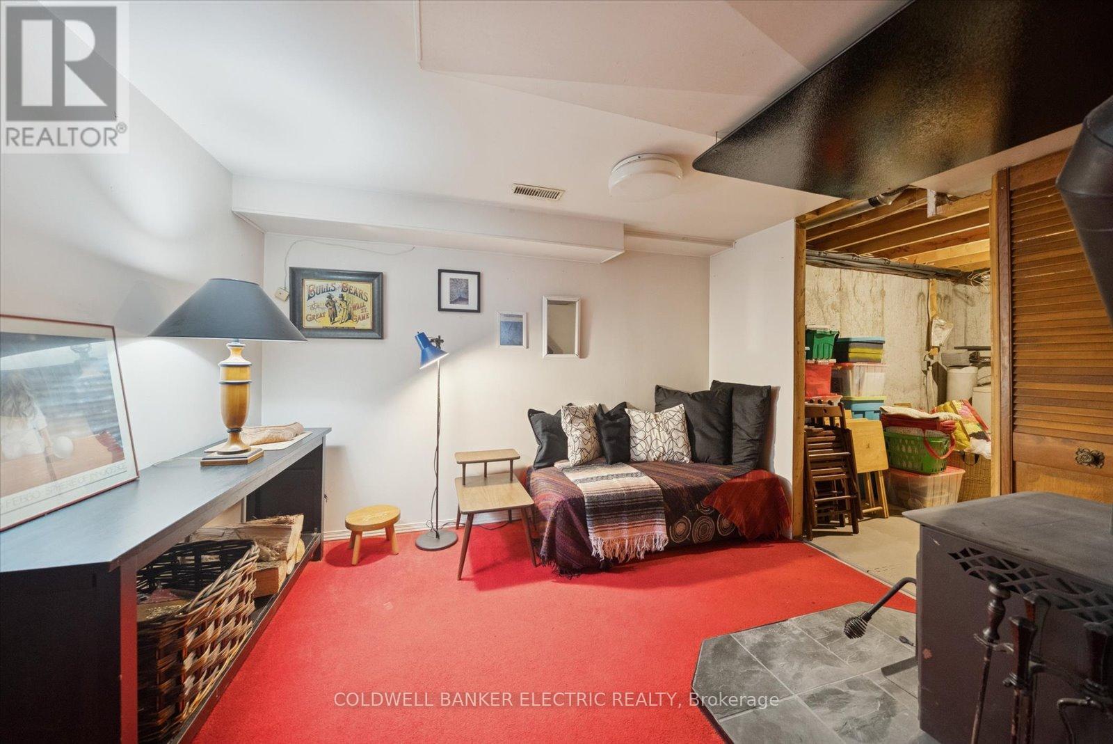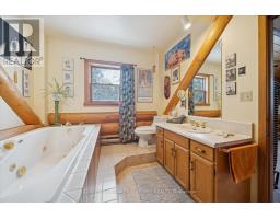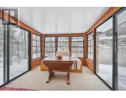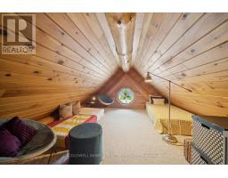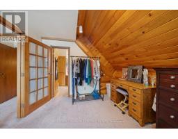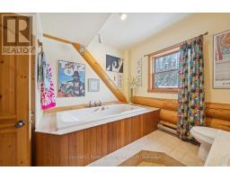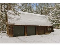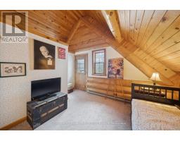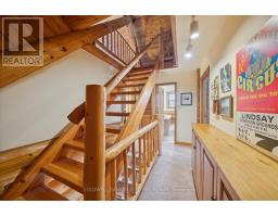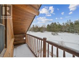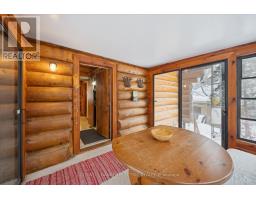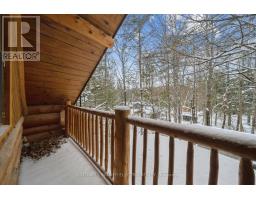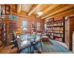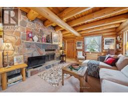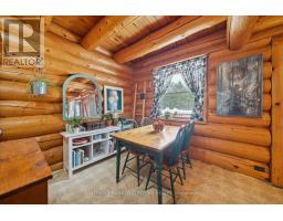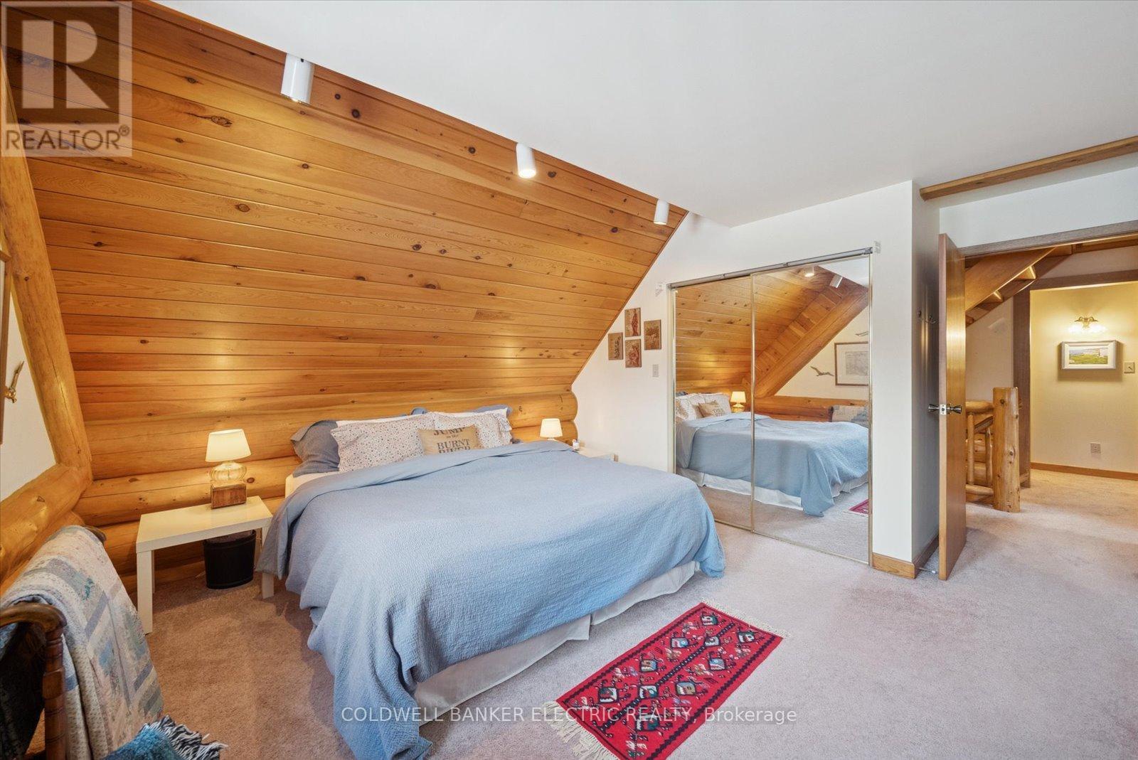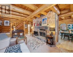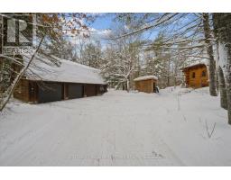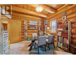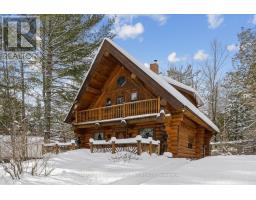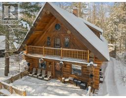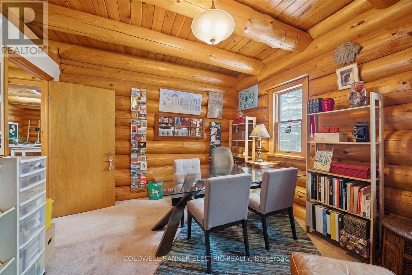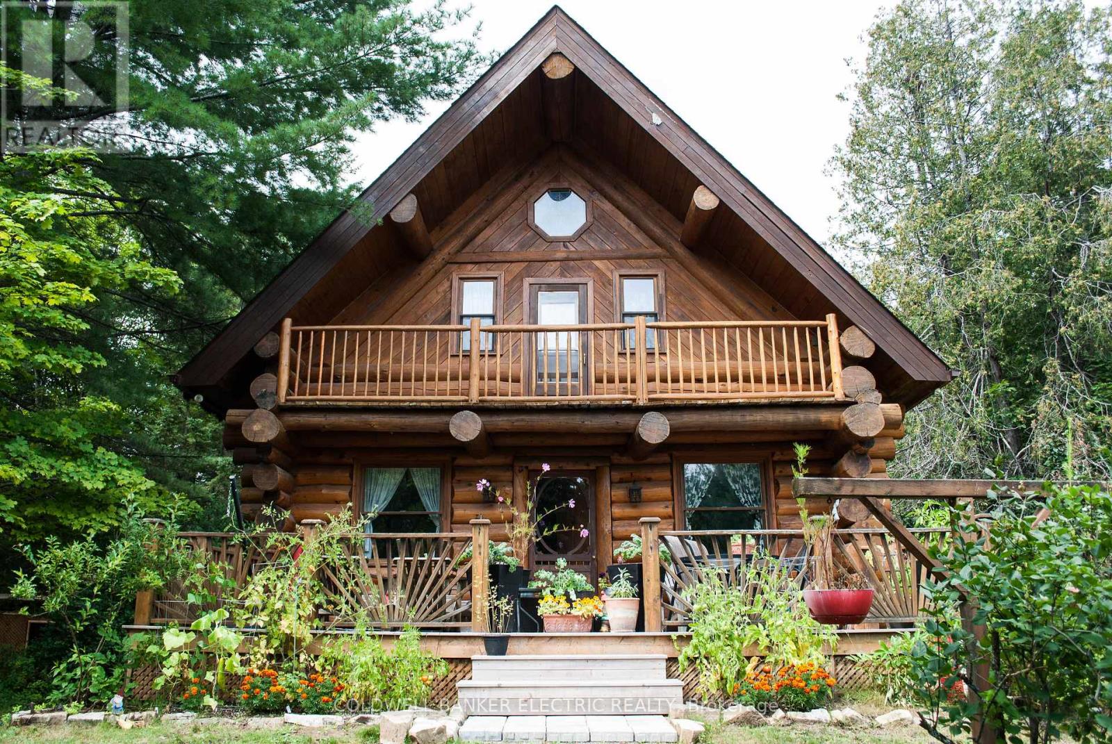 Situated in the village of Burnt River, while still being tucked away from the everyday, this 2.5-storey Scandinavian-style log home feels like stepping into your own private world - quiet, natural, and the perfect mix of manicured landscaping and untouched forest. With 1.5 acres of open yard space and the rest of your 27 acres being forested trails, it's a haven for nature lovers, gardeners, and anyone craving room to grow and explore, or just breathe. Inside, a floor-to-ceiling stone fireplace anchors the kitchen and living area with instant warmth and rustic charm.The main floor also includes a flexible bedroom/office, a 3-piece bath, and a bright 3-season sunroom that feels like a fairy tale whether it's raining or the sunniest day on earth! From here you can head outside and down enchanting stone steps into your own greenery sanctuary. Upstairs offers three bedrooms, including a spacious primary with a bonus room currently used as an incredible walk-in closet, easily repurposed as an office or private retreat. Another full bathroom completes this level. The third-floor loft adds a playful touch, ideal for reading, relaxing, or a kids' hideaway.The finished walkout basement expands your living space and features a wood stove, which is a pleasant touch on those colder days. Outside, you'll find a triple-car garage (with 100amp service) with 1,000 sq. ft. of finished loft space above for guests, work, or hobbies, plus an 8x2 garden shed and an 10x24 drive shed for your tractor and toys. This is more than a home, it's a lifestyle. Mornings with birdsong, afternoons on wooded trails, evenings by the fire. Rustic charm and modern comfort meet here. Conveniently located near small-town essentials: Kinmount (14 minutes), Fenelon Falls (15 minutes), Bobcaygeon and Minden (~30 minutes), and direct access to the Victoria Rail Trail (ATV/snowmobile trails) a boat launch at the end of Hillside drive, and close proximity to Four Mile Lake and Crystal Lake. (id:61423)