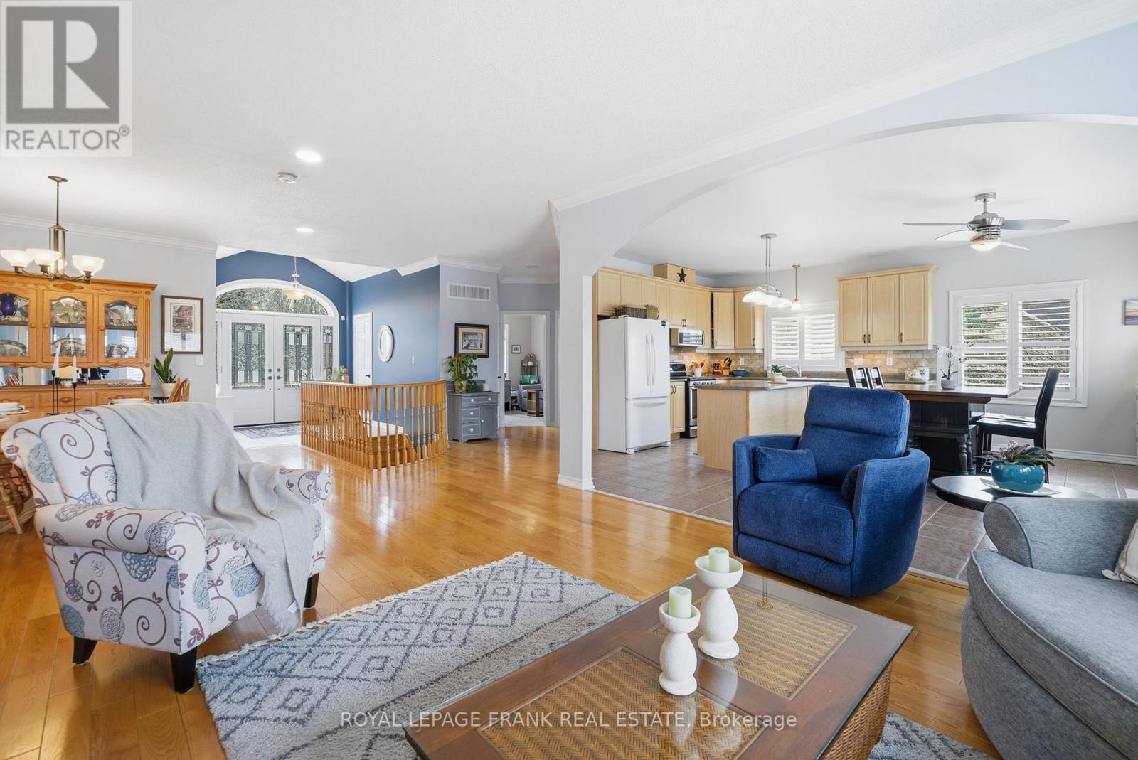 Step into the space you've been waiting for! This beautifully crafted, raised brick bungalow, built in 2005, is the perfect next chapter for those ready to upgrade - more room, more privacy, and a lifestyle that feels like a retreat without sacrificing convenience. Set on nearly an acre near Janetville, just minutes from Lake Scugog and the local boat launch, this home delivers that rare balance of space and connection to nature. Inside, the open-concept design truly supports everyday living! The main floor offers unique arched doorways, hardwood floors, three generously sized bedrooms, two bathrooms, and the ease of main floor laundry with direct garage access - ideal for growing families or those simply craving more breathing room and function. Downstairs, a spiral staircase leads to a fully finished walk-out level featuring a gas fireplace, second kitchen, 4-piece bathroom with heated floors, and a spacious bedroom with a walk-in closet. Whether you're accommodating extended family or creating a private retreat, the in-law suite adds meaningful flexibility as your needs evolve. Extensively updated for peace of mind, the home features a new furnace, updated thermostat, select new windows, upgraded landscaping, perennial gardens & hardscaping, McLeod's water system, composite deck, interlock patio, California shutters, and two internet lines (Bell Fibe & Eastlink) allowing you to move in and simply enjoy. Outside, the generous driveway, three-car garage, mature setting, and beautiful stone work complete the package - offering both practicality and curb appeal. If you've outgrown your current space and are ready for something more - more land, more comfort, more possibility - this is where your next move begins. Country living, elevated, with an easy commute to the GTA. (id:61423)