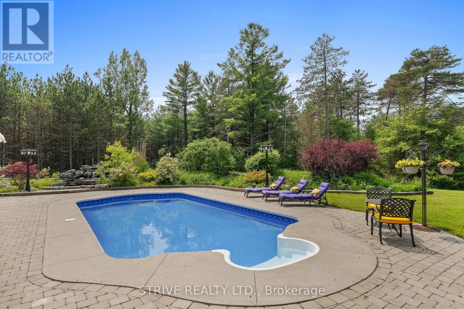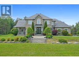 Welcome to an extraordinary opportunity to own a truly one-of-a-kind estate where luxurious living and natural beauty converge---all just minutes from the city. Custom-built by the renowned Storybook Homes and proudly maintained by its original owner, this five-bedroom residence is set on sixty acres of pristine, wooded land in Clarington, offering unparalleled peace, privacy, and distinction---with potential to create a family compound for generations to come. A stately gated entrance leads to a thoughtfully designed home that blends timeless architecture with modern comfort. Expansive, open-concept living spaces are filled with natural light, enhanced by soaring ceilings and large windows that frame picturesque views of the surrounding landscape. Quality craftsmanship and refined details are evident throughout, including an elegant steel roof with a lifetime warranty--- offering both beauty protection. Outdoors, your private oasis awaits... Spend warm days beside the sparkling in-ground pool, recently updated with a new liner, or unwind beneath your imported hand-carved tiki hut. A hot tub, outdoor kitchen, and flourishing perennial gardens elevate the space for both everyday enjoyment and memorable entertaining. Winding trails weave through the property, ideal for scenic walks or ATV rides. Though immersed in nature, the home remains conveniently close to amenities---just fourteen minutes from Costco, minutes to Highway 407 via Harmony or Brock Road, and a short drive to the 401. Families will value the school bus pickup right at the end of the driveway. Additional highlights include a triple-car garage, a paved private road for year-round access, skylights throughout, and high-speed Bell Fiber internet---perfect for remote work or multi-generational living. Offering a rare combination of serenity, sophistication, and accessibility, this exceptional estate is not just a home---it is a legacy in the making. (id:61423)