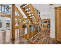 Exceptional Waterfront Luxury on the Trent Severn Waterway!! Experience the pinnacle of lakeside living in this exquisite 4-bedroom, 4-bath custom log estate, ideally positioned on a serene bay off Buckhorn Lake. Crafted with timeless elegance, this home features a gourmet chef's kitchen, spacious lower-level games room, and walk-out access to the waters edge. Outdoors, a sweeping 12x63 ft deck offers panoramic lake views, while professionally landscaped gardens and manicured lawns cascade toward a stone retaining wall and sandy shoreline perfect for quiet relaxation or elegant entertaining. A detached 28x26 ft garage provides ample space for your vehicles and recreational gear. Tucked away on a peaceful dead-end street just 12 minutes from Buckhorn, this one-of-a-kind retreat offers privacy, sophistication, and direct access to the renowned Trent Severn Waterway. A rare opportunity for those seeking refined waterfront living. (id:61423)