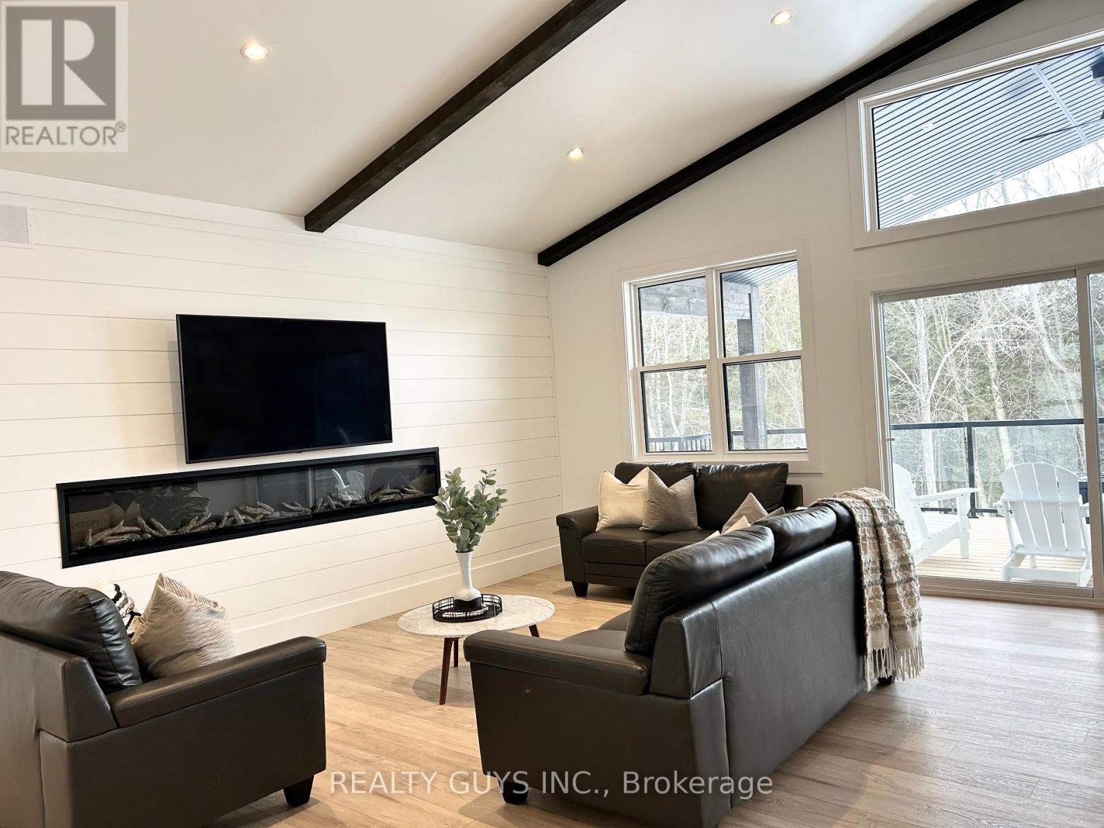 Welcome to this custom-built (2023) waterfront home, set on a private 1+ acre property surrounded by trees with breathtaking west-facing sunset views over the Pigeon River. Ideally situated where the river meets Pigeon Lake, this exceptional property sits along the renowned Trent-Severn Waterway, offering endless boating and recreational opportunities.Thoughtfully designed with soaring ceilings and expansive windows, the home is filled with natural light while showcasing the peaceful waterfront setting. Featuring 3 spacious bedrooms and 2 bathrooms, the home offers generous closets and well-proportioned living spaces ideal for both everyday living and entertaining.The walkout basement with plumbing rough-in provides incredible potential to expand your living space with a future recreation room, guest suite, or in-law accommodations.Set within a serene natural waterfront landscape, this property offers both privacy and possibility. A triple-car garage and ample parking provide plenty of space for vehicles, boats, and recreational equipment.Ideally located for outdoor enthusiasts, a boat launch is less than 500 metres away, with a beach and park within 1 km. A rare opportunity to own a newly built luxury waterfront home offering privacy, space, and stunning sunsets in the heart of Kawartha Lakes. (id:61423)