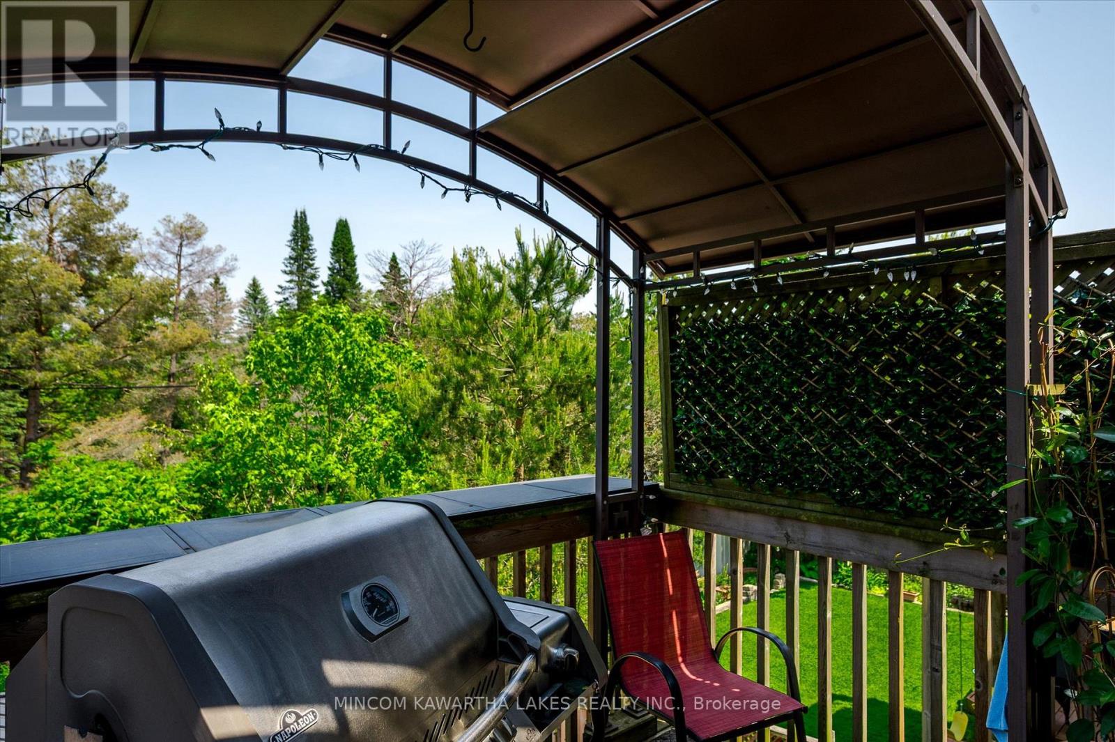 Tucked away on a quiet cul-de-sac in Peterborough's desirable North end, this charming 3 bedroom bungalow offers privacy, comfort, and low-maintenance living. Backing onto a peaceful greenbelt, you'll enjoy beautiful views year-round from the expansive new deck and gazebo perfect for entertaining or relaxing in nature. Inside, you'll find a bright, open kitchen that flows effortlessly into the main living area. The primary bedroom features a 3-piece ensuite and a walk-in closet for added convenience, while the second bedroom is served by a well-appointed 4-piece bathroom. The finished walk-out basement includes a third bedroom, a third bathroom, and plenty of additional living space ideal for guests, a home office, or an in-law setup. The front yard boasts a lovely perennial garden, while the backyard is designed for easy maintenance, no grass to cut! Enjoy BBQs all summer long with gas hook-ups on both the upper and lower decks. Two sheds provide excellent outdoor storage, and a security system (not monitored) adds peace of mind. A rare opportunity in a sought-after neighbourhood. Move-in ready and waiting for you! (id:61423)