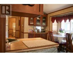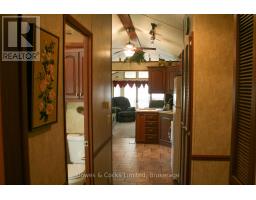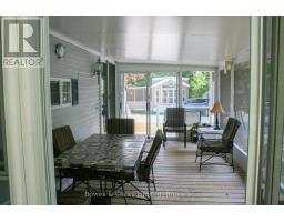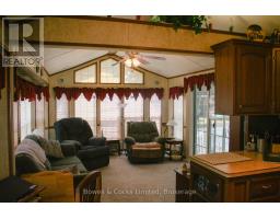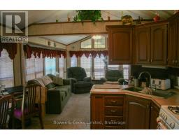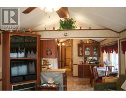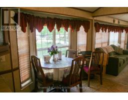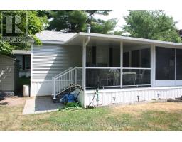 Welcome to your seasonal escape in Pioneer Point Park! This trailer offers a bright and functional layout with built-in storage, mirrored closets, a 3-piece bathroom, and a full eat-in kitchen with a propane stove. The spacious living room features lots of windows, custom blinds, and a sliding partition to create a guest space. Unique ceiling lighting adds charm throughout. Enjoy a large sunroom, covered decks front and back, and a beautifully landscaped private lot with a limestone parking pad. A brand-new shed, BBQ, yard tools, and full furnishings make this a turnkey getaway. Located in a quiet area near the park entrance, you'll also enjoy access to state-of-the-art amenities including a Western facing beach, boat launch, 2 pools, laundry, playground, sports fields and courts, a nine hole golf course, dog park and more. Whether you're relaxing indoors or entertaining outside, this seasonal retreat has it all. Just move in and enjoy the summer season in style and comfort! Park Fees for 2026 Are Paid! (id:61423)