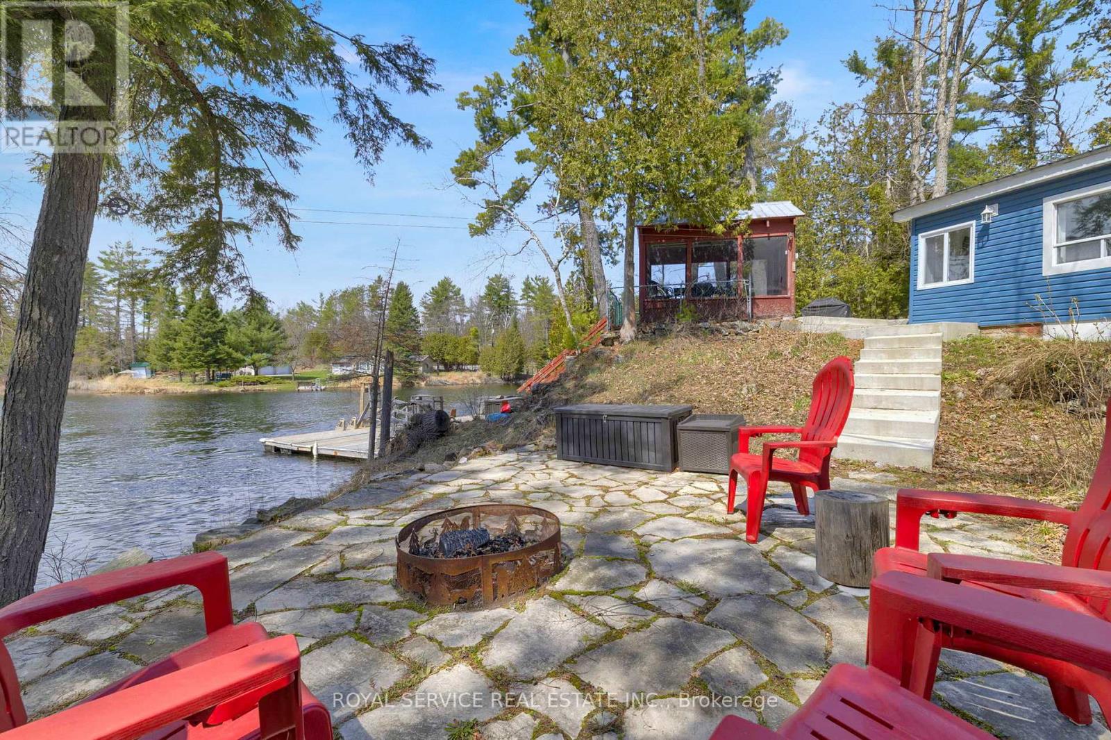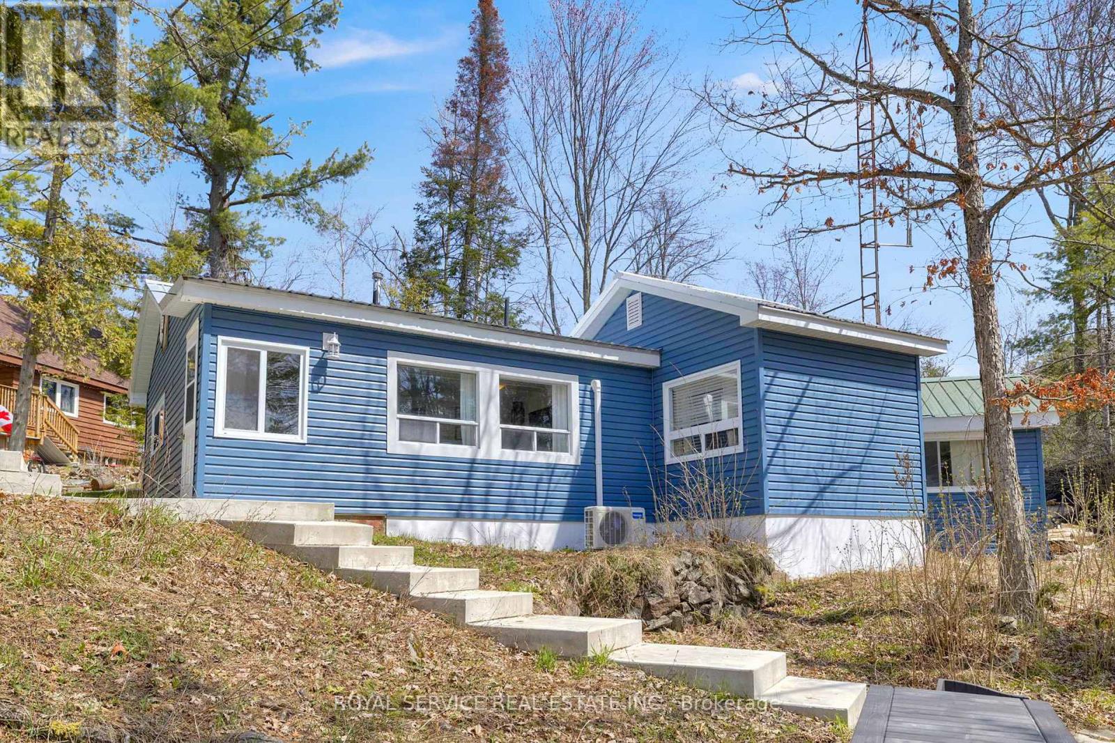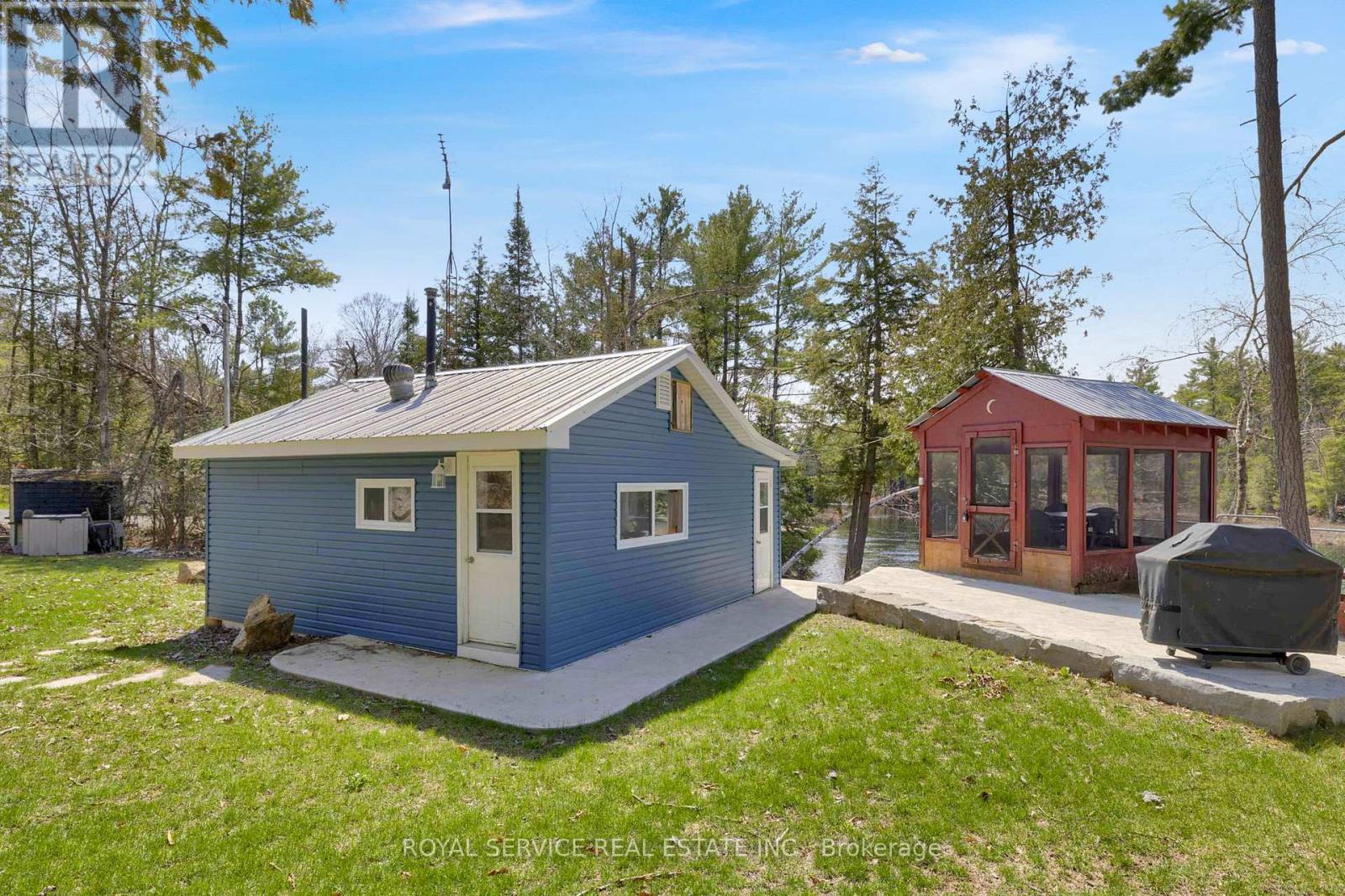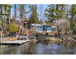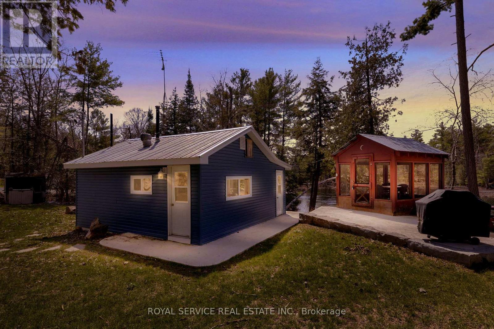 Looking for a place to create unforgettable memories? This charming two-bedroom, one-bath cottage on the North River offers clean, deep waterfront and a peaceful setting on a privately maintained, year-round road.Inside, you'll find an open-concept kitchen featuring a large ceramic sink, seamlessly flowing into the dining and living areas, all with a gently elevated view over the water-perfect for quiet morning coffees. The cottage includes two bedrooms, plus a recently added bunkie for extra sleeping space. Outdoors, enjoy a level backyard, a screened-in gazebo, and beautifully landscaped grounds. Concrete steps lead to a cozy fire pit area-ideal for evenings filled with campfires and conversation. Whether it's fishing, boating, or simply relaxing, this property offers countless ways to enjoy cottage life. Recent upgrades include new siding (2024), a bunkie addition, and extensive landscaping with poured concrete and fire pit steps (2024). Additional improvements feature a new heat pump (2024), water shed (2024), and water pump (2025). Approximately 5 minute boat ride to Round Lake. (id:61423)