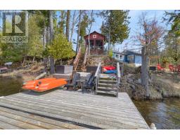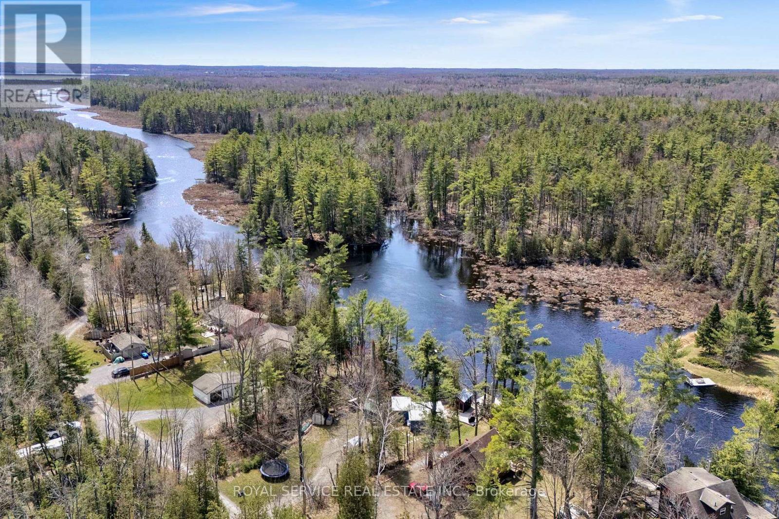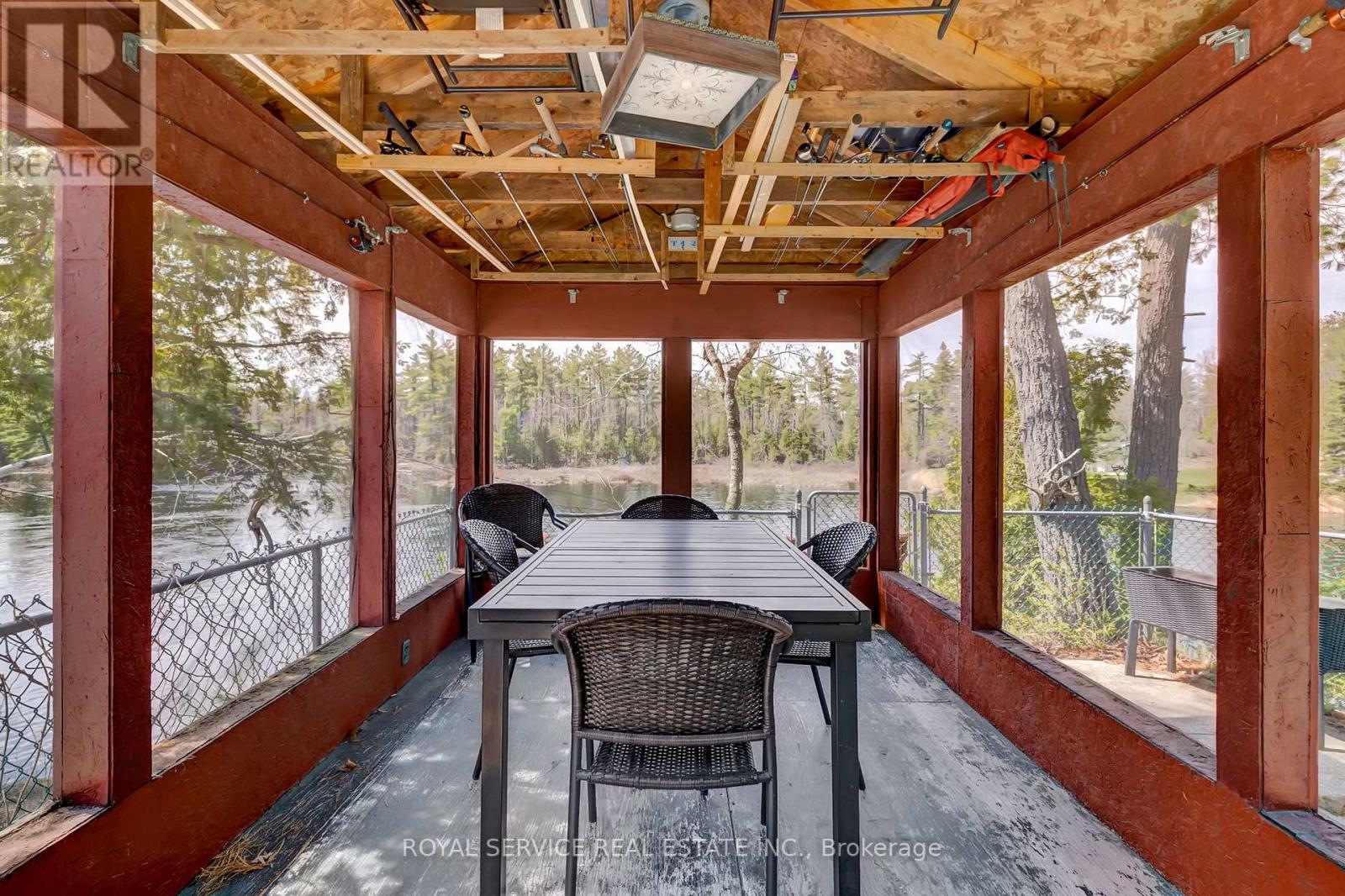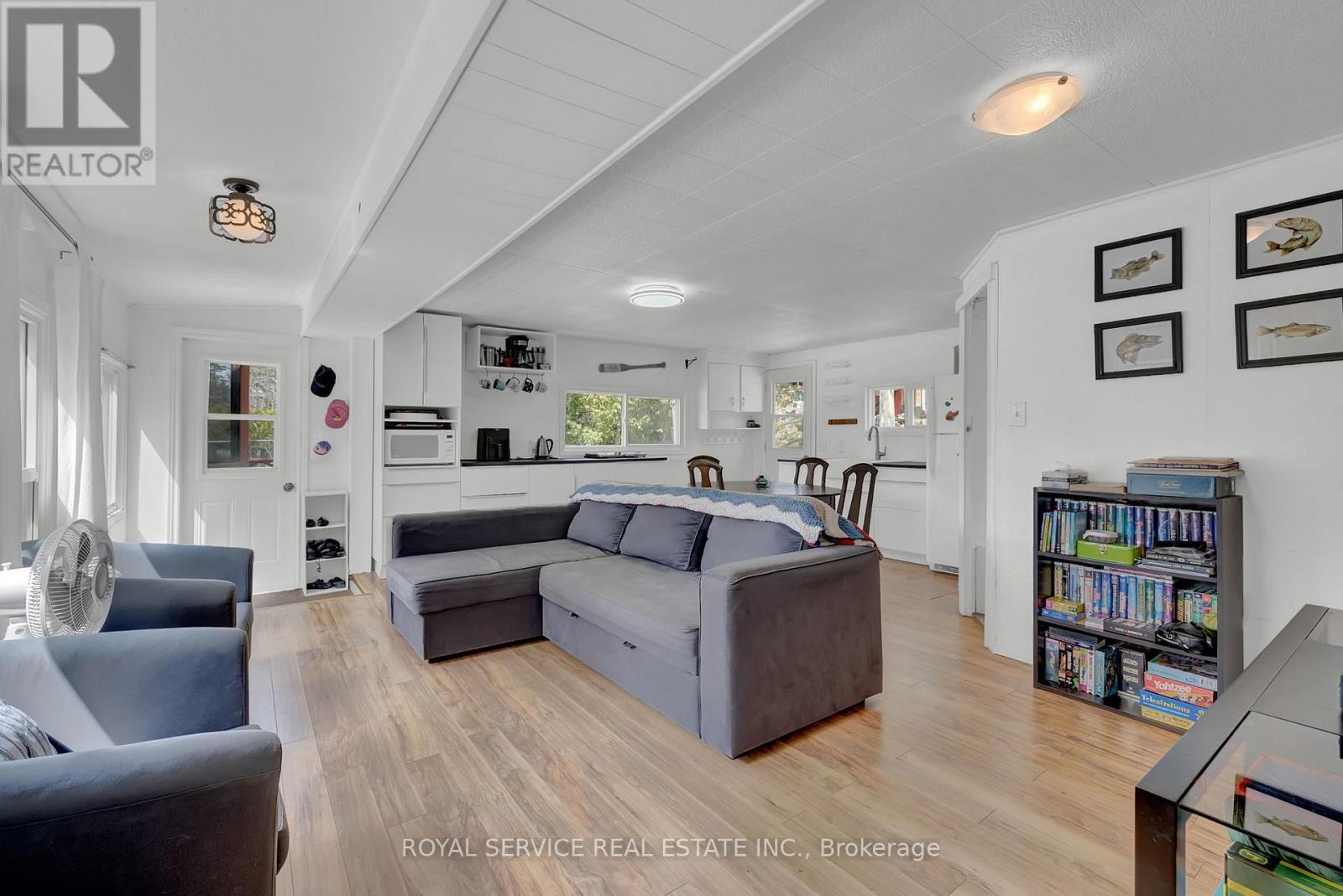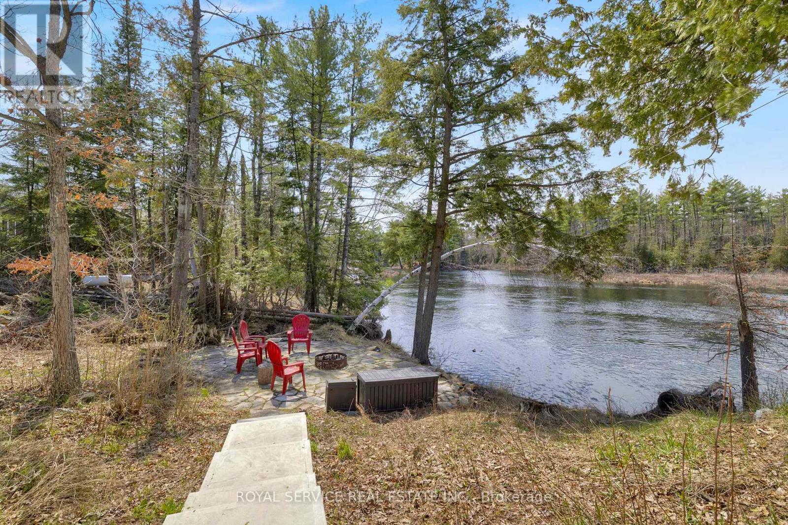 Looking for a place to create unforgettable memories? This charming two-bedroom, one-bath cottage on the North River offers clean, deep waterfront and a peaceful setting on a privately maintained, year-round road.Inside, you'll find an open-concept kitchen featuring a large ceramic sink, seamlessly flowing into the dining and living areas, all with a gently elevated view over the water-perfect for quiet morning coffees. The cottage includes two bedrooms, plus a recently added bunkie for extra sleeping space. Outdoors, enjoy a level backyard, a screened-in gazebo, and beautifully landscaped grounds. Concrete steps lead to a cozy fire pit area-ideal for evenings filled with campfires and conversation. Whether it's fishing, boating, or simply relaxing, this property offers countless ways to enjoy cottage life. Recent upgrades include new siding (2024), a bunkie addition, and extensive landscaping with poured concrete and fire pit steps (2024). Additional improvements feature a new heat pump (2024), water shed (2024), and water pump (2025). Approximately 5 minute boat ride to Round Lake. (id:61423)