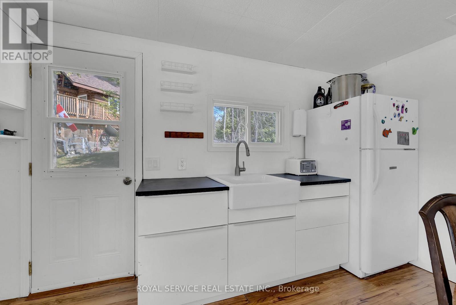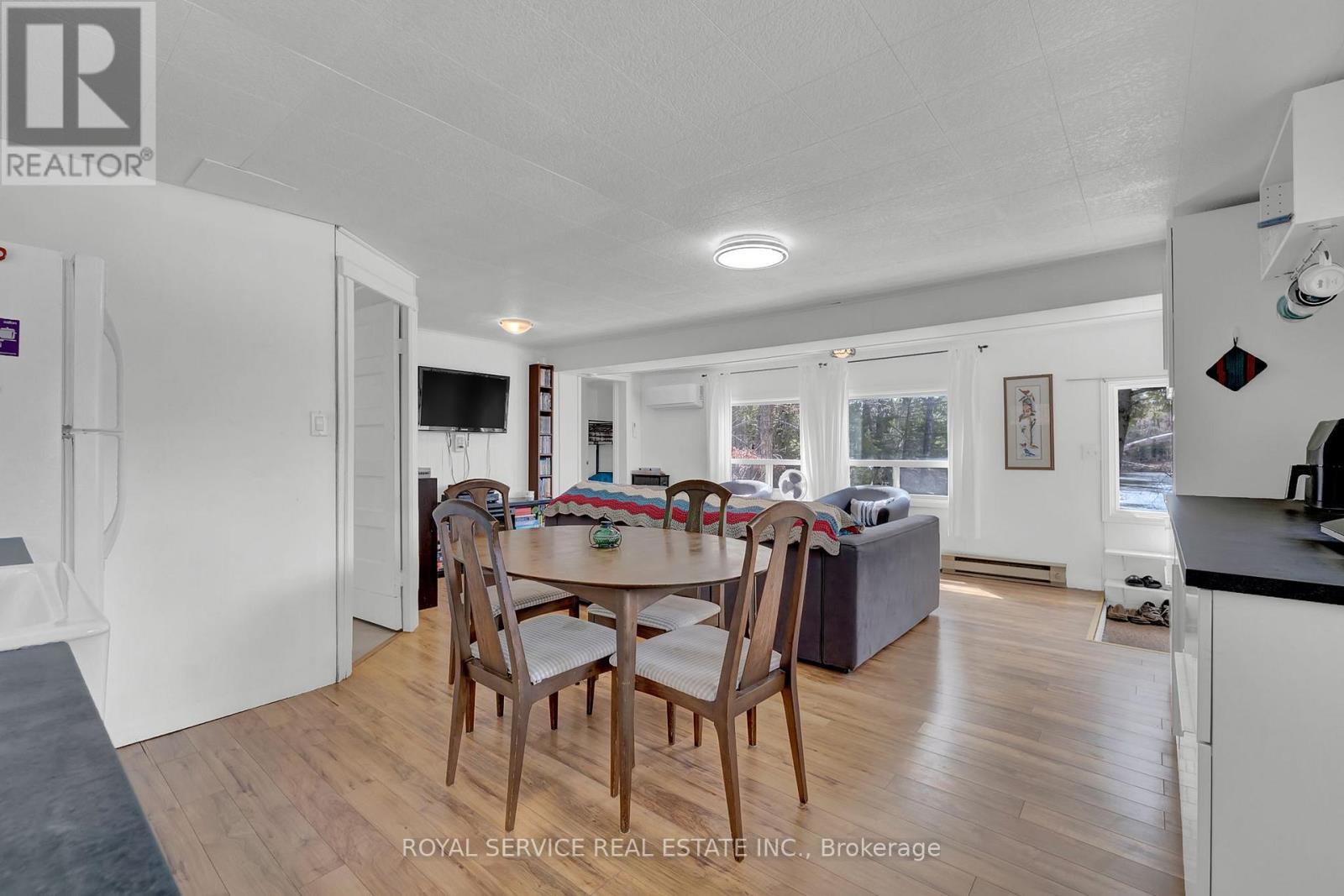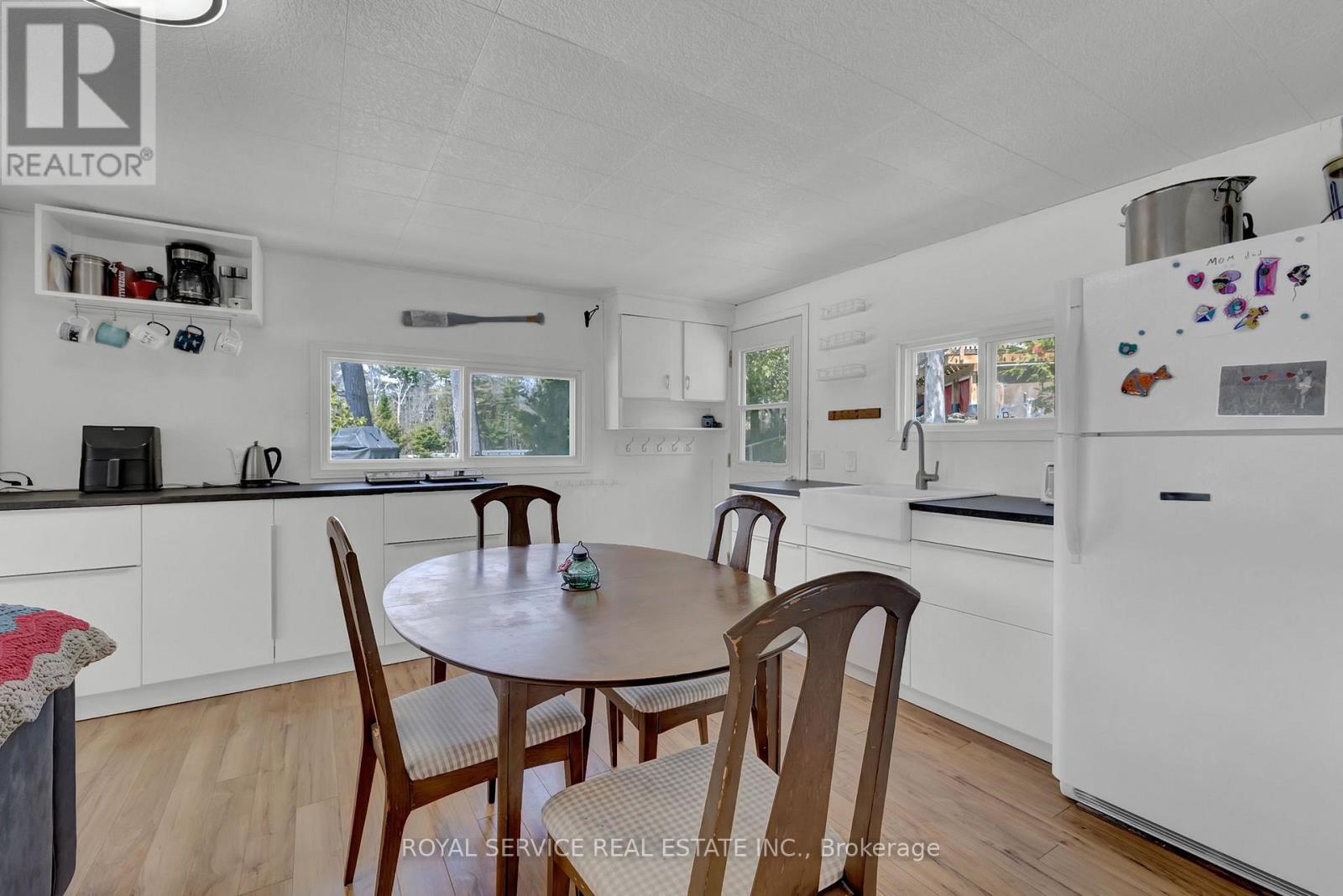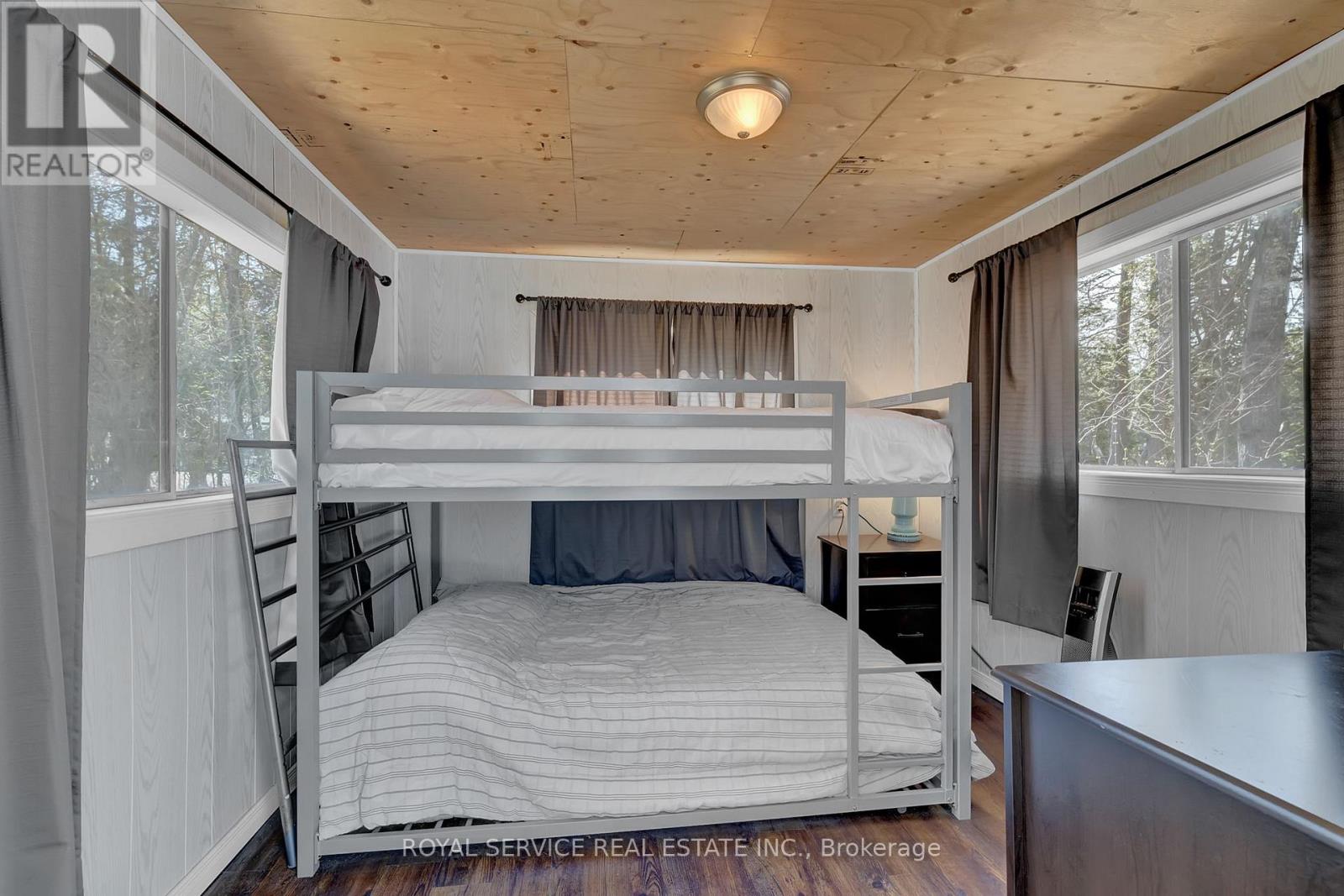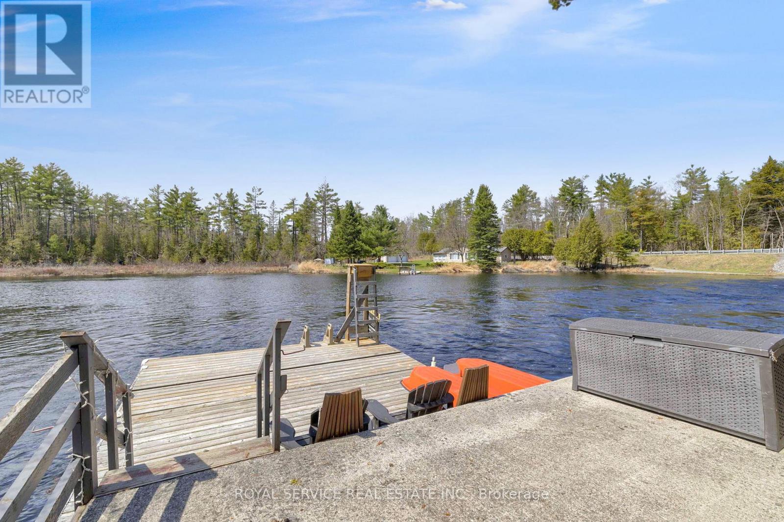 Looking for a place to create unforgettable memories? This charming two-bedroom, one-bath cottage on the North River offers clean, deep waterfront and a peaceful setting on a privately maintained, year-round road.Inside, you'll find an open-concept kitchen featuring a large ceramic sink, seamlessly flowing into the dining and living areas, all with a gently elevated view over the water-perfect for quiet morning coffees. The cottage includes two bedrooms, plus a recently added bunkie for extra sleeping space. Outdoors, enjoy a level backyard, a screened-in gazebo, and beautifully landscaped grounds. Concrete steps lead to a cozy fire pit area-ideal for evenings filled with campfires and conversation. Whether it's fishing, boating, or simply relaxing, this property offers countless ways to enjoy cottage life. Recent upgrades include new siding (2024), a bunkie addition, and extensive landscaping with poured concrete and fire pit steps (2024). Additional improvements feature a new heat pump (2024), water shed (2024), and water pump (2025). Approximately 5 minute boat ride to Round Lake. (id:61423)