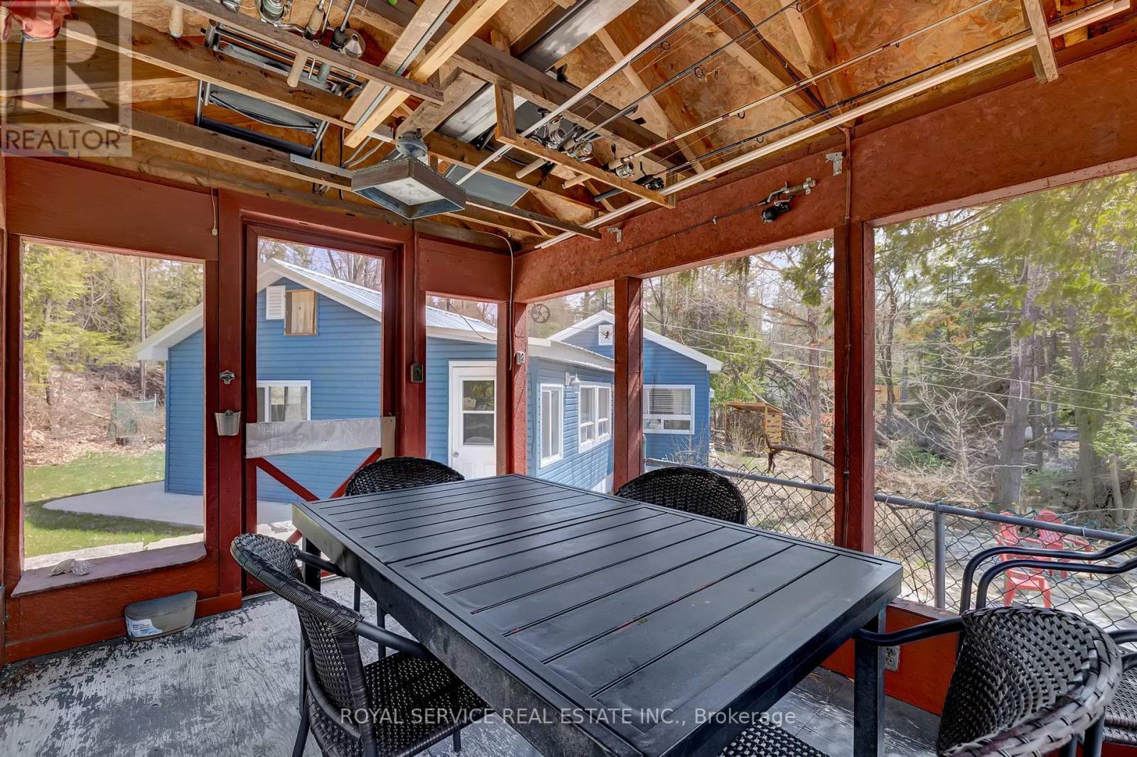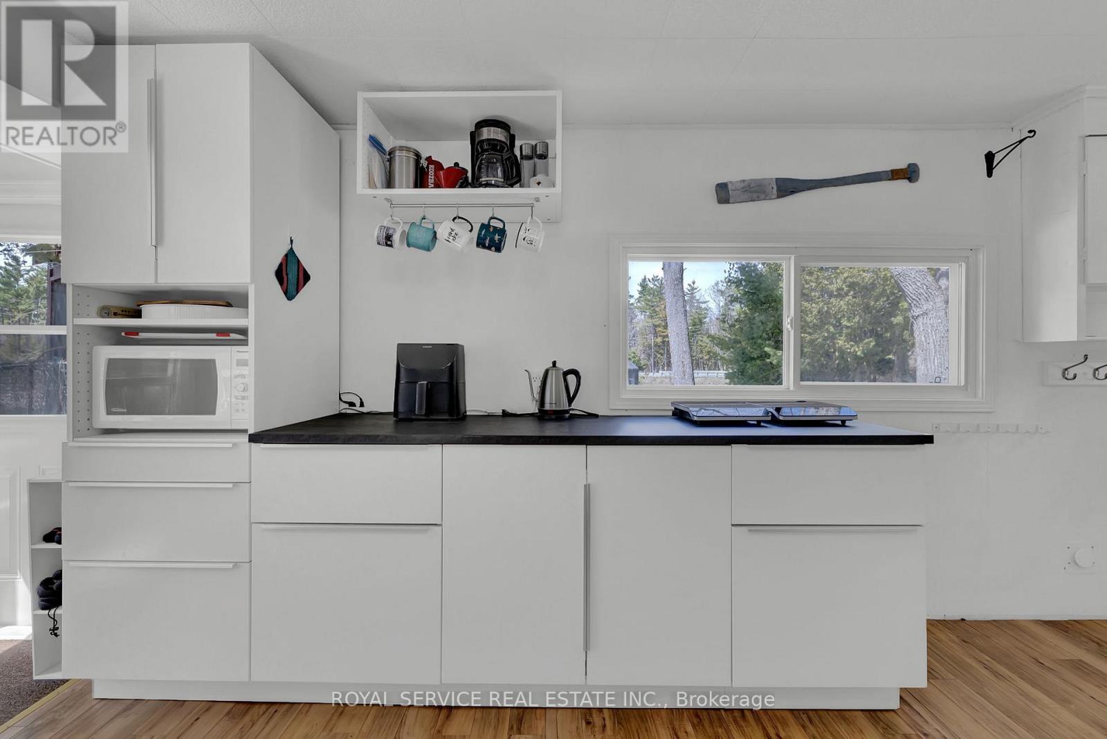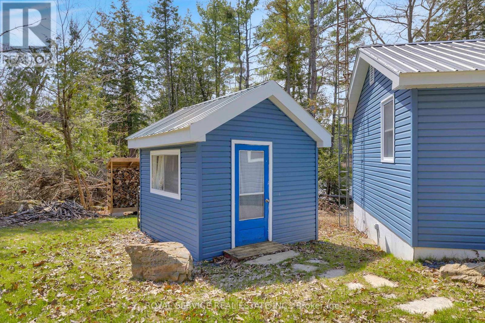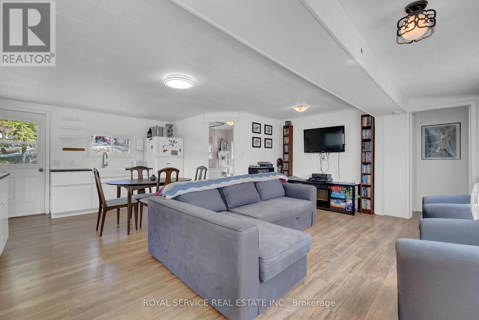 Looking for a place to create unforgettable memories? This charming two-bedroom, one-bath cottage on the North River offers clean, deep waterfront and a peaceful setting on a privately maintained, year-round road.Inside, you'll find an open-concept kitchen featuring a large ceramic sink, seamlessly flowing into the dining and living areas, all with a gently elevated view over the water-perfect for quiet morning coffees. The cottage includes two bedrooms, plus a recently added bunkie for extra sleeping space. Outdoors, enjoy a level backyard, a screened-in gazebo, and beautifully landscaped grounds. Concrete steps lead to a cozy fire pit area-ideal for evenings filled with campfires and conversation. Whether it's fishing, boating, or simply relaxing, this property offers countless ways to enjoy cottage life. Recent upgrades include new siding (2024), a bunkie addition, and extensive landscaping with poured concrete and fire pit steps (2024). Additional improvements feature a new heat pump (2024), water shed (2024), and water pump (2025). Approximately 5 minute boat ride to Round Lake. (id:61423)