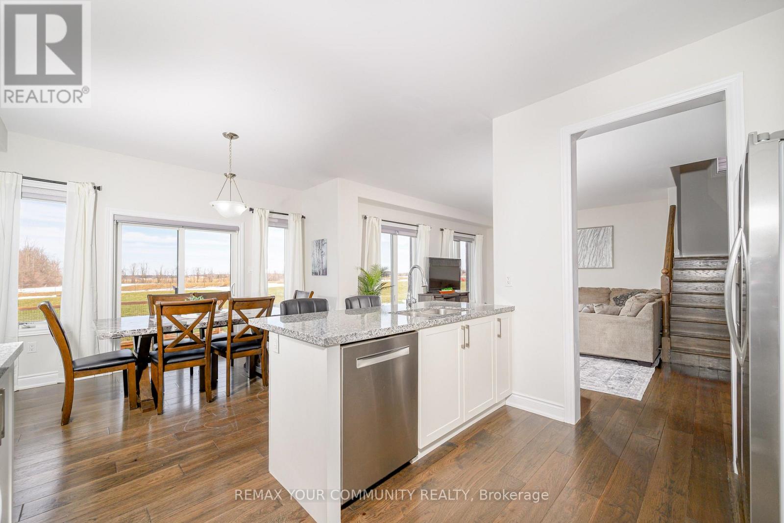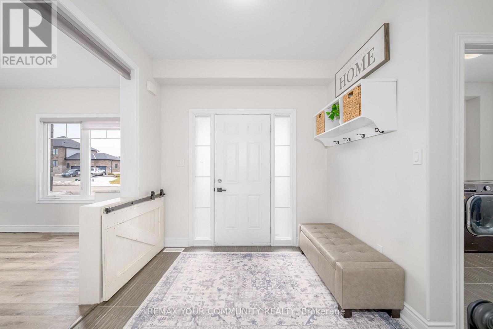 Rare (Approx)4-year-old 2-storey offering 4 bedrooms, 3 bathrooms and a 3 car garage on an impressive 88' wide lot with no homes behind for added privacy. The main floor features bright open concept living with a spacious kitchen offering generous prep space, ample cabinetry and a breakfast bar, flowing into the dining and living areas-perfect for everyday living and entertaining. Walk out from the dining area to the backyard for easy indoor-outdoor enjoyment. The main floor also includes laundry, powder room and a generous home office/den that can be closed off from the main living area, ideal for working from home. Upstairs offers a large primary bedroom with walk-in closet and 4-pc ensuite. The finished basement includes a finished room with a custom built window box to have darkness if needed, perfect for podcasting, music recording, or a private studio. The 3 car garage provides excellent space for vehicles and hobbies, with one insulated and heated (radiant floor) bay that is mostly finished. Located in a quiet small-town community with convenient access to nearby towns and shopping. Bell Fibe available. (id:61423)