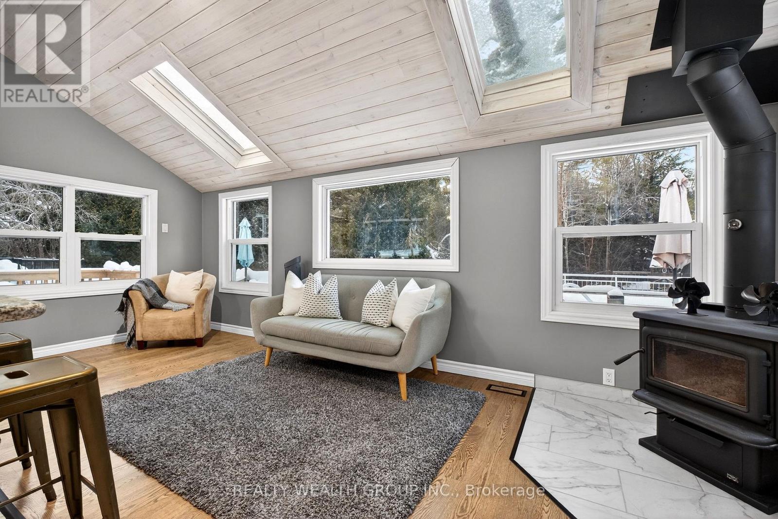 Spacious and bright bungalow offering over 4,000 sq.ft. of total living space, situated on over 5 acres with privacy and a walk-out basement. The main level features high ceilings, an open-concept layout, a large kitchen, and a sitting area with a woodstove. The primary bedroom includes a walk-out to a private deck, plus three additional good-sized bedrooms. The lower walk-out level offers a rec room, two bedrooms, a kitchen, and laundry, suitable for multi generational living. Exterior features include a heated workshop, above-ground pool, and spring-fed pond. Many recent upgrades throughout, including new roof (2025), sitting room and kitchen flooring (2025), new sump pump and waterproofing (2025), lower-level flooring (2025), woodstove (2026), septic system (2021) and GenerLink generator connection (2026). See attachment for a full list of additional improvements. Private setting with convenient access to the highway and a short drive to Peterborough. (id:61423)