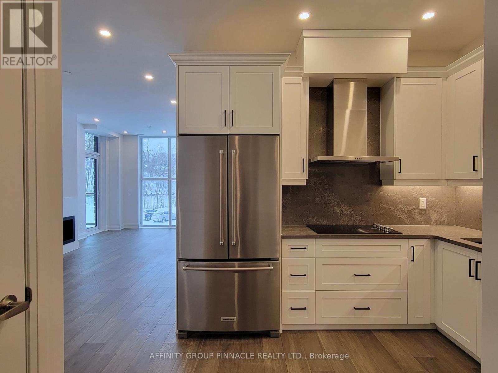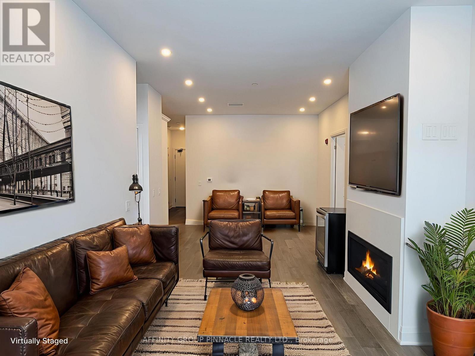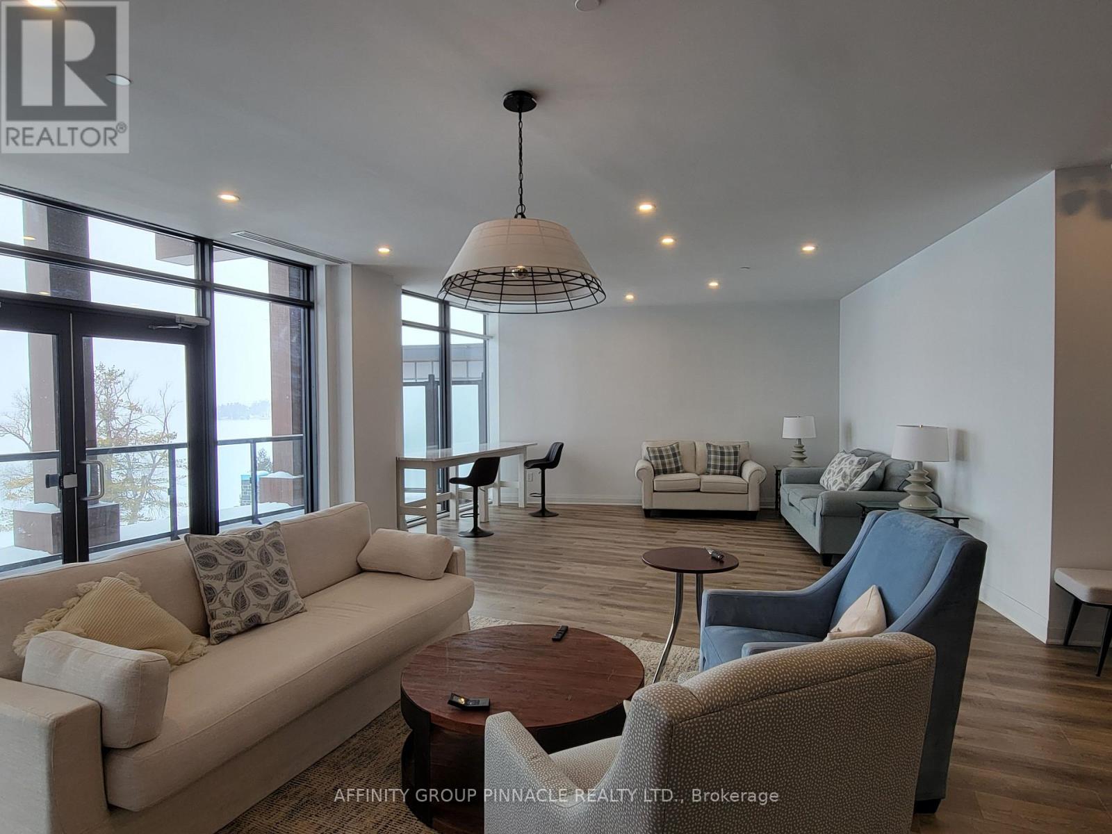 Truly the first of its kind, The Moorings on Cameron Lake has set the bar for luxury condominium living with all the charm and serenity of living on the water. Welcome to Unit 201, a two bedroom, two bath, 977sqft condo suite with 9ft ceilings and extensive windows, engineered hardwood & porcelain tile, stainless steel kitchenaid appliances (incl. wall-mounted oven and microwave/air fryer), quarts countertops, in-suite laundry (whirlpool washer/dryer). Primary bedroom features luxury 3-pc ensuite, walk-in closet, and walk-out to covered balcony (equipped with natural gas line for BBQ). Suit 201 also offers TWO secure side-by-side underground parking spots and private locker. Building amenities are second-to-none. The third-floor owners lounge (bookable for private events!) overlooks the lake through wall-to-wall windows, and is fully equipped with a caterer's kitchen, extensive dining seating, cozy fireside lounge, high-top tables, and in-house theater room with premium cinema seating. The second-floor fitness center is equipped with cardio and weight machines, change rooms, and a dedicated yoga/pilates room with an attached cedar sauna. Outside, owners enjoy a heated pool and spa, tennis/pickle ball courts, sprawling lakeside courtyard, and extensive waterfront docking and swimming platform. Condo fees include high-speed internet and natural gas. Boat slip available for purchase. Nestled on the shores of Cameron Lake, featuring blazing sunsets and wide lake views, the Moorings offers it's residents a luxe and active lifestyle nestled in the heart of Fenelon Falls, Ontario. Explore miles of biking, hiking, snowmobiling, and ATVing on the Victoria Rail Trail, boat the world famous Trent Severn Waterway, and walk to dinner, shopping, and entertainment in historic and charming Fenelon Falls. With robust and modern condo amenities set amongst the lush natural backdrop characteristic of the Kawarthas, your low-maintenance, richest, fullest life awaits. (id:61423)