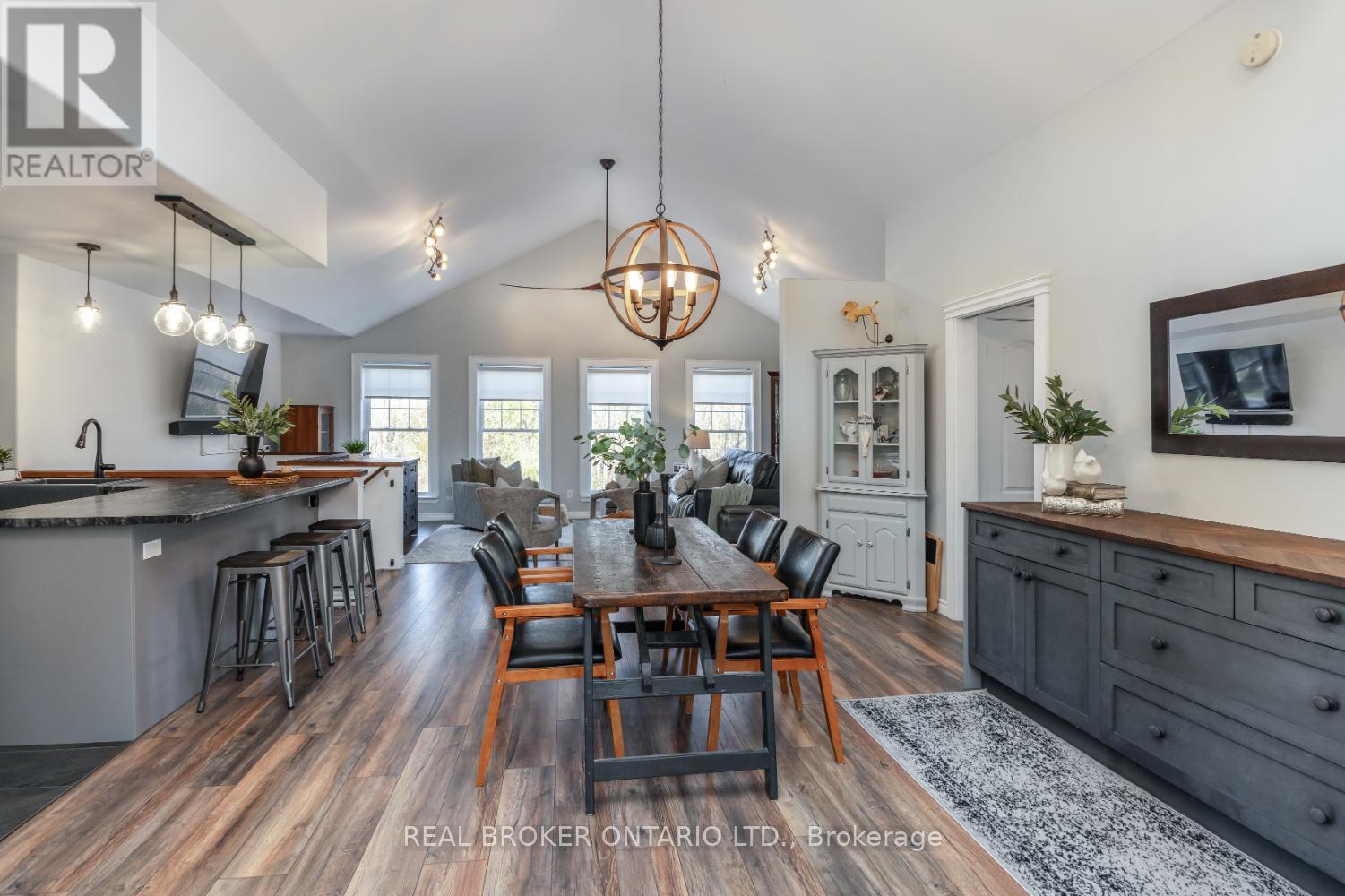 Nestled on approximately 2.95 serene acres, along a quiet, tree-lined road, this enchanting property offers the perfect blend of charm, comfort, and privacy. Surrounded by nature, it's a true retreat from the everyday hustle - a place to unwind, explore, and simply enjoy the beauty of your surroundings. Step inside to discover an updated kitchen featuring stainless steel appliances, including a gas range, and a convenient breakfast bar. The kitchen opens seamlessly to the dining area, where soaring cathedral ceilings create a bright, airy space ideal for gathering with friends and family.The spacious great room continues the open-concept flow, with luxury vinyl plank flooring, cathedral ceiling, and a walk-out to the deck - perfect for morning coffee or evening relaxation overlooking the trees.The primary bedroom offers two closets for ample storage, while the stunning bathroom features a modern walk-in shower and handy drying rack. The unfinished walk-out basement provides endless potential to expand your living space and make it your own.Outside, this spectacular property shines with walking trails, lush landscaping, gardens, and a fabulous yard surrounded by mature trees. Enjoy the large driveway, handy shed, above-ground pool, and relaxing hot tub - all while soaking in the peaceful sounds of nature.A truly special property where privacy and natural beauty meet everyday comfort. (id:61423)