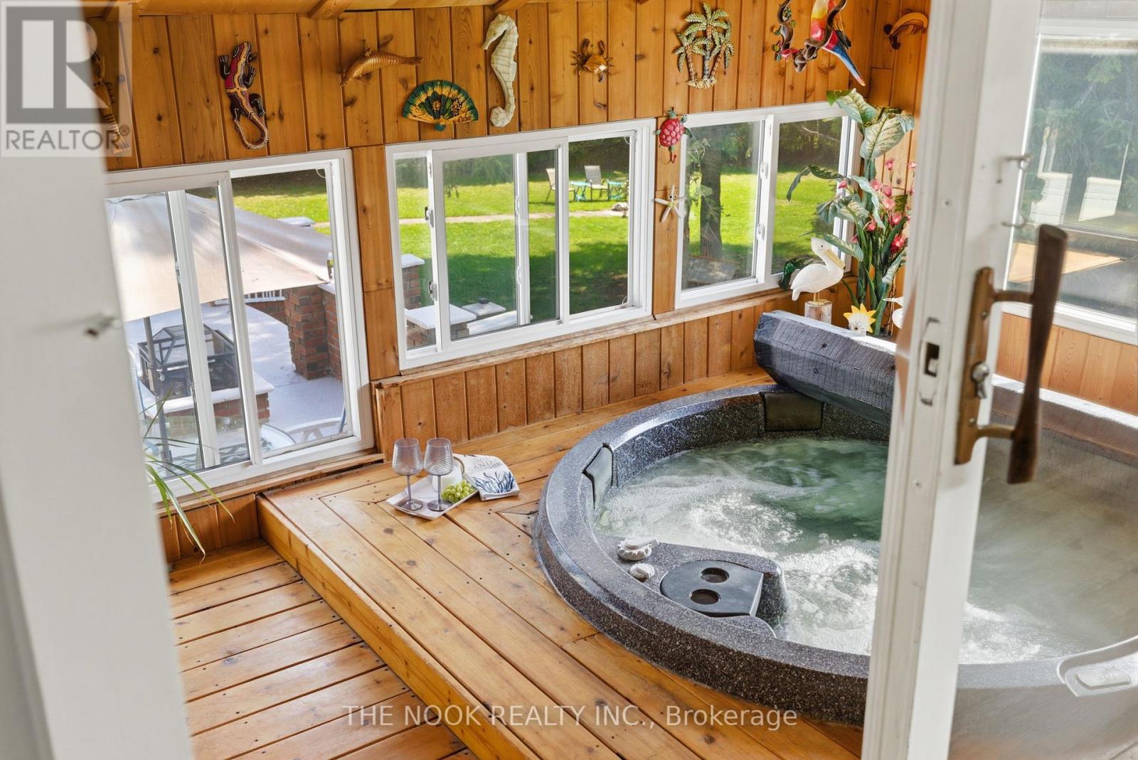 OFFERS ANYTIME. Welcome to 201 Ski Hill Rd, a private retreat in the heart of Bethany's peaceful countryside. Set on nearly 1.5 acres, this spacious 3+1 bedroom side split offers a rare blend of comfort, functionality, and beautifully maintained outdoor space. A sweeping circular driveway sets the tone as you arrive, leading to a well-kept home that has been extensively updated and thoughtfully cared for over the years. Inside, a bright and inviting layout features a renovated kitchen with quartz countertops, updated cabinetry, and modern finishes, flowing seamlessly into a generous dining area ideal for everyday living and entertaining. The main living spaces offer warmth and character, including a cozy family room with one of two gas fireplaces. The finished basement adds valuable versatility with a large rec room, additional bedroom, and ample space for guests, a home office, or growing families. Step outside to enjoy a fully fenced yard backing onto open fields, offering privacy, wide-open views, and stunning sunsets. Multiple outdoor living areas include a covered patio, an additional patio space, and a charming three-season cabana, perfect for relaxing or hosting. A unique indoor hot tub room provides a year-round escape with tranquil views of the surrounding property. Practical upgrades include conversion to natural gas, updated mechanical systems, central air conditioning, and strong high-speed internet service. The property also features three garages plus an attached heated workshop, ideal for hobbyists, storage, or additional workspace. Larger than it appears and designed for both everyday comfort and lifestyle enjoyment, this is a truly special property offering the best of country living with modern conveniences. IMPORTANT: Please ensure all gates to the property are latched before leaving. (id:61423)