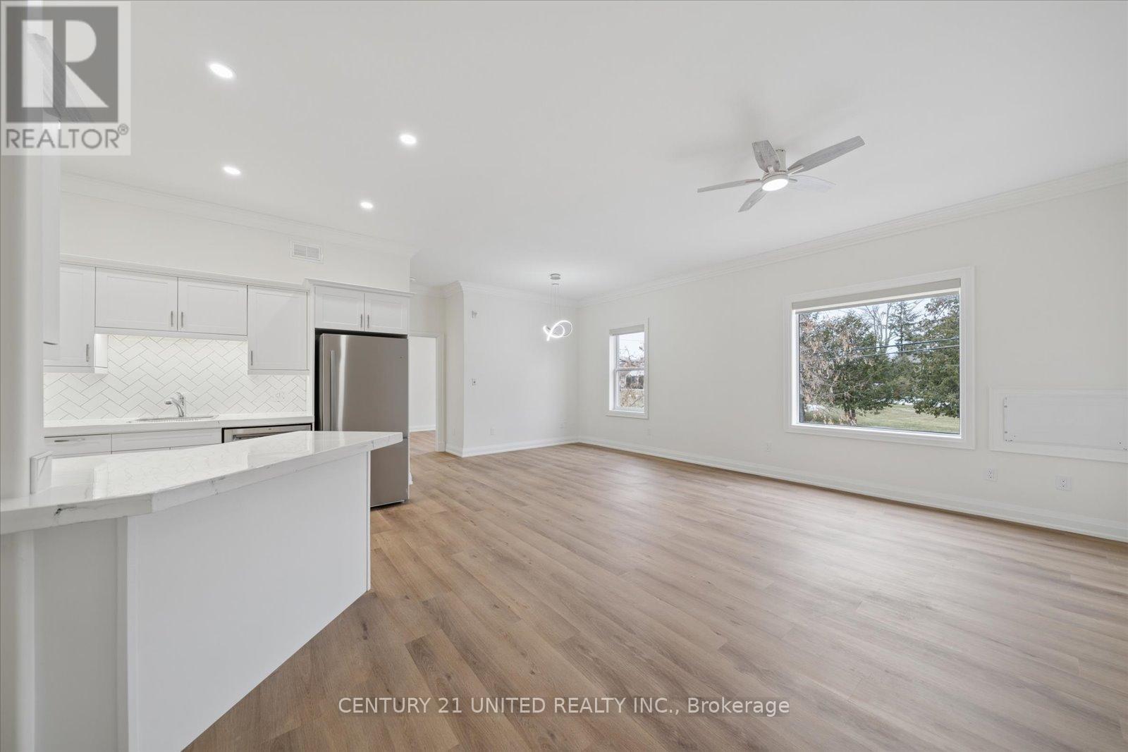 Be the first to live in this brand new 2 bedroom, 1 bathroom apartment in the heart of Bridgenorth, offering modern finishes and an unbeatable location. This bright and thoughtfully designed unit features 9'6" ceilings, open concept living, high end finishes throughout, crown moulding, wide plank flooring , brand new appliances , stunning modern bathroom and large windows that bring in plenty of natural light. Enjoy 2 parking spaces and the added luxury of in-floor heating, with heat and water included, providing both convenience and comfort year round. Ideally located within walking distance to schools, shopping, restaurants, and Chemong Lake, with a bus stop right out front of the building for easy commuting and less than a 10 minute drive to Peterborough. This luxury apartment offers modern comfort and a clean, upscale feel you'll love coming home to. Don't miss your opportunity to make it yours. (id:61423)