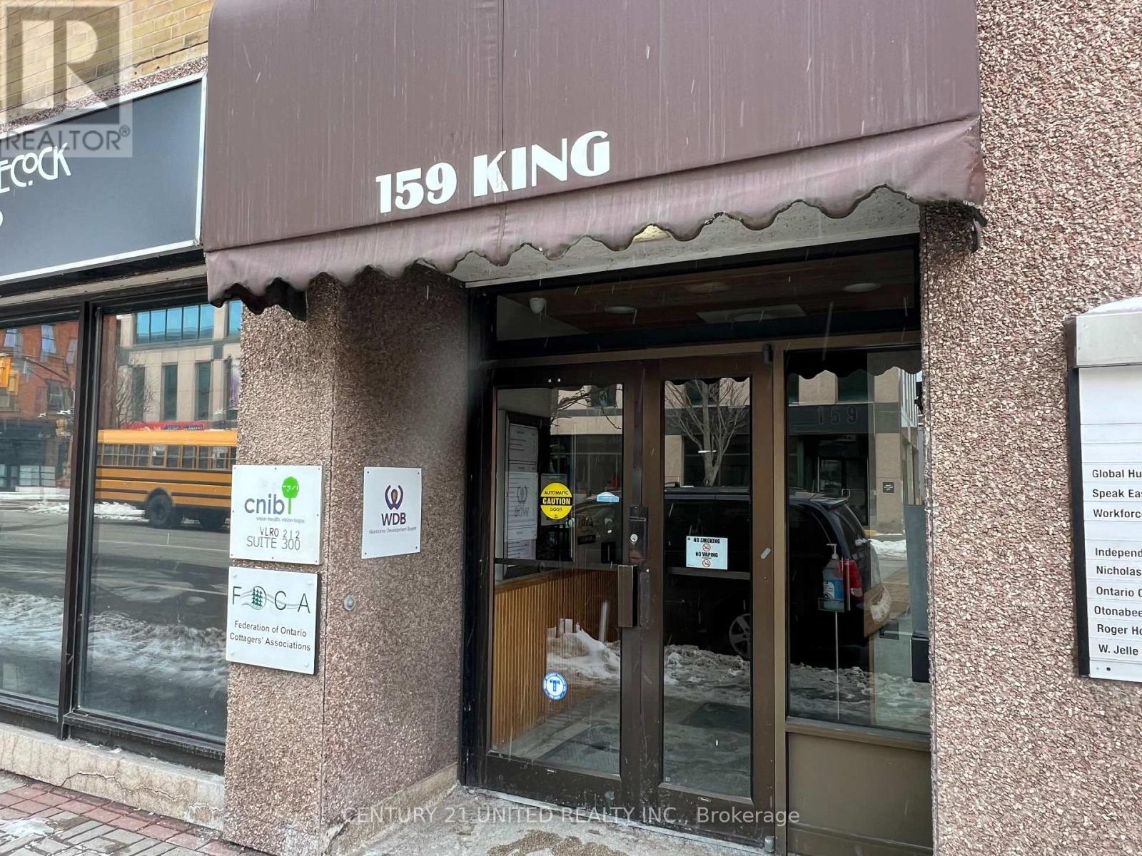Approximately 1,390 SF Professional office space on 2nd floor in great downtown location at the corner of King and George St N. In-suite kitchenette with sink. Close to all downtown amenities including Peterborough Square, the Venue and Market Plaza. Across from the King St Parkade and close to the City Bus Station. Additional rent estimated at $9.20/SF with utilities included. Space can be demised into 330 SF and 1,060 SF. (id:61423)