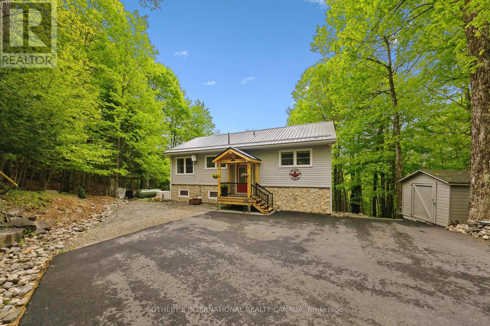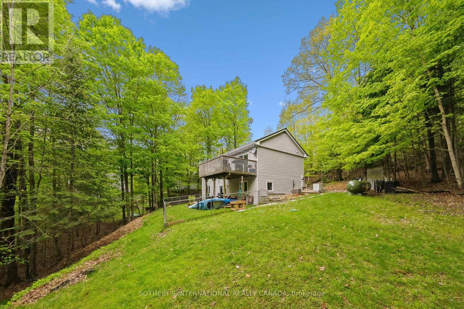 WELCOME TO 202 SUNNYSIDE STREET! Haliburton Village's most sought after community. Sitting on .66 acre lot, surrounded by forest and nature while still being walking distance into town. Fenced for pets. In 2004 this house was lifted and a lower level 1 bedroom suite added doubling the square footage to over 1800 square feet of total living space. A new septic system was installed and all work completed with permits and signed off. Bright and airy, the main level features 2 good sized bedrooms and a 4 piece bathroom. A good sized kitchen, living room/dining room combination and fabulous walk out to a large deck with sunny south exposure. Lower level features a second kitchen, 3 piece bathroom, plus additional bedroom and family room. With direct access from the main level, use this space personally or potential in-law/ rental opportunities. Surrounded by trees and nature, you feel like you are sitting in a tree house. The lower level is also incredibly bright with above grade windows and walk out to another deck, outdoor living space. The current owners over the last few years have invested significantly on exterior updates and mechanical systems. A new covered portico and front deck at entrance way, stone accents on the front of the house, steel roof, stone steps on each side of the house to the rear yard, paved driveway and large shed have really increased this properties curb appeal. A full Generac system installed, oil furnace removed and new forced air propane furnace and central air conditioning added. A very energy efficient home to operate and reasonable property taxes make this property especially attractive. The property has an open permit to build a one car garage and have building plans to share with new owner. Vibrant Haliburton Village community with great services amenities & hospital. Year round outdoor activities such as hiking, skiing, snowmobiling, boating/fshing at nearby lakes make this a great community to live year round. (id:61423)