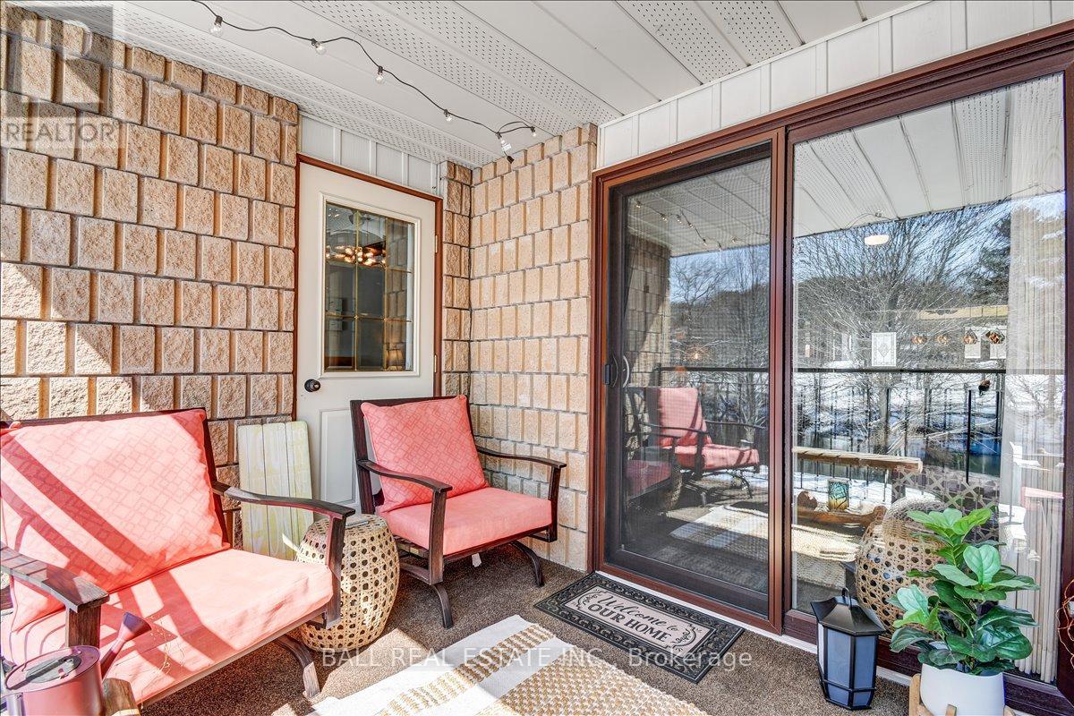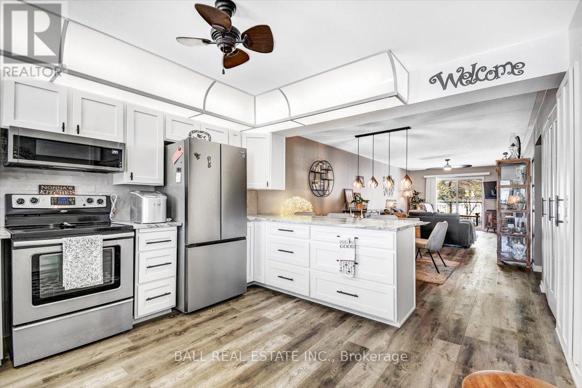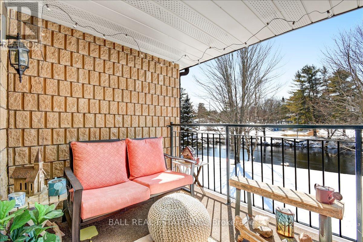 Welcome to Unit 203 at 16 Alice Street-an exceptional waterfront condo in the heart of Bancroft, offering low-maintenance living with stunning river views. Perfectly located within walking distance to all local amenities, this second-level unit combines convenience, comfort, and style. Step inside to a bright, open concept layout designed for modern living. The beautifully updated kitchen features granite countertops, high-end stainless steel appliances, and sleek finishes, flowing seamlessly into the spacious living and dining area. From here, step out onto your private balcony and enjoy peaceful views overlooking the river-an ideal spot for morning coffee or evening relaxation. The large primary bedroom is a true retreat with a private walkout to the balcony, complete with a gorgeous renovated ensuite featuring a custom shower, tons of storage, and an oversized walk-in closet. A second bedroom provides space for guests or a home office, along with an additional full four-piece bathroom. Both bathrooms have tile floors and in floor heat. In-unit laundry adds to the everyday convenience. This condo has been fully renovated throughout with updated flooring, top-of-the-line finishes, and modern fixtures, offering a move-in ready experience. Condo fees of $461 per month cover lawn care, snow removal, water, sewer, and building maintenance-ensuring worry-free living year-round. Additional features include high-speed internet availability, garbage and recycling pickup, a private covered parking space, and extra guest parking. Whether you're looking to downsize, invest, or enjoy easy waterfront living, this beautifully finished condo is a fantastic opportunity in a prime Bancroft location. (id:61423)