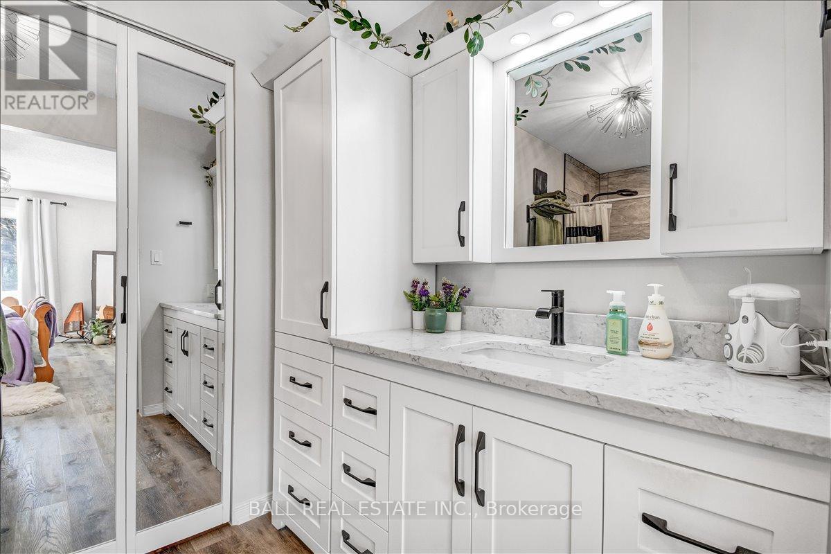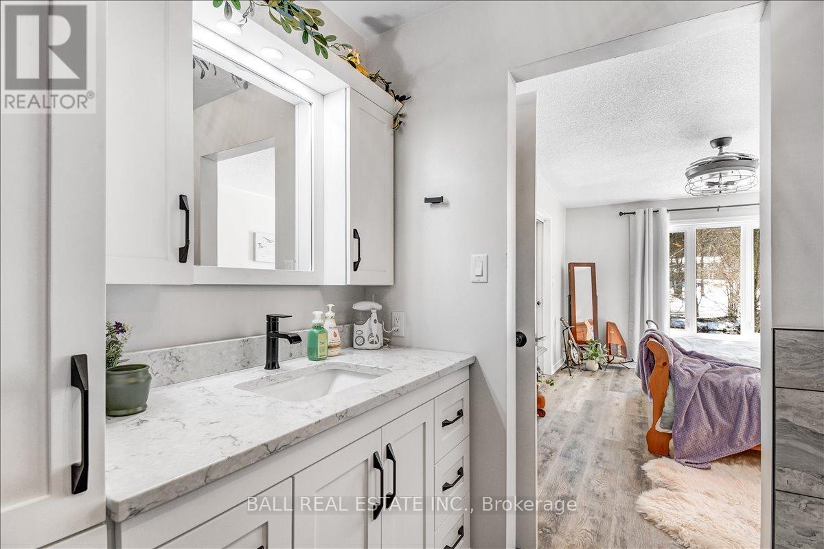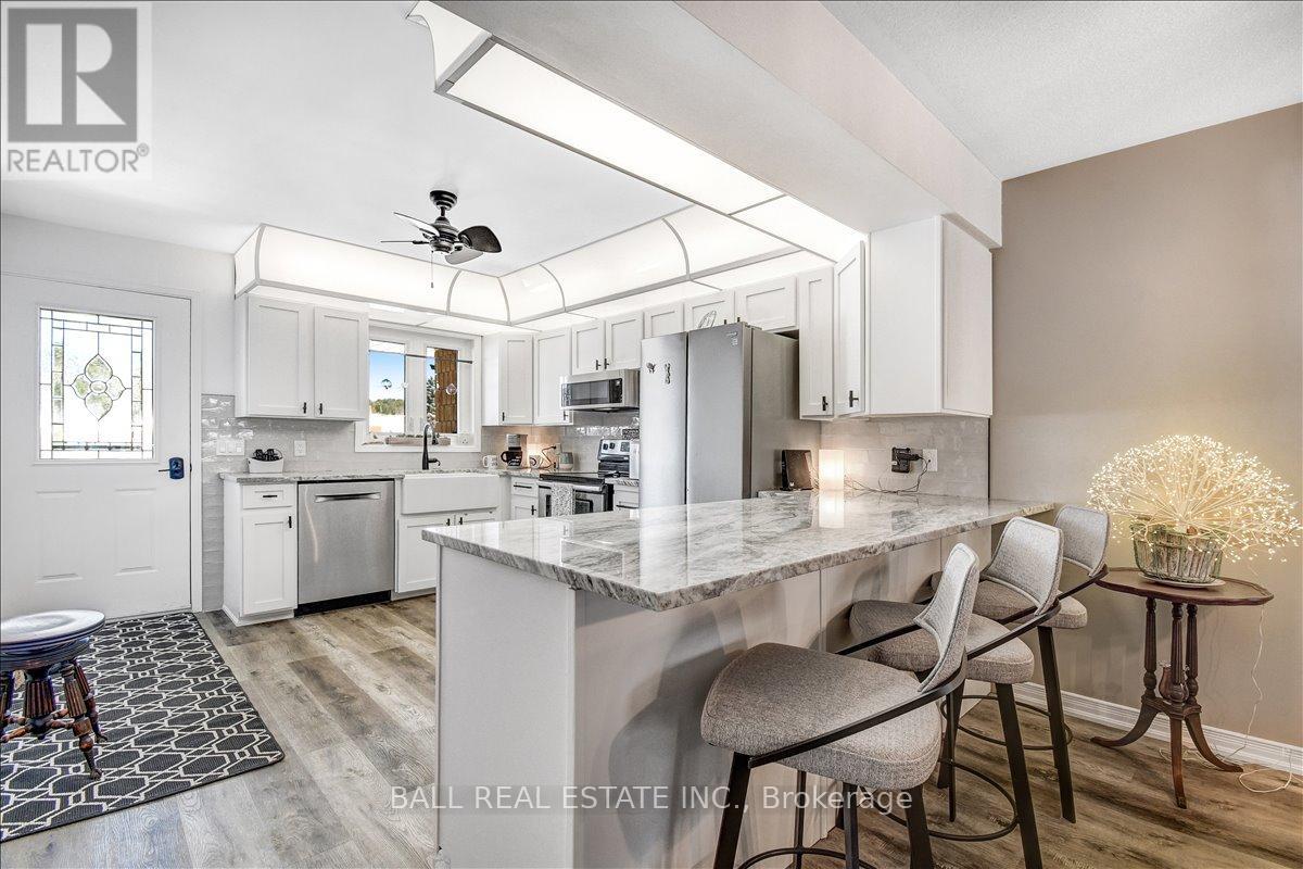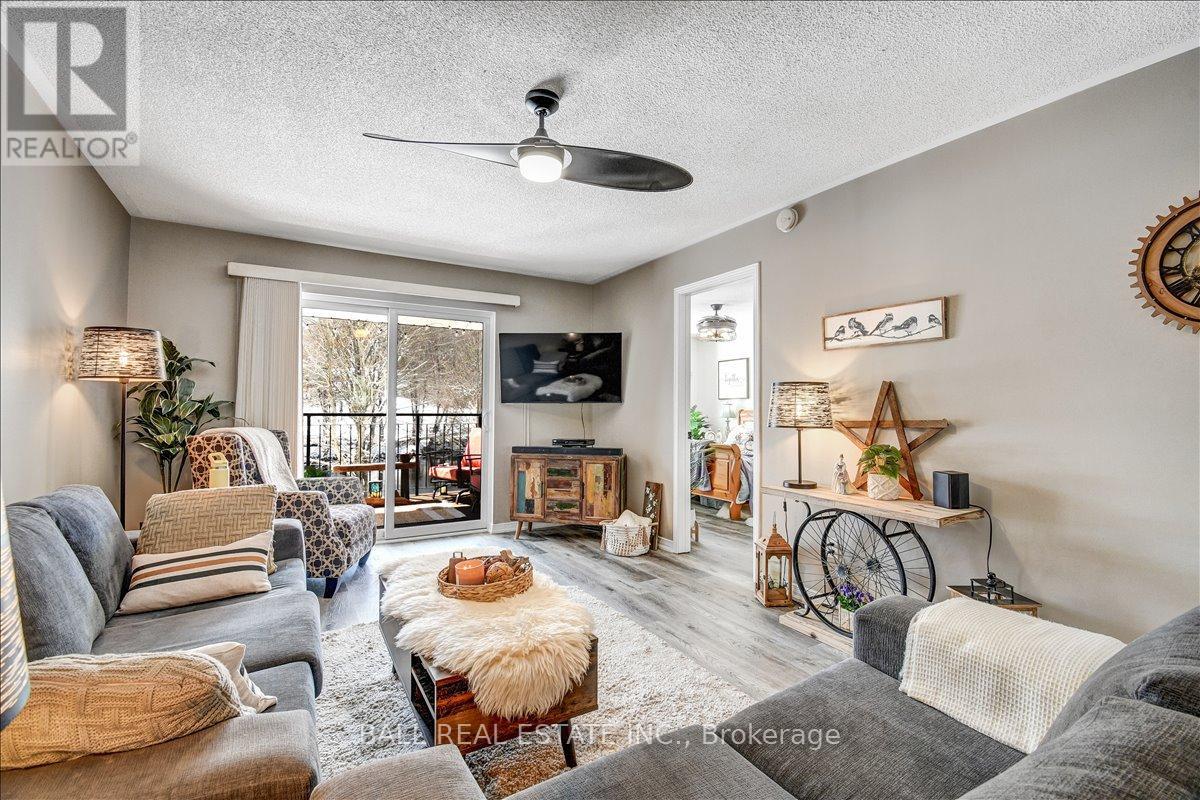 Welcome to Unit 203 at 16 Alice Street-an exceptional waterfront condo in the heart of Bancroft, offering low-maintenance living with stunning river views. Perfectly located within walking distance to all local amenities, this second-level unit combines convenience, comfort, and style. Step inside to a bright, open concept layout designed for modern living. The beautifully updated kitchen features granite countertops, high-end stainless steel appliances, and sleek finishes, flowing seamlessly into the spacious living and dining area. From here, step out onto your private balcony and enjoy peaceful views overlooking the river-an ideal spot for morning coffee or evening relaxation. The large primary bedroom is a true retreat with a private walkout to the balcony, complete with a gorgeous renovated ensuite featuring a custom shower, tons of storage, and an oversized walk-in closet. A second bedroom provides space for guests or a home office, along with an additional full four-piece bathroom. Both bathrooms have tile floors and in floor heat. In-unit laundry adds to the everyday convenience. This condo has been fully renovated throughout with updated flooring, top-of-the-line finishes, and modern fixtures, offering a move-in ready experience. Condo fees of $461 per month cover lawn care, snow removal, water, sewer, and building maintenance-ensuring worry-free living year-round. Additional features include high-speed internet availability, garbage and recycling pickup, a private covered parking space, and extra guest parking. Whether you're looking to downsize, invest, or enjoy easy waterfront living, this beautifully finished condo is a fantastic opportunity in a prime Bancroft location. (id:61423)