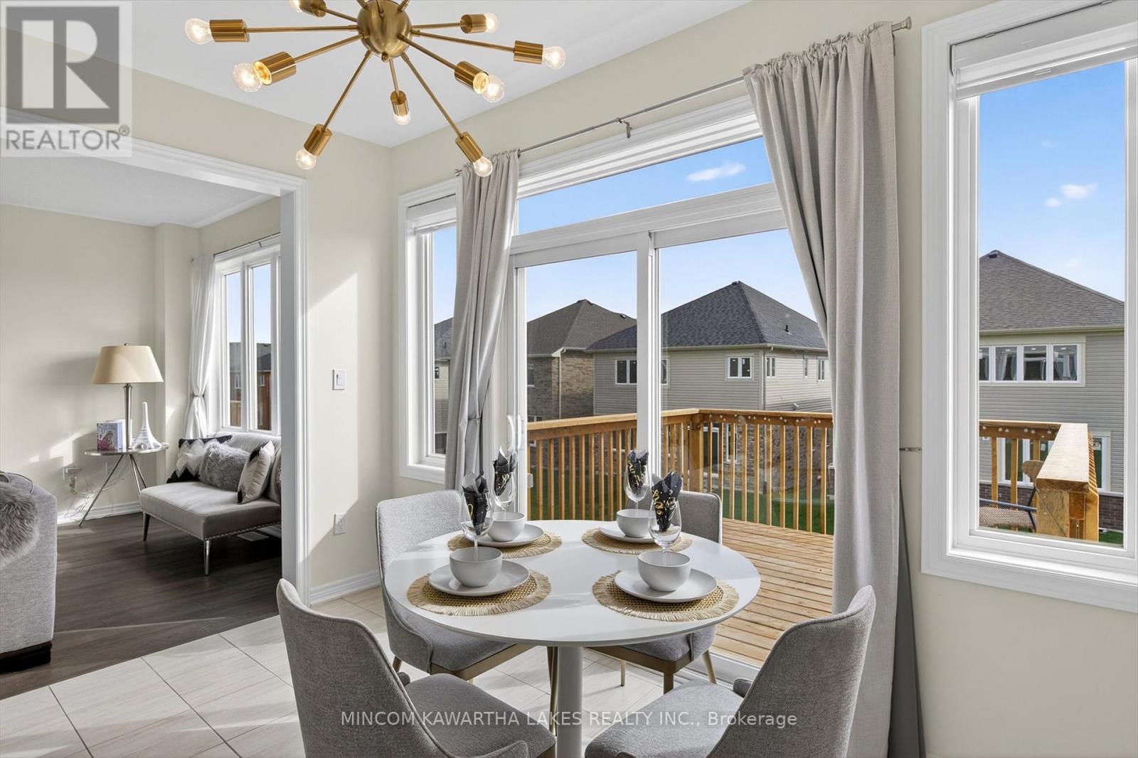 Welcome to 203 O'Neil Street - The Warrington Model Built in 2024, this stunning 4-bedroom, 4-bathroom home offers 2,490 sq. ft. of thoughtfully designed living space. Step inside to discover 9-foot coffered ceilings on the main floor that create a spacious and elegant atmosphere. Main floor offers a spacious main floor family room with gas fireplace. Large bright eat-in kitchen with lots of cupboards and quartz countertops. Fully equipped with brand new stainless appliances. All builder grade lighting has been upgraded with more modern and stylish options. Other main floor features include: A formal dining room, 2nd main floor living space, 2pc bath, spacious foyer and direct access from your double attached garage. This layout is perfect for family living and entertaining. Upgraded solid wood staircase leads to upstairs. The primary bedroom serves as a serene retreat featuring a large 4-piece ensuite and a walk-in closet. The second bedroom also includes its own 4-piece ensuite, ideal for guests or family members seeking added privacy. The third and fourth bedroom share the 3rd - 4 piece bathroom. 2nd floor laundry provides a necessary convenience. Enjoy outdoor living on the 10' x 10' deck overlooking your backyard, or take advantage of the unfinished walk-out basement, offering endless possibilities for future customization. The private double-wide driveway will be paved soon, adding to the home's curb appeal and convenience. Situated in a desirable neighborhood, this property is close to shopping, parks, and scenic trails. offering the perfect balance of comfort and lifestyle. Don't miss your chance to own this beautiful modern home - book your showing today! (id:61423)
