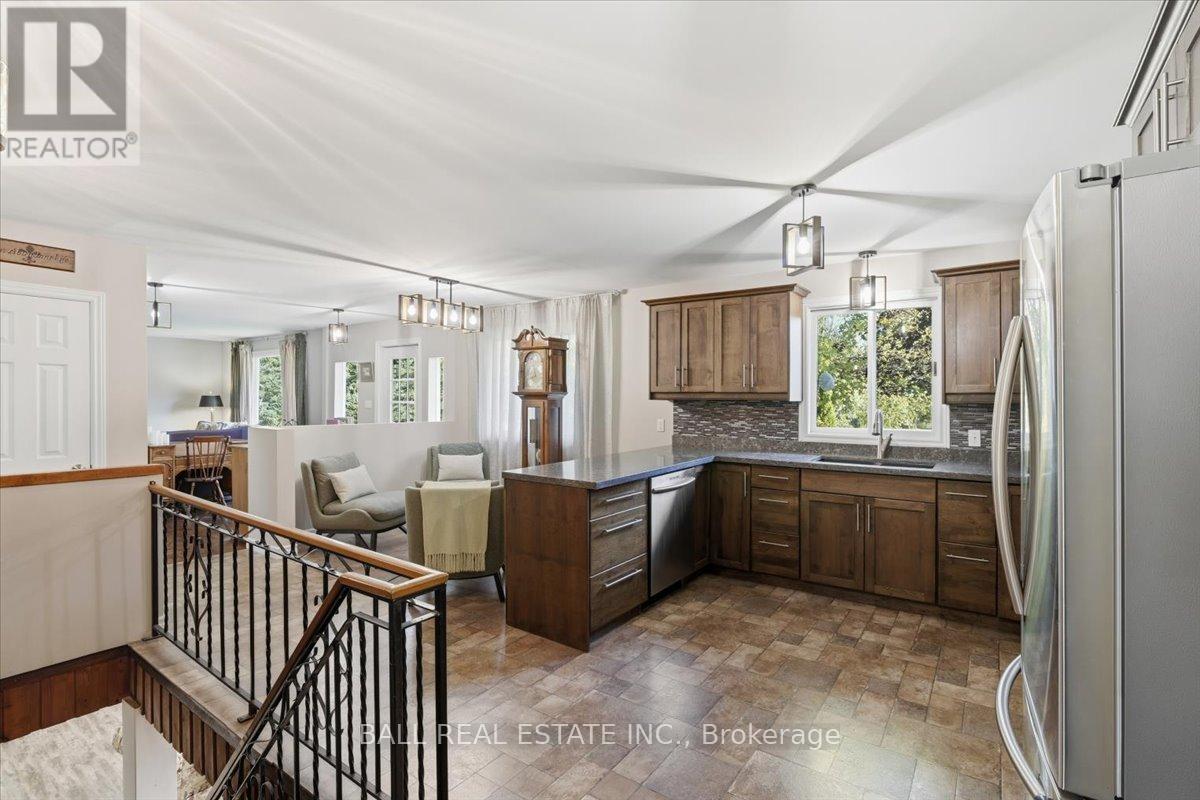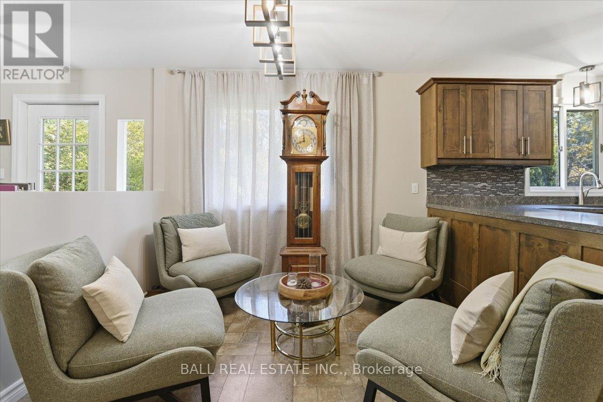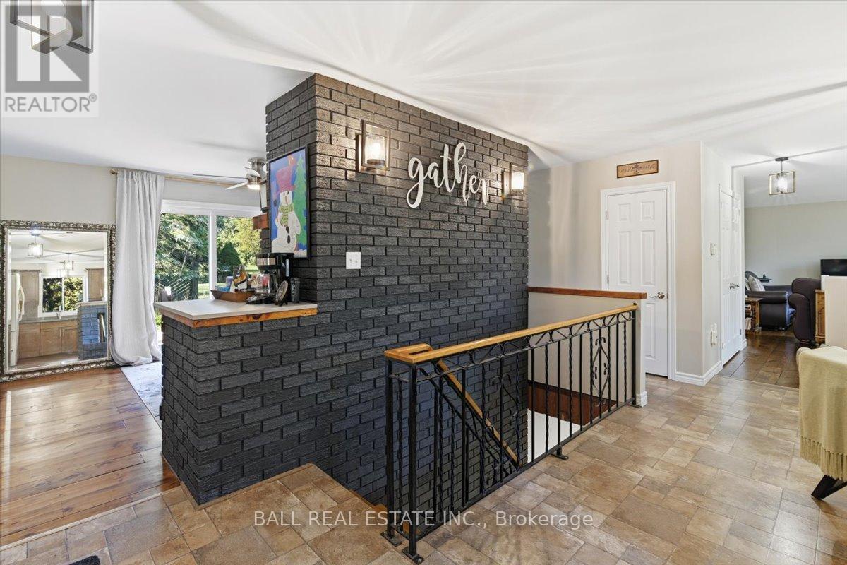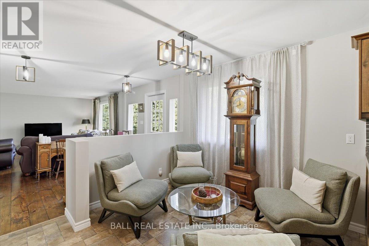 Nestled among 2.5 acres of mature treed lot, this beautifully updated 3+1 bedroom, 2-bath country home offers the perfect blend of privacy and modern comfort. With just about 1,550 square feet of living space on the main floor, this bungalow style home features a bright open layout, a large finished basement, and a walk-out to the backyard, perfect for enjoying the natural surroundings. The newly renovated bathrooms add a fresh, contemporary touch, while the primary bedroom includes its own private ensuite for added convenience. An attached 2-car garage provides easy access and extra storage. Outdoors, a spacious 25x50 workshop is ideal for hobbyists, tradespeople, or anyone needing extra space for projects or equipment. Whether you're seeking peace and quiet or room to grow, this property offers endless possibilities in a stunning country setting with all of the amenities including local golf and public transit. (id:61423)