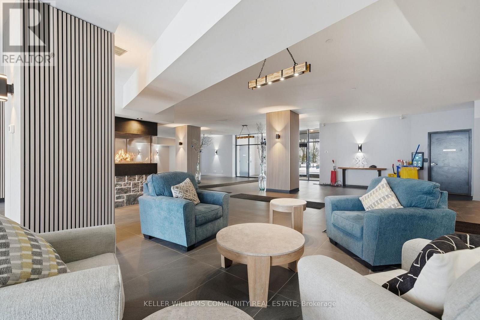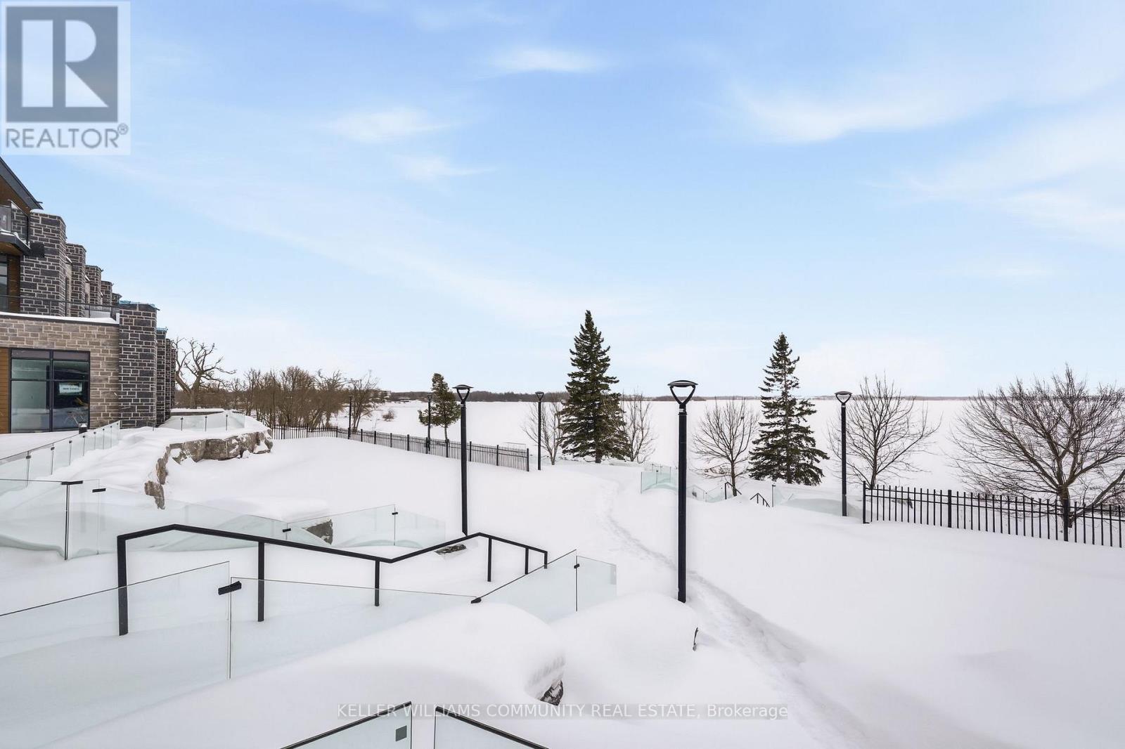 Welcome to Unit 206 at The Moorings on Cameron Lake, where refined condo living meets the calm and beauty of waterfront life. This spacious 2-bedroom, 2-bathroom suite offers approximately 1,063 sq ft of thoughtfully designed interior space, plus a stunning 39-foot covered balcony providing an additional 250 sq ft of living space, all overlooking Cameron Lake. Perfect for relaxing, entertaining, or enjoying unforgettable sunrises over the water. Inside, the suite features 9-foot ceilings, expansive windows, and quality finishes throughout, creating a bright and welcoming atmosphere. The open-concept living and dining area flows seamlessly into the modern kitchen, ideal for both everyday living and hosting guests. The primary bedroom includes a private ensuite and generous closet space, while the second bedroom and full bathroom offer flexibility for guests, a home office, or comfortable everyday living. In-suite laundry adds to the convenience of this well-designed home. Residents of The Moorings enjoy exceptional resort-style amenities designed to support both relaxation and an active lifestyle. The third-floor owners' lounge features breathtaking lake views and includes a full kitchen, dining areas, cozy fireside seating, and a private theatre room, perfect for entertaining. The fitness centre is equipped with cardio and weight machines change rooms, a dedicated yoga and pilates studio, and a cedar sauna. Additional conveniences include a pet cleaning station, ideal for dog owners after lakeside walks or outdoor adventures. Outdoors, residents can enjoy a heated pool and spa, tennis and pickleball courts, a landscaped lakeside courtyard, and waterfront docking with swimming and lounging platforms. Located on the shores of Cameron lake in the heart of Fenelon Falls, this condo offers the perfect balance of nature and walkable small-town charm! (id:61423)