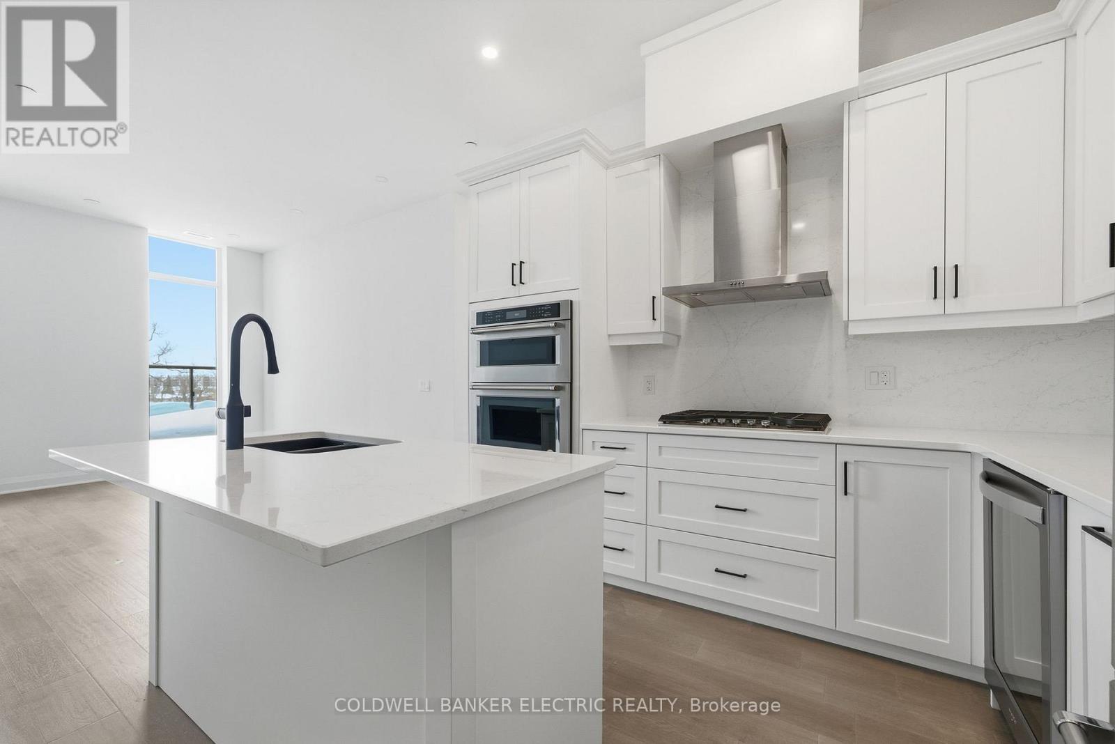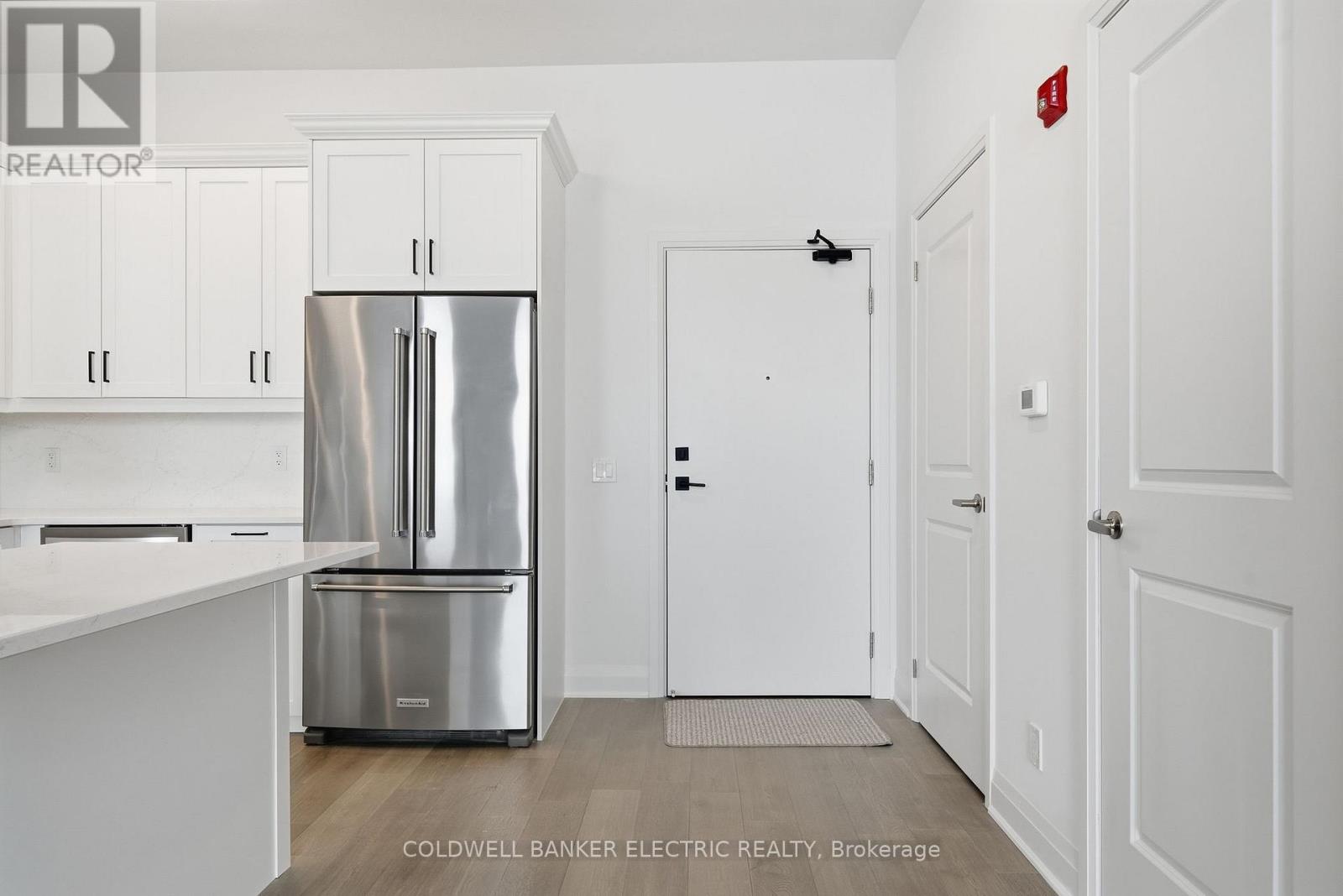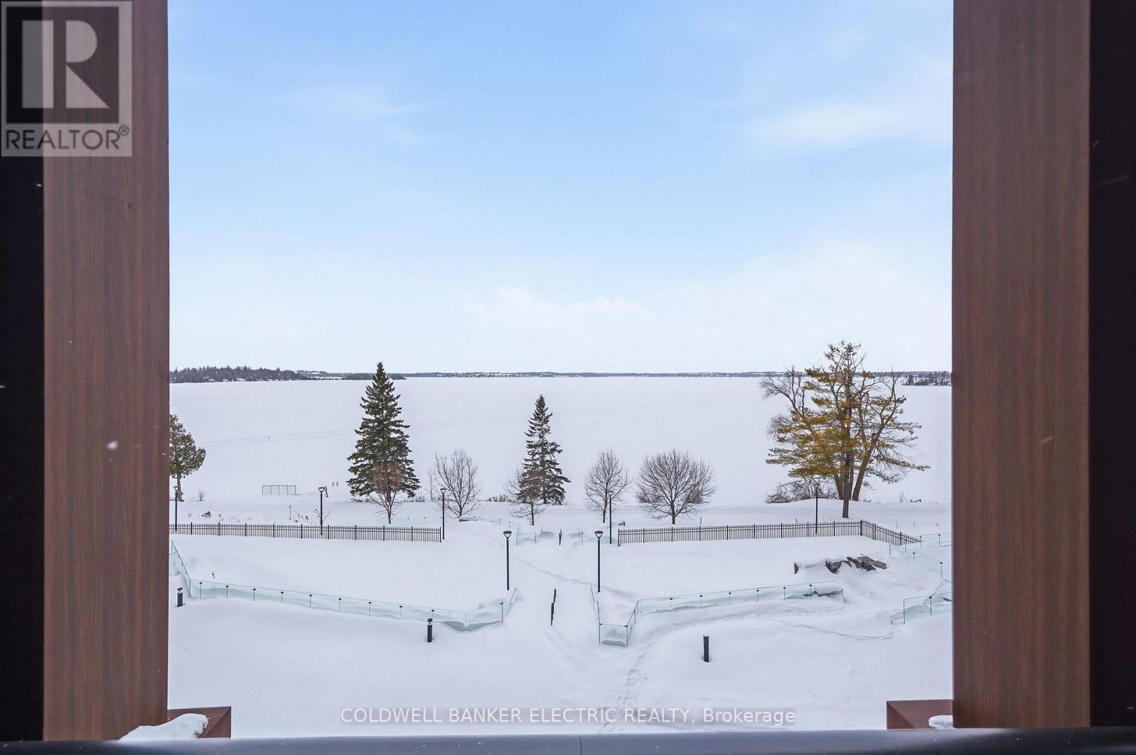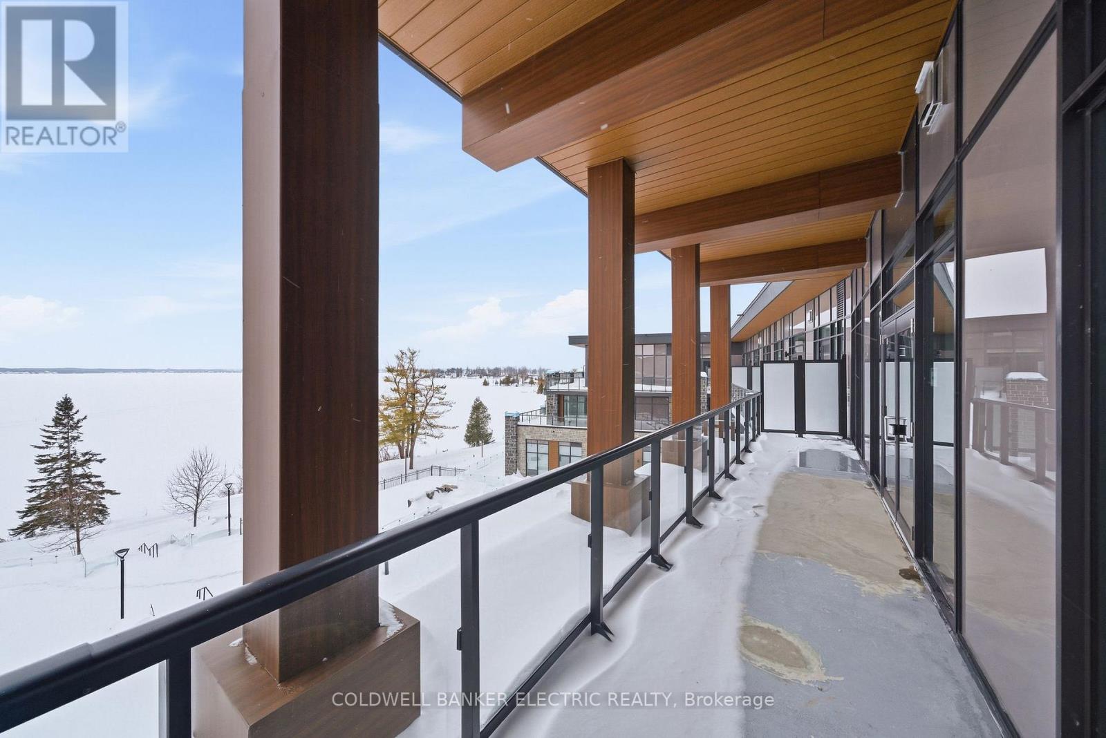 Welcome to Unit 206 at The Moorings on Cameron Lake, where refined condo living meets the calm and beauty of waterfront life. This spacious 2-bedroom, 2-bathroom suite offers approximately 1,063 sq ft of thoughtfully designed interior space, plus a stunning 39-foot covered balcony providing an additional 250 sq ft of living space, all overlooking Cameron Lake. Perfect for relaxing, entertaining, or enjoying unforgettable sunrises over the water. Inside, the suite features 9-foot ceilings, expansive windows, and quality finishes throughout, creating a bright and welcoming atmosphere. The open-concept living and dining area flows seamlessly into the modern kitchen, ideal for both everyday living and hosting guests. The primary bedroom includes a private ensuite and generous closet space, while the second bedroom and full bathroom offer flexibility for guests, a home office, or comfortable everyday living. In-suite laundry adds to the convenience of this well-designed home. Residents of The Moorings enjoy exceptional resort-style amenities designed to support both relaxation and an active lifestyle. The third-floor owners' lounge features breathtaking lake views and includes a full kitchen, dining areas, cozy fireside seating, and a private theatre room, perfect for entertaining. The fitness centre is equipped with cardio and weight machines change rooms, a dedicated yoga and Pilates studio, and a cedar sauna. Additional conveniences include a pet cleaning station, ideal for dog owners after lakeside walks or outdoor adventures. Outdoors, residents can enjoy a heated pool and spa, tennis and pickleball courts, a landscaped lakeside courtyard, and waterfront docking with swimming and lounging platforms. Located on the shores of Cameron lake in the heart of Fenelon Falls, this condo offers the perfect balance of nature and walkable small-town charm! (id:61423)