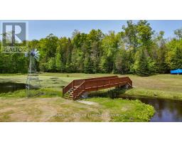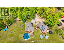 Welcome to your private 20-acre rural retreat where nature, comfort, and self-sufficiency harmoniously meet. This one-of-a-kind, OFF-GRID oasis is powered by solar energy and offers everything you need for a peaceful, sustainable lifestyle. The main house features a bright and airy open concept layout with two spacious bedrooms and a luxurious 4-piece bath, complete with a glass shower and a separate soaker tub. The light filled dining area flows seamlessly into the large kitchen, perfect for home-cooked meals and entertaining. Cozy up in the inviting living room with a wood stove, and enjoy added convenience with a well-equipped mudroom that includes a washer and dryer. An oversized two-car garage includes a full upper-level living space with two additional bedrooms, a 2-piece bath, wet bar, wood stove, and a generous rec room with pool table ideal for guests or extended family. The property also features a heated Bunkie, perfect as a studio, guest space, or creative escape. Outdoor amenities include an above-ground pool, a tranquil pond with a charming footbridge, and a bonus sugar shack ready for maple syrup production from your own trees. Surrounded by mature forest, this hobbyists paradise is perfect for beekeeping, gardening, and embracing the rhythms of rural living. Whether you're seeking a serene family getaway, a homesteading haven, or a retreat for recreation and relaxation, this property is the ultimate escape. (id:61423)