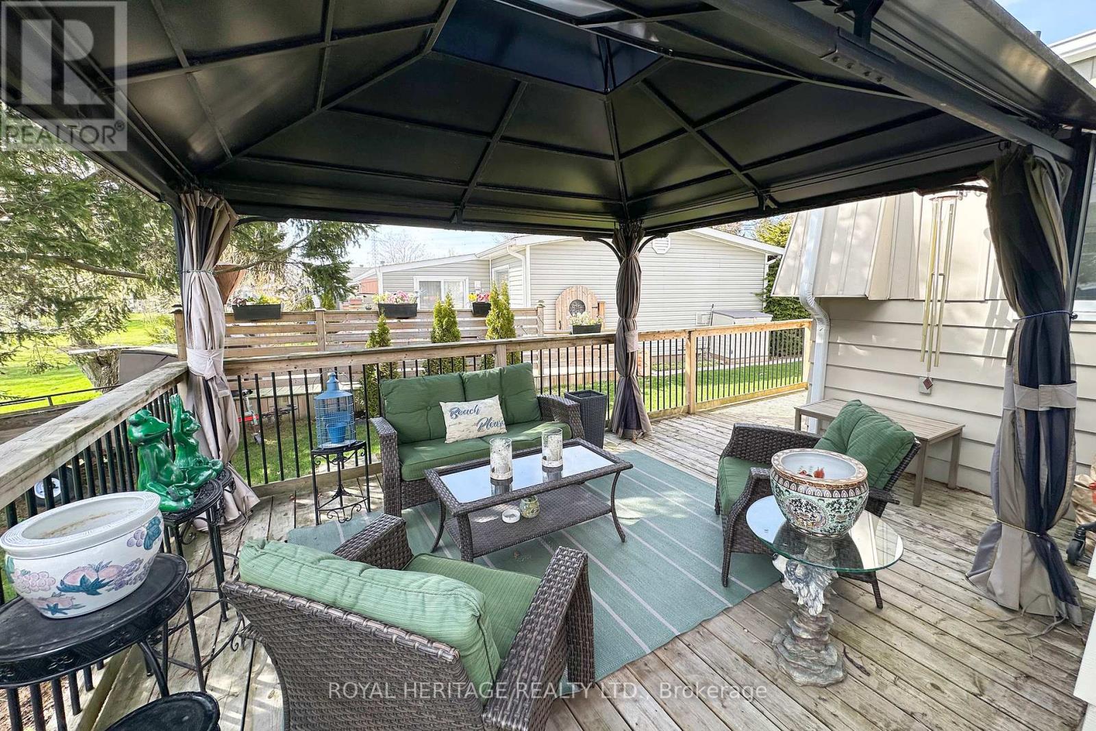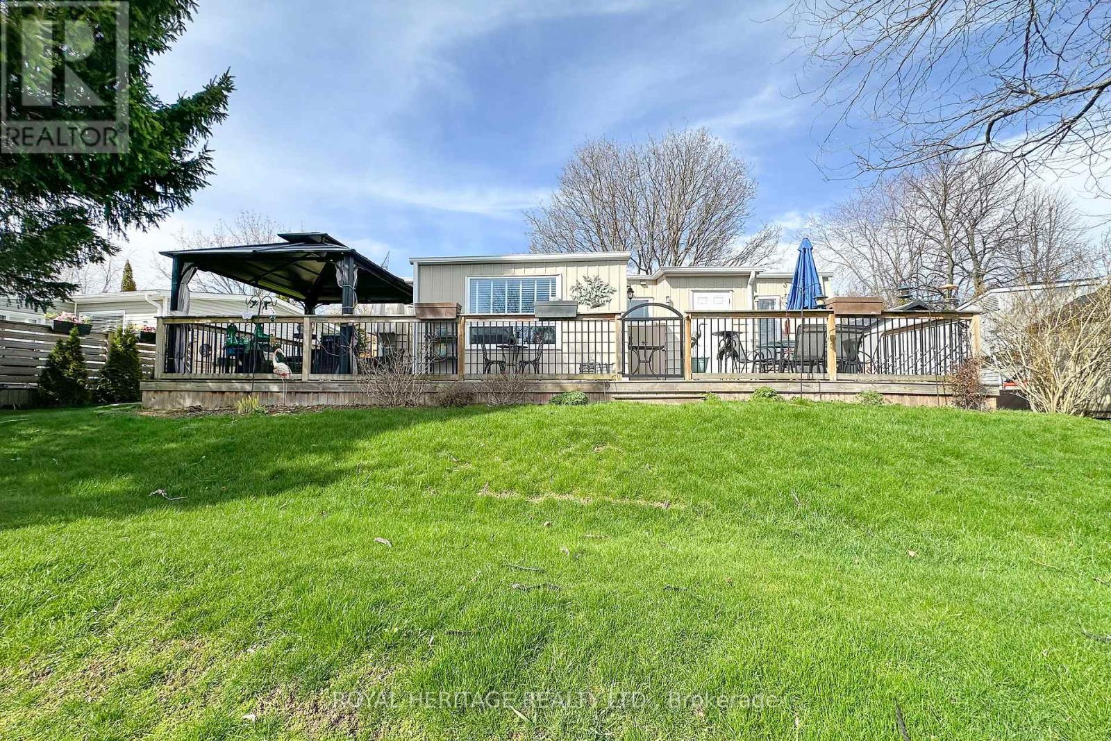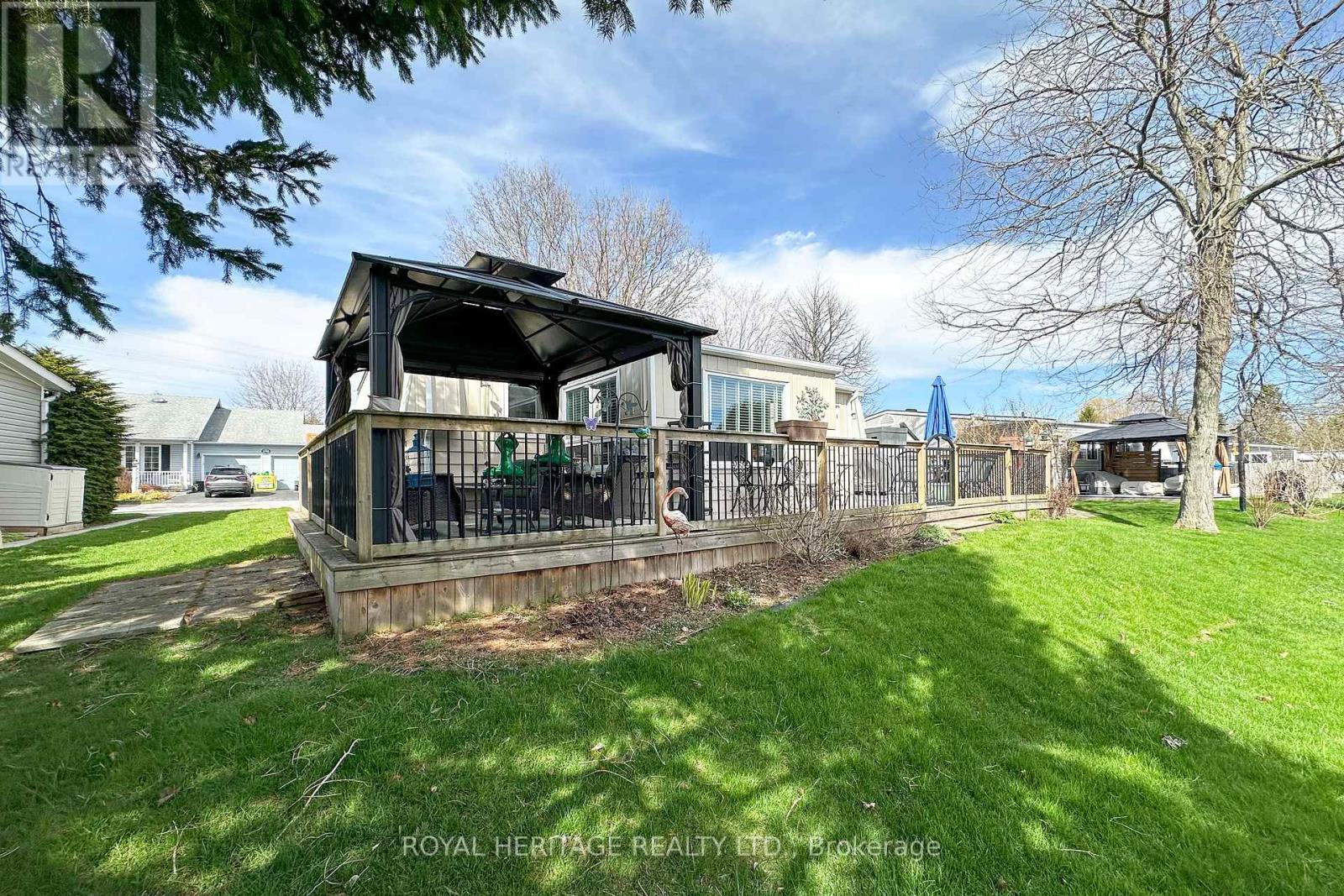 Welcome to 209 Wilmot Trail- A charming bungalow nestled in the highly sought-after adult lifestyle community of Wilmot Creek, just steps from the shores of Lake Ontario. This beautifully maintained 2-bdrm, 1-bath home is warm and inviting and ready for you to move right in. The home firsts greets you with an interlock patio and walkway. Once through the front doors, you'll notice the California knock down ceiling treatments, pot lights and crown molding. Laminate throughout means carpet free. Kitchen complete with Stainless Steel Appliances, ceramic backsplash, pot lights, and side door access to the deck. A bonus family room allows for extra space and provides a walkout to a lovely spacious deck complete with a curtained gazebo. The perfect place to cozy up with your morning coffee, or evening glass of wine. Perennial gardens complete the back yard. Extras include large ceramic walk in shower, Shed and 2 storage bins, Golf cart pad, hard line for a gas bbq. Home in on Leased Land - Monthly Maintenance Fee Includes the use of the clubhouse and all facilities including 9 Hole Golf Course, 2 Salt Water Heated Pools, Gym, Sauna, Hot Tub, Billiard Tables, Pickleball /Tennis Courts, Waterfront walking trails, and much more. Embrace the lifestyle, what are you waiting for? (id:61423)