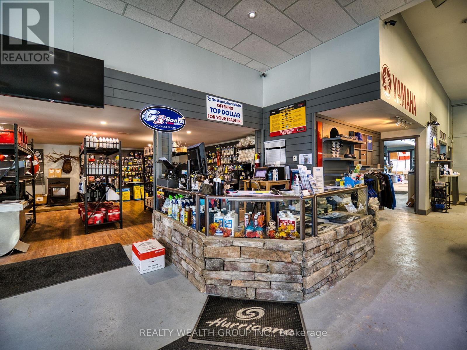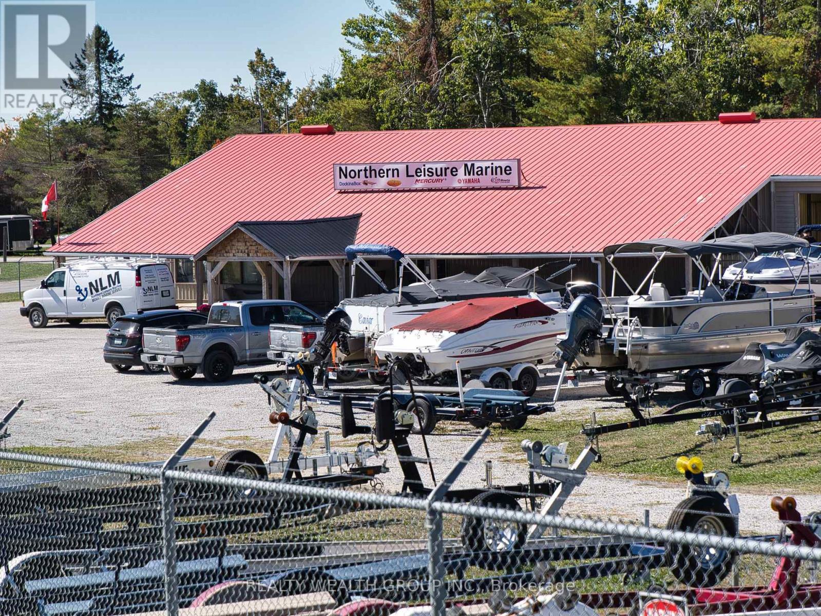 Exceptional opportunity to acquire both the property and thriving business of Northern Leisure Marine, a full-service dry marine dealership located in the heart of Bobcaygeon in Kawartha Lakes. Perfectly positioned to serve the growing recreational boating and cottage market, this turnkey operation combines strong brand partnerships, established client base, and well-maintained facilities. Top manufacturers including Yamaha, G3 Boats, Mercury, Hurricane, Alumarine, and Suncather, offering new and used boats, motors, trailers, and recreational equipment. The business provides complete service solutions repairs, maintenance, winterization, storage, and parts supported by marine technicians and a loyal regional customer network. Its reputation for quality service, fast turnaround, and personal relationships with cottage owners has created consistent seasonal demand and repeat business year after year. This property features a bright, modern showroom, dedicated service bays, storage facilities, and secure fenced yard for winter boat storage. The building and grounds are purpose-built for marine operations, providing a smooth transition for the next owner. Ample frontage and signage offer excellent visibility and easy access for both customers and delivery vehicles. Ideal for an owner-operator, family business, or investor seeking a profitable, lifestyle-based enterprise with land ownership included. With boating and cottage activity at an all-time high, the business is poised for continued growth through expanded sales, rentals, or additional brands. (id:61423)