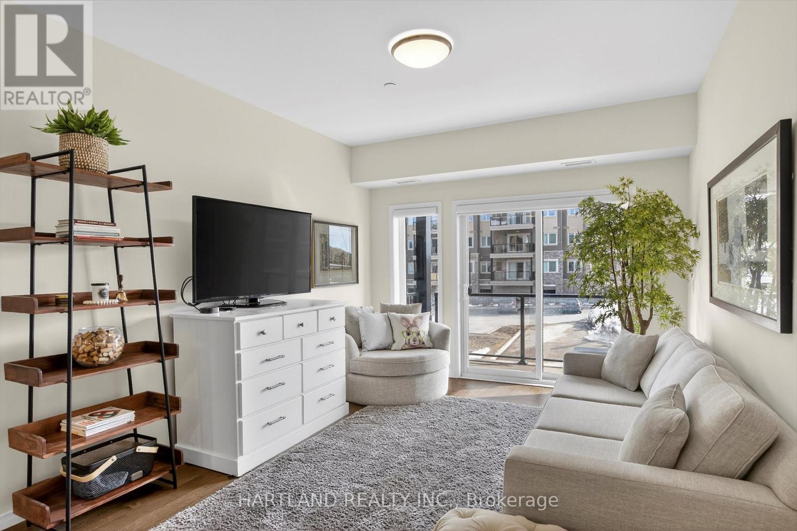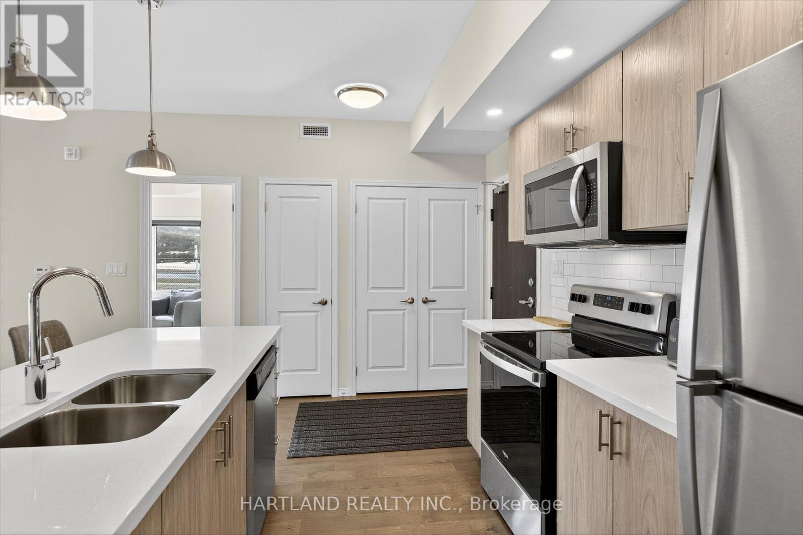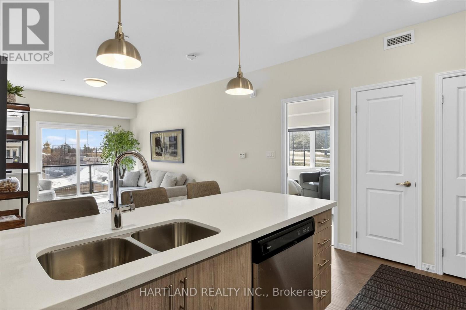 $416.60 MonthlyBright CORNER unit modern design with 9ft high ceilings. Open concept floor plan, Upgraded kitchen with quartz counter tops and breakfast bar, overlooks the spacious Living/Dining room which flows out to the spacious balcony. Perfect for entertaining while cooking on the BBQ. Large bedrooms, Primary bedroom features large walk-in closet and 4 pc en-suite, Ideal Split kitchen with quartz counter tops and breakfast bar, overlooks the spacious Living/Dining room bedroom floor plan, laundry/utility room offers room for additional storage. Included Gas furnace, Central A/C and bell fibe internet and it also includes one exclusive parking space with a Low maintenance condo fees. Located in the prestige Jackson Creek Meadows neighborhood very close to downtown Peterborough and Hospital, just a short walk to Jackson Park great for very close to downtown Peterborough and Hospital, just a short walk to Jackson Park great for walks or hiking, easy access to Hwy 115. View this Property and you will love it! (id:61423)