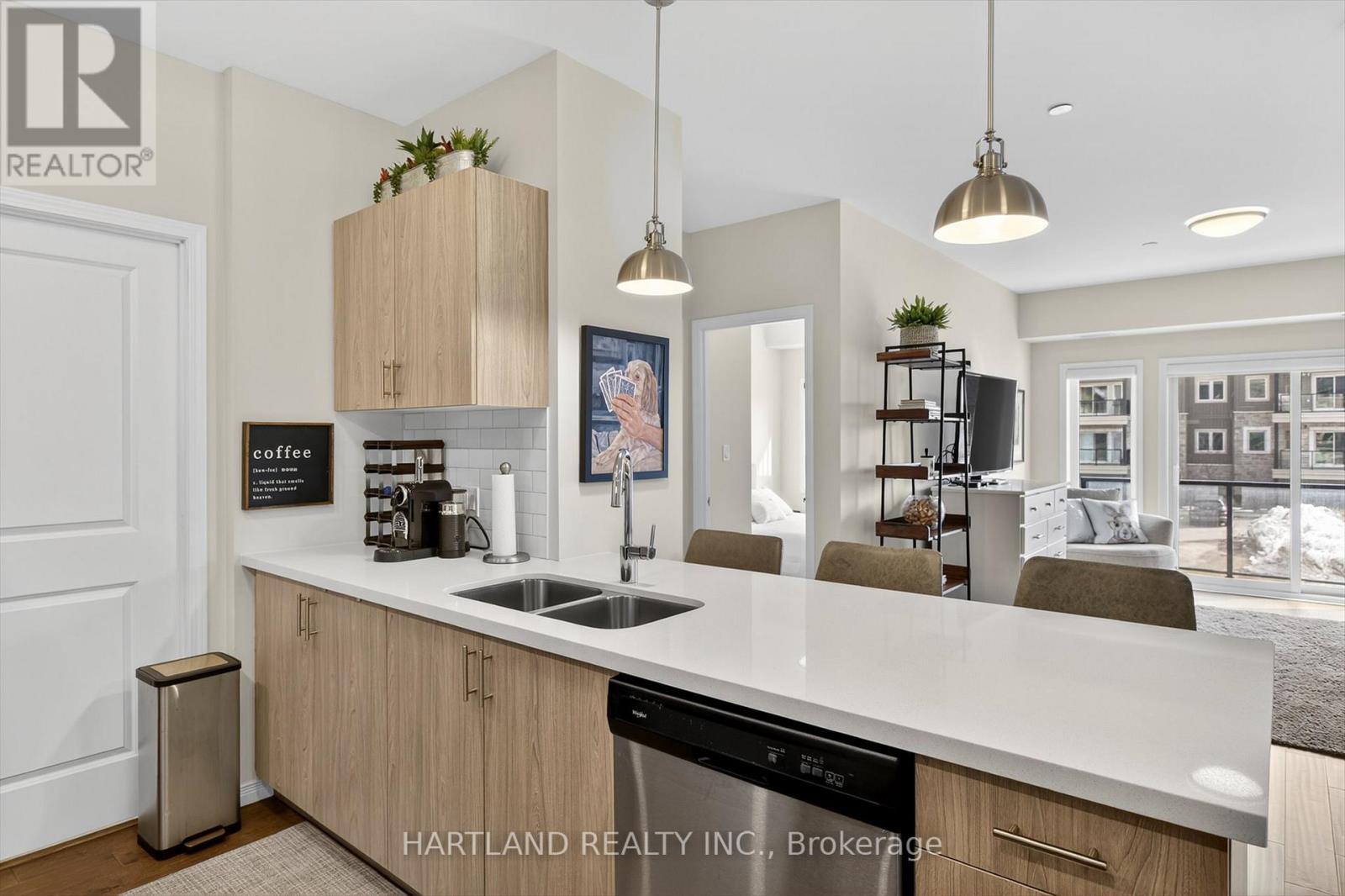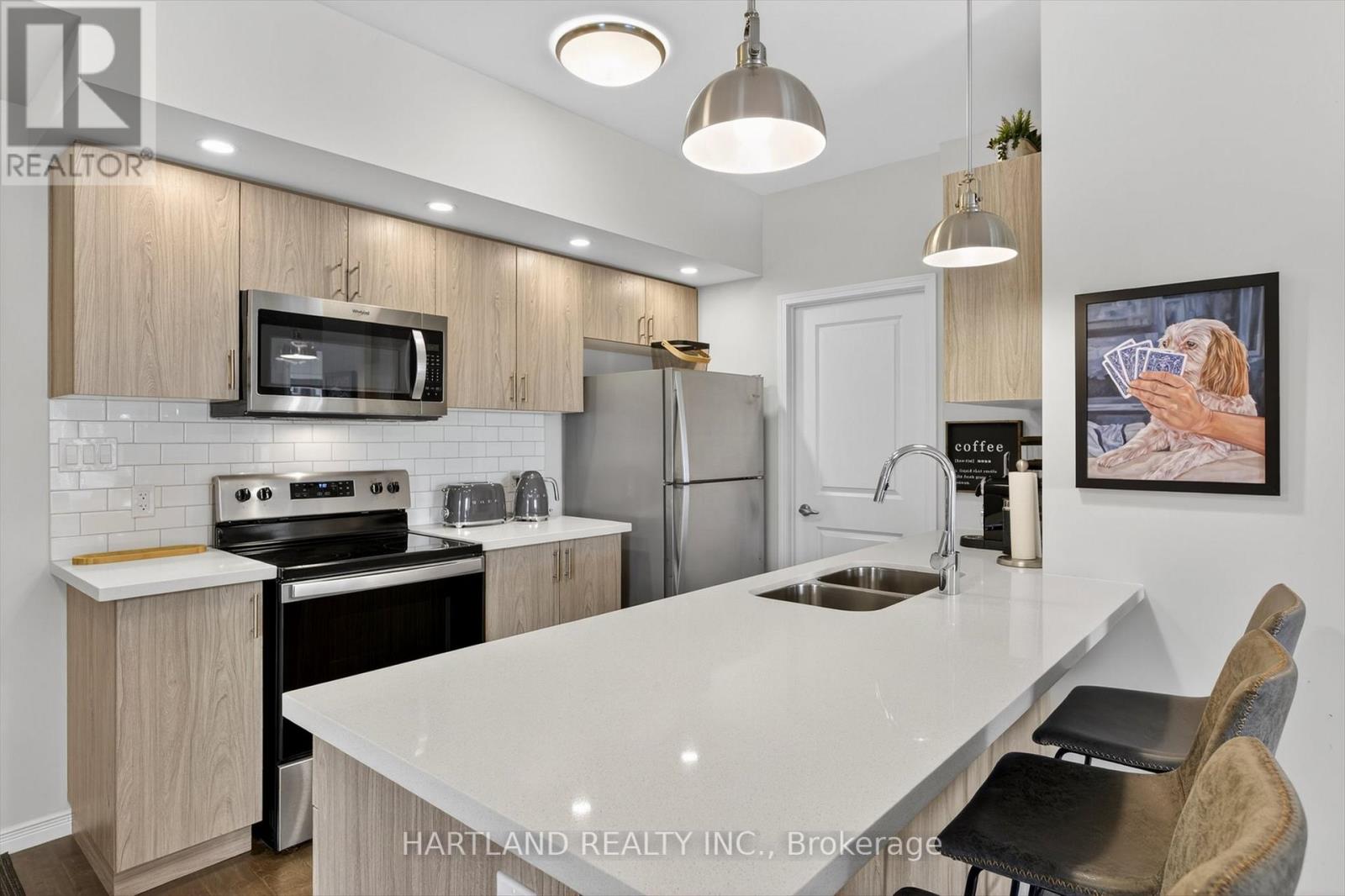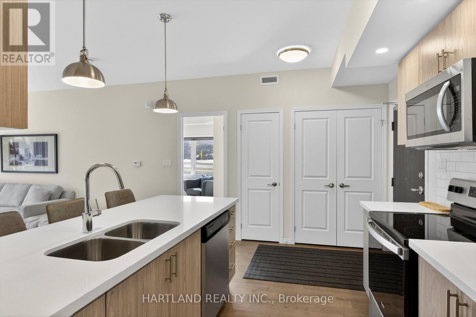 $416.60 MonthlyBright CORNER unit modern design with 9ft high ceilings. Open concept floor plan, Upgraded kitchen with quartz counter tops and breakfast bar, overlooks the spacious Living/Dining room which flows out to the spacious balcony. Perfect for entertaining while cooking on the BBQ. Large bedrooms, Primary bedroom features large walk-in closet and 4 pc en-suite, Ideal Split kitchen with quartz counter tops and breakfast bar, overlooks the spacious Living/Dining room bedroom floor plan, laundry/utility room offers room for additional storage. Included Gas furnace, Central A/C and bell fibe internet and it also includes one exclusive parking space with a Low maintenance condo fees. Located in the prestige Jackson Creek Meadows neighborhood very close to downtown Peterborough and Hospital, just a short walk to Jackson Park great for very close to downtown Peterborough and Hospital, just a short walk to Jackson Park great for walks or hiking, easy access to Hwy 115. View this Property and you will love it! (id:61423)