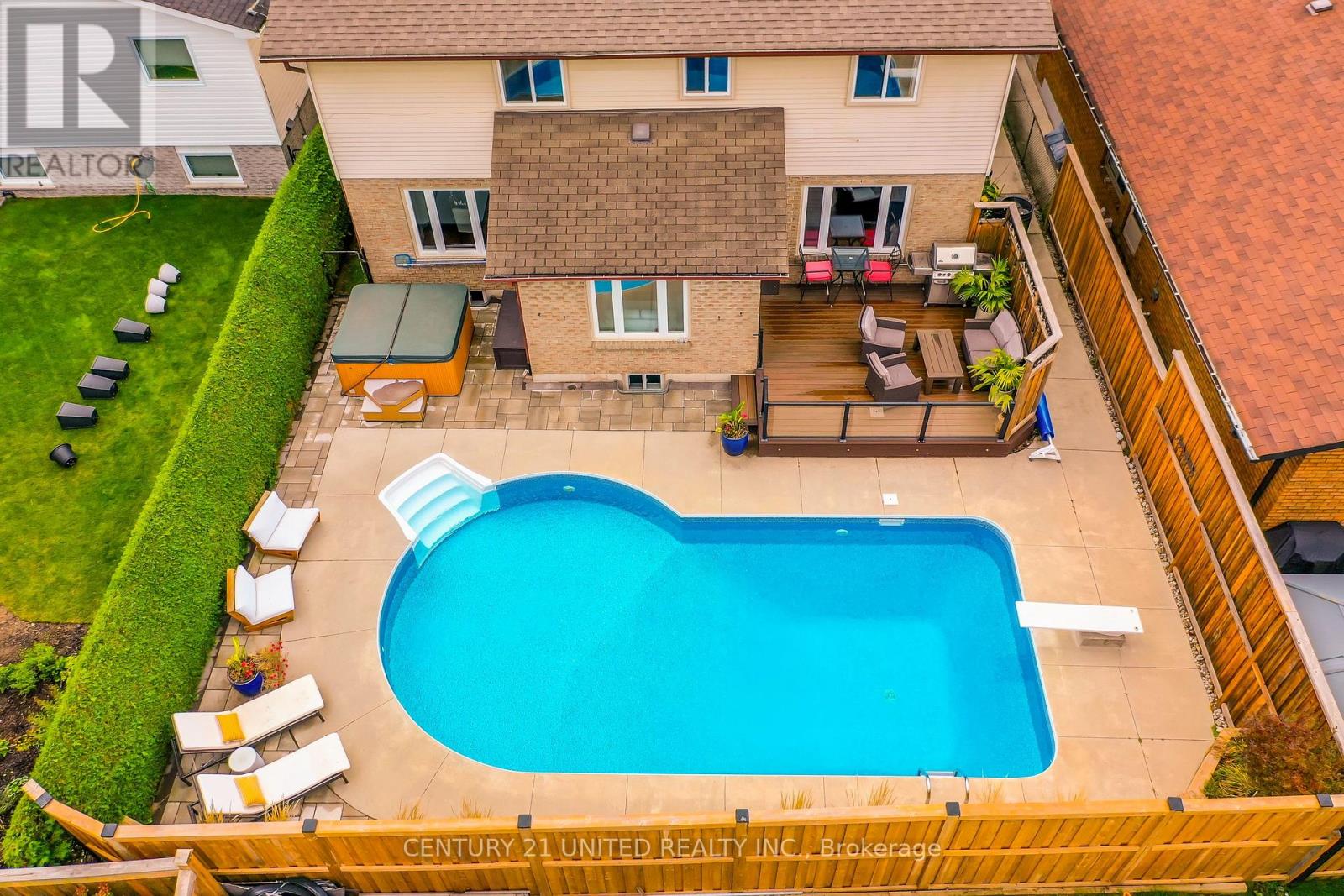 Located in the highly desirable University Heights neighbourhood, this beautifully maintained 4 bedroom, 4 bathroom home offers the perfect balance of space, comfort, and exceptional outdoor living. Just minutes from Trent University, the Peterborough Zoo, parks, trails, and excellent schools, this location is ideal for families looking to enjoy one of the city's most sought-after north-end communities. Designed with entertaining in mind, the open concept main floor seamlessly connects the living room, dining room, and family room complete with gas fireplace to an impressive kitchen centered around a large island. From the kitchen, enjoy views of the beautifully landscaped backyard oasis and step outside to your private retreat featuring an inground pool, hot tub, and deck, the ultimate setting for summer gatherings and relaxed evenings with family and friends. The main level also features an updated laundry room, convenient powder room, and direct access from the double car garage. Upstairs you'll find four spacious bedrooms, including a generous primary suite complete with a walk-in closet and private ensuite. A second full bathroom comfortably serves the remaining three bedrooms. The fully finished basement is ideal for growing families, teens, or extended family living. A large den with modern gas fireplace and entertaining bar creates the perfect hangout space. Two additional rooms offer flexibility for guest sleeping, a home office, or gym, while a full bathroom across from the larger room creates excellent potential for a teen or in-law retreat. Storage space and a cold cellar complete the lower level. This home has been pre-inspected for peace of mind. Finished from top to bottom and completely move-in ready, this exceptional home and backyard set the scene for making unforgettable summer memories. (id:61423)
