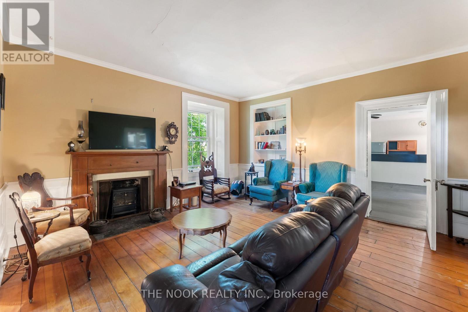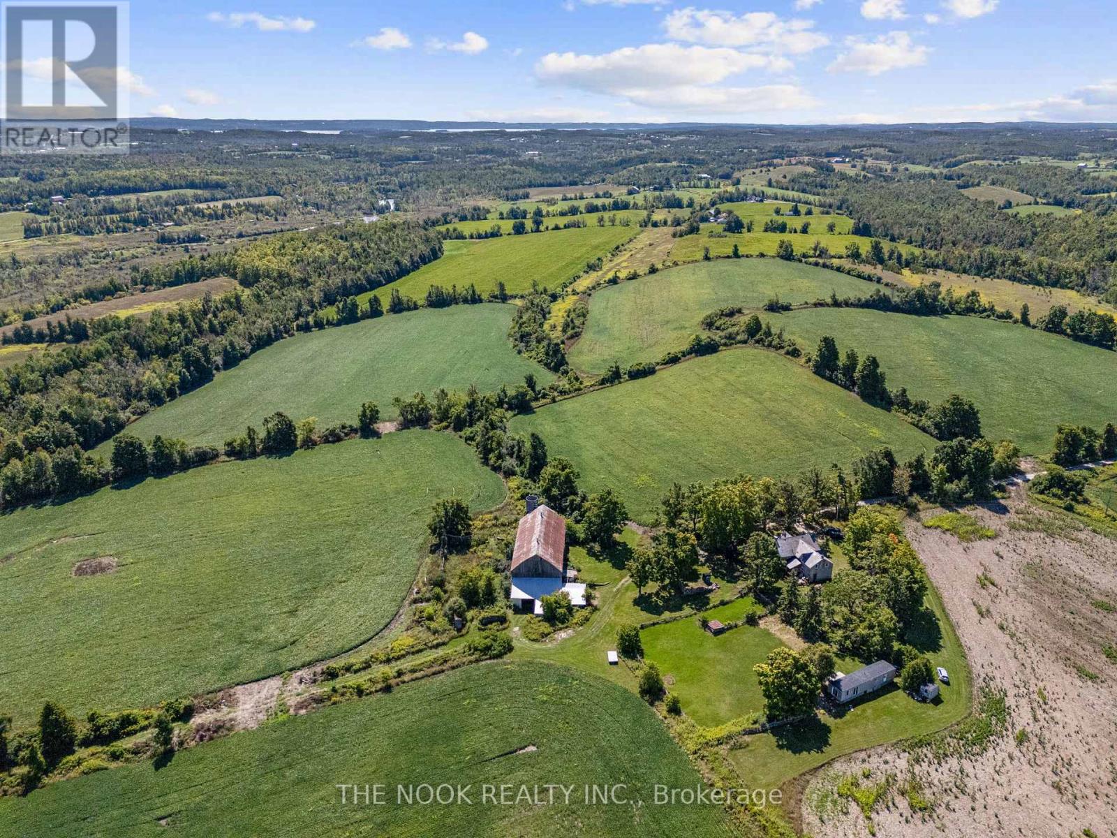 196 - Acre Farm with Historic Stone Home. Discover the perfect blend of history, charm, and opportunity on this 196-acre farm, featuring 120 workable acres and endless potential. Located just minutes from Peterborough and Hwy 115, this property offers both convenience and tranquility. A long private driveway leads you through rolling fields to the stunning 1861 stone house, showcasing original flooring, detailed trim, and soaring ceilings. The main residence includes 3 bedrooms, 1.5 baths, and a galley kitchen, while the attached former maid's quarters offers an additional 2 bedroom, 1 bath unit with its own kitchen-ideal for multi-generational living or guests. Outside, you'll find a pond, classic 45'x100' bank barn, and fenced paddocks, providing plenty of space for hobby farming, livestock, or equestrian pursuits. With its size, setting, and timeless character, this property is brimming with possibilities-create your own private oasis., operate a bed & breakfast, or transform it into a unique event venue. (id:61423)