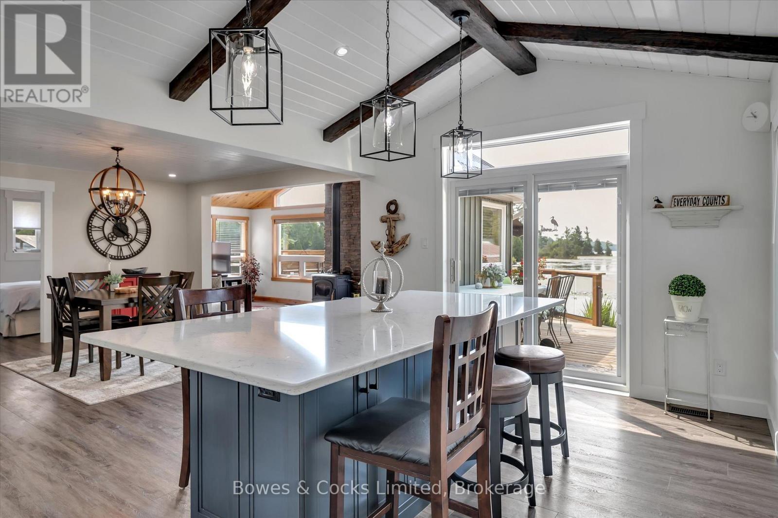 Welcome to your complete lakeside retreat home on beautiful White Lake in the Kawarthas - a property that truly has it all. Set in a quiet bay with peaceful views of nature, this beautifully renovated two-storey home offers the perfect balance of comfort, recreation, and relaxation. The shoreline features a sandy area ideal for swimming, with 5-6 feet of water at the end of the dock, making it perfect for diving in or docking your boat. From here you can explore the calm waters of White Lake, paddle the nearby river toward Stoney Lake, or simply enjoy the serenity of birds, turtles, and wildlife in the natural shallows. The home was extensively renovated in 2021 and showcases a bright, open-concept design with vaulted ceilings and stunning lake views. The custom kitchen is a standout, featuring a walk-in pantry and a striking live-edge island with an epoxy river detail that reflects the natural beauty surrounding the property. The living room is warm and inviting with a cozy woodstove-perfect for cooler evenings. Upstairs, the entire second level is dedicated to a luxurious primary suite overlooking the lake. This gorgeous home includes walk-in closets and a spa-inspired ensuite with heated floors and a steam shower. Designed for year-round comfort, the home is energy efficient and wired for a Generac system for added peace of mind. Outdoor living is just as impressive. The wraparound two-level deck with glass railings provides exceptional views of the lake and includes a hot tub and a 12-foot electric awning for shade on sunny days. The property also features a heated garage, guest bunkie with kitchenette, and a wet slip boathouse at the water's edge. Located close to Wildfire Golf Club and only 20 minutes to Lakefield, this incredible waterfront property is just 90 minutes from the GTA, offering the perfect opportunity for either full-time lakeside living or a luxurious weekend escape. (id:61423)