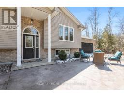This stunning 3+1 bedroom, 3 bathroom raised bungalow, built in 2012, offers the perfect blend of comfort, style, and privacy. Nestled on a picturesque 1-acre treed lot, the property features lush, manicured gardens and exceptional outdoor living spaces. A charming stamped concrete walkway leads to the welcoming front entrance, complemented by tasteful landscaping. Inside, the open-concept living room, dining room, and kitchen are highlighted by a soaring cathedral ceiling, rich hardwood floors, and a spacious center island, step outside to enjoy large deck complete with hot tub ideal for entertaining and everyday living. The generously sized primary bedroom includes a 3-piece en-suite & double closet. The fully finished lower level features luxury vinyl flooring throughout, a fourth bedroom, 3 pc bathroom and a large rec room with cozy gas fireplace and above-grade windows that fill the space with natural light. Convenient walk-up access from utility room into the garage adds excellent functionality. Ideally located for commuters this home is the perfect blend of rural living and commuters convenience, a short drive to Lindsay and Port Perry with quick access to Highway 35 and easy connections to Highway115 and Highway 407. (id:61423)