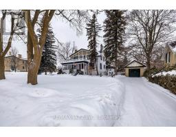 Spectacular 5-bedroom, 4-bathroom home on an exceptionally private 113 ft. x 133 ft. corner lot. Ideally located in a highly sought-after neighbourhood, just minutes to top-rated schools, shopping, parks, highways, and entertainment. Offering approximately 2,956 sq. ft. of above-grade living space, this beautifully upgraded residence features 1,488 sq. ft. on the main level and 1,468 sq. ft. on the upper level. The elegant living and dining rooms boast soaring 11 ft. ceilings, hardwood flooring, crown moulding, fireplaces, and oversized windows that flood the space with natural light-perfect for both everyday living and entertaining. The spacious eat-in kitchen is equipped with stainless steel appliances, ample cabinetry and counter space, a pantry, and overlooks the dining area-ideal for family gatherings. The inviting family room features a stunning brick fireplace, large windows, and direct access to a sunroom with a separate entrance from the second driveway on Cambridge St N. A secondary staircase leads to the fourth and fifth bedrooms, offering excellent potential for multi-generational living, guest accommodations, or flexible private space. The oversized primary bedroom retreat includes a private ensuite bath, wall-to-wall closets, and large windows for abundant natural light. Four additional bedrooms are generously sized, each offering ample closet space and comfort. Main floor laundry adds everyday convenience. The unfinished basement presents incredible potential, featuring high ceilings, large above-grade windows, and a spacious layout ready for your custom design. Enjoy exceptional curb appeal with a beautifully manicured front yard and a welcoming covered porch. The fully fenced backyard offers a massive deck and mature trees, creating a private outdoor oasis. Two separate driveways provide parking for 10+ vehicles and are complemented by a detached oversized garage. An outstanding property offering space, versatility, and endless potential! (id:61423)