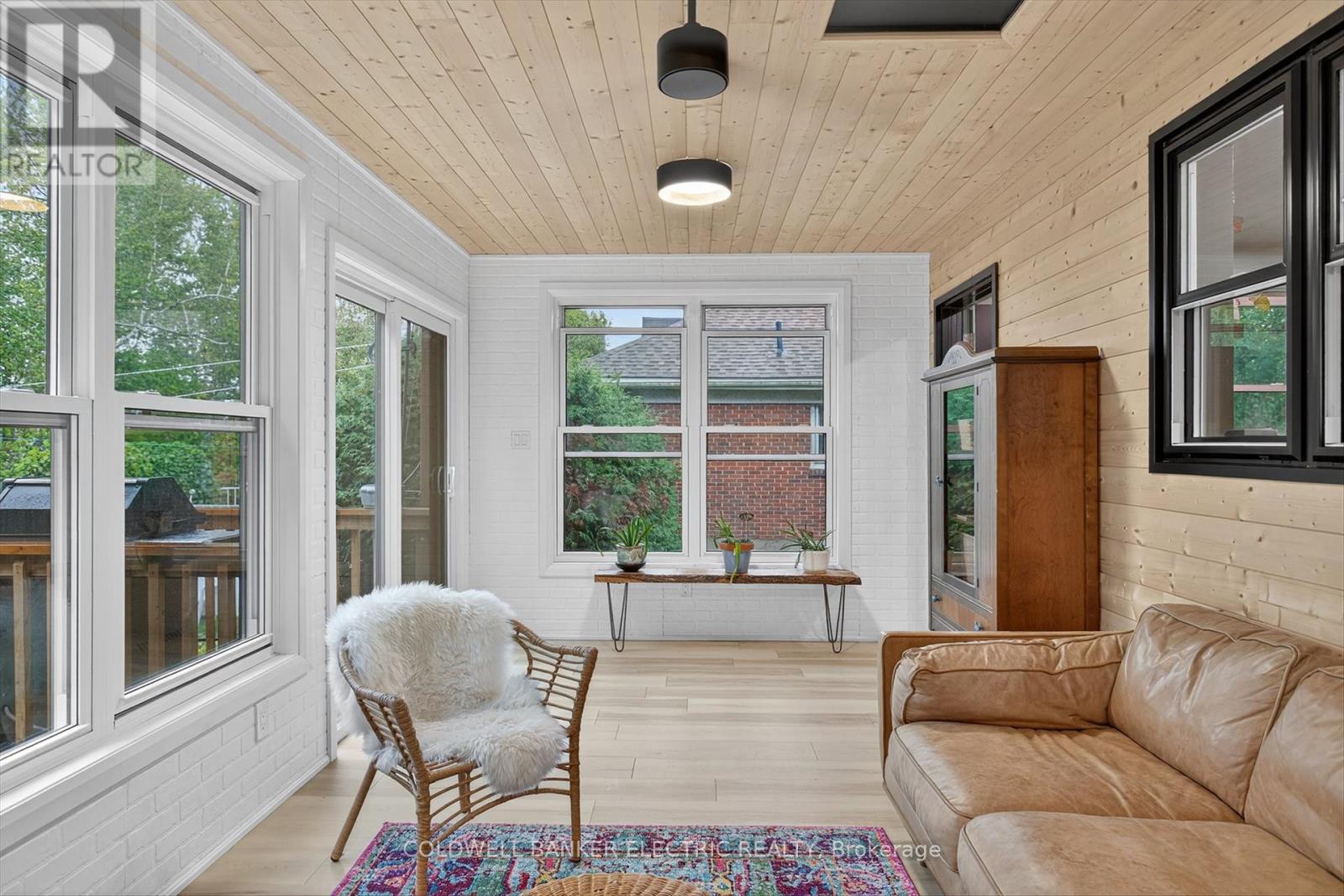 A remarkable blend of historic charm and contemporary design, this East City residence offers timeless character with the comforts of modern family living. This beloved family home underwent a thoughtful and extensive renovation in 2023, including a stylish two storey plus basement addition that is a major upgrade to a functional large family home. Over 2,000 square feet of finished space, this home has it all. The newly constructed upper floor addition features a primary suite - a beautiful retreat featuring a private ensuite washroom, plus a spacious new hall 4pc bathroom, and second-floor laundry. The large dedicated main floor home office and handy mudroom with built-ins add convenience and workability. The modern kitchen is the heart of the home, designed with character and charm, quality finishes, ample pantry storage, and seamless flow into the bright sunroom, creating an ideal space for gathering and entertaining. A new basement rec-room with home theatre system gives families room to relax and play comfortably. Perfectly positioned in one of Peterborough's most vibrant and walkable east-city neighbourhoods, this home is just steps from Rogers Cove, offering a beach, park, splash pad, and walking/biking trail system. Enjoy proximity to the historic Lift Lock, the new Canadian Canoe Museum, Beavermead Park and Campground, and the boutique shops, restaurants, bakeries, and amenities that make Urban East City one of Peterborough's most desirable communities. This is a rare opportunity to own a fully updated and expanded home that balances traditional vibes with a fresh, modern, lifestyle based-design, ready to grow with your family for years to come. New high-end appliances, new insulation, new flooring throughout, lots of updates to discover - It's a must-see! (id:61423)