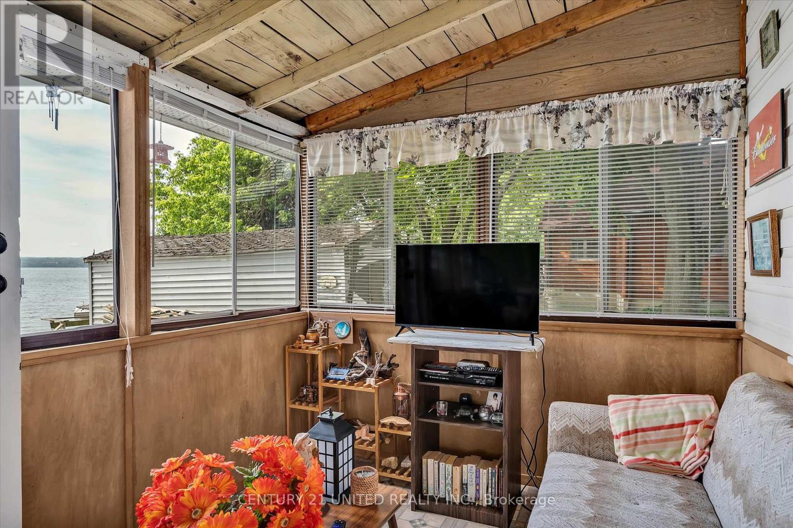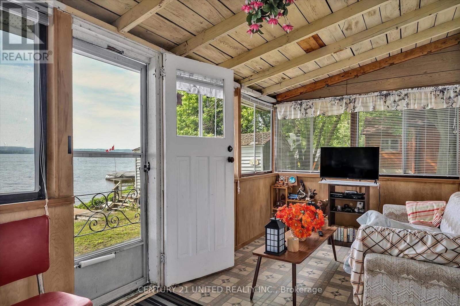 Discover the perfect lakeside, 3-season retreat with this charming three-bedroom cottage on Rice Lake's tranquil north shore. Wake to spectacular summer sunrises painting the lake and hills, setting the stage for days filled with swimming, water sports, and exceptional fishing. This property features a beautiful walk-in sand and pebble beach, a versatile boathouse that could serve as a guest bunkie and a docking system, all ensuring your waterfront experience is nothing short of magical. Nested in a quiet, friendly community of year round homes and season retreats, this cottage is perfectly suited for both relaxation and fun. It boasts a level lot with play areas, a large deck for gatherings, a cozy fire pit for starlit nights, and easy year-round access. **EXTRAS** Yearly lease costs: 2025-2027 $8200. Cost for fire protection and garbage removal $762 in 2025-2026. Renews May 2026. (id:61423)